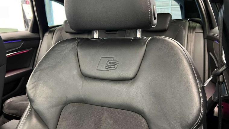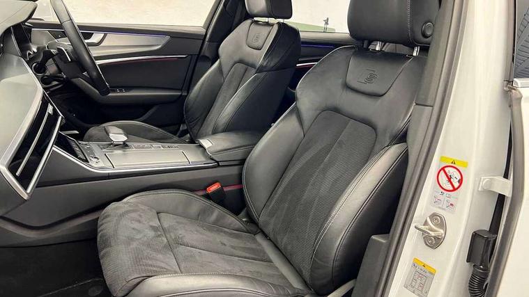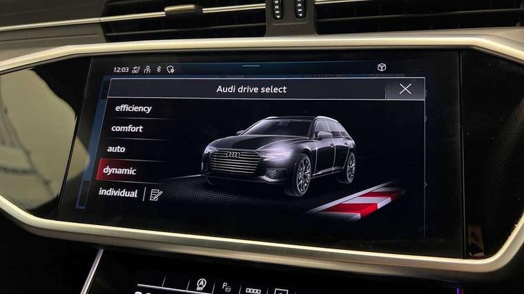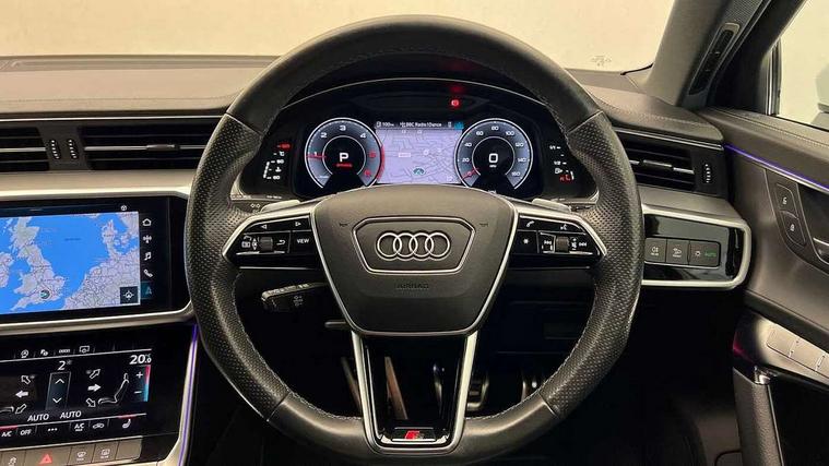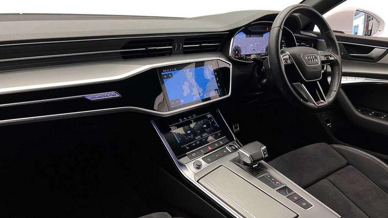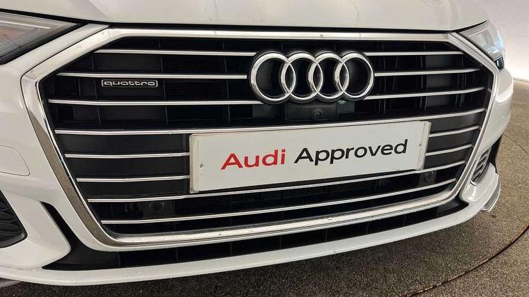7" high resolution colour driver information display system, Audi connect safety and service (e-call), Audi connect with Amazon Alexa Integration, Audi drive select, Audi parking system plus - acoustic and visual park assist system for front and rear, Automatic start/stop system with coasting functionality, Bluetooth interface, Lane departure warning system, Power operated tailgate, Progressive steering, Rear view camera, Service interval indicator, Smartphone interface includes wireless Apple carplay/Android Auto, Voice control system, 12V Mild hybrid, 24 litre AdBlue tank, Diesel particulate filter, Quattro on demand, Sports suspension, Audi front music interface, Audi sound system, Auxiliary input socket, DAB Digital radio, USB connection, Aluminium roof rails, Body coloured door mirrors, Electric front/rear windows, Frameless auto dimming interior rear view mirror, Front intermittent wipers, Headlight washers, Heat insulating darkened glass in side and rear windows, Heat insulating glass in windshield, LED signature front daytime running light, LED third brake light, Matrix LED headlights, Matt black side air intake grille with inlay in matt aluminium, Privacy glass, Radiator grille in anthracite black matt, single frame in chrome and horizontal struts in matt aluminium silver, Rain and light sensors, Rear side wing doors, Rear wiper, S line air inlet design with inlay in matt aluminium, S Line badge on front fender, S Line front and rear bumpers, S line rear diffuser and grille in matt black with matt aluminium tailpipes, S Line roof edge spoiler, S Line side skirts, Signature rear LED light design, 2 zone deluxe electronic climate control, 4 way electric lumbar support for driver and front passenger, 40/20/40 split folding 3 rear seat bench in 3 parts with rear centre armrest, Black cloth headlining, Black steering wheel insert, Electrically adjustable front seats with driver memory, Front centre armrest, Front head restraints, Heated front seats, Height/reach adjust steering wheel, Illuminated door sill trims with S logo, Illuminated sun visors with vanity mirrors, ISOFIX child seat mounting and Top Tether with front passenger airbag deactivation, Leather gear knob, Luggage compartment system, Perforated leather steering wheel with contrast stitching, Rear headrests, S line front and rear black carpet floor mats with contrast stitching, Single front passenger seat, Stainless steel pedals and foot rest, LED Interior Ambient Lighting Pack - A6, Non smoking pack - A6, Technology pack - A6, 3 point seatbelts on all seats, Airbags - Front side, front and rear including head, Audi pre-sense front, Black seatbelts, EBD - Electronic brakeforce distribution, Electromechanical parking brake, Electronic Stability Control (ESC) including ABS, ASR and EDL, Extended pedestrian protection measures, Manual child proof rear door locks, Seatbelt monitoring, Tyre pressure warning light, Warning triangle and first aid kit, Anti theft alarm with tow away protection, Anti-theft wheel bolts and wheel loosening detection, Immobiliser, Keyless Go, Remote central locking, Matt brushed aluminium dark inlays,