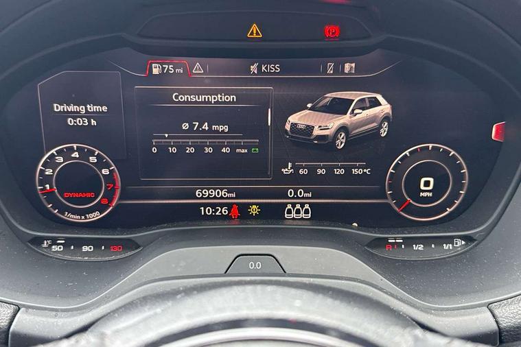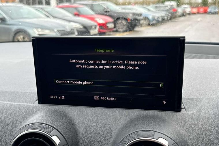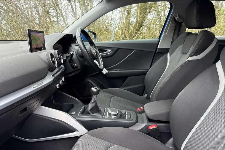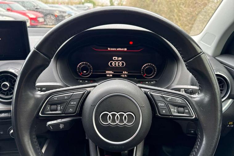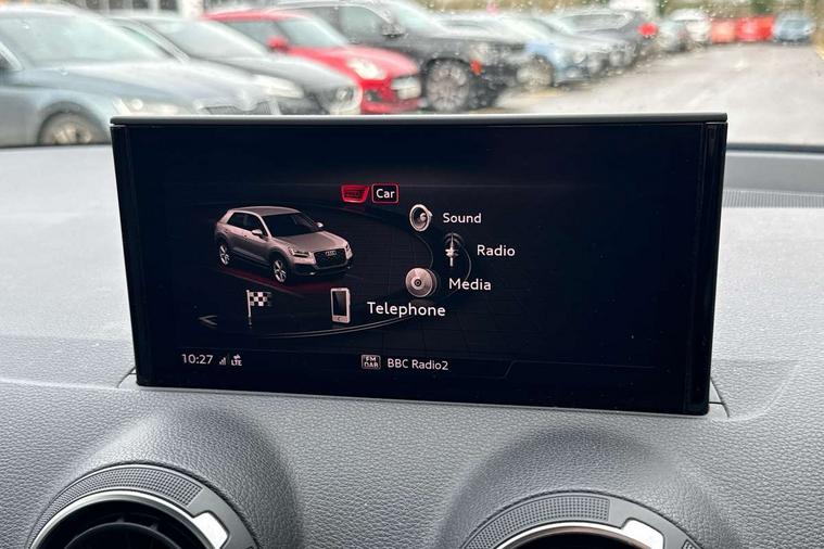 Audi drive select, Audi smartphone interface, Bluetooth hands free telephone connection, MMI - Multi Media Interface control system, MMI SD card Navigation, PAS, Service interval indicator, Voice control system, Dynamic suspension, Audi music interface, Aux input, CD player, DAB digital radio module, MMI radio plus with 7" colour MMI screen and MMI controller, USB port, Body colour door mirrors, Chrome exhaust tailpipe, Door mirror integrated indicators, Electrically adjustable and heated door mirrors, Front and rear electric windows, Rear wiper, Sunband for windscreen, Aluminium door sill trims, Centre console with storage/cupholders, Front and rear door pockets, Front and rear headrests, Front and rear velour floor mats, Front centre armrest, Front sports seats, Glovebox, Height adjustable front seats, Height/reach adjust steering wheel, ISOFIX on front passenger and rear outer seats, Storage compartment in rear centre console, Titanium grey cloth headlining, Non smoking pack - Q2, 3x3 point rear seatbelts, ABS+Electronic Brake force Distribution, Curtain airbags, Driver and passenger airbags, Driver and passenger side airbags, EDL + ASR, Electrically operated child locks on rear doors, Electromechanical parking brake, ESP, Multi-Collision braking, Pre-sense front with pedestrian recognition, Seatbelt warning light, Tyre pressure monitoring system, Warning triangle and first aid kit, Locking wheel bolts, Remote central locking, Thatcham category 1 alarm + immobiliser, Aluminium interior trim,