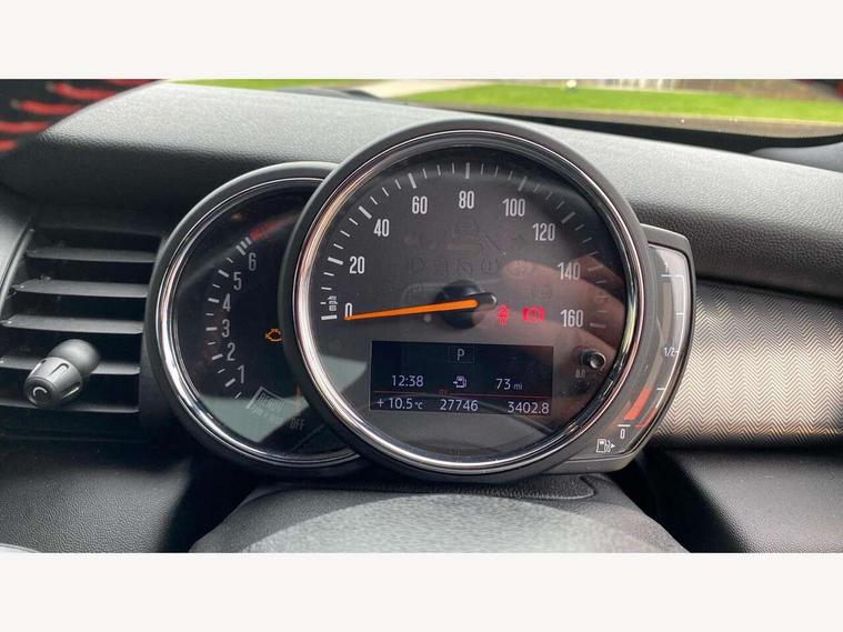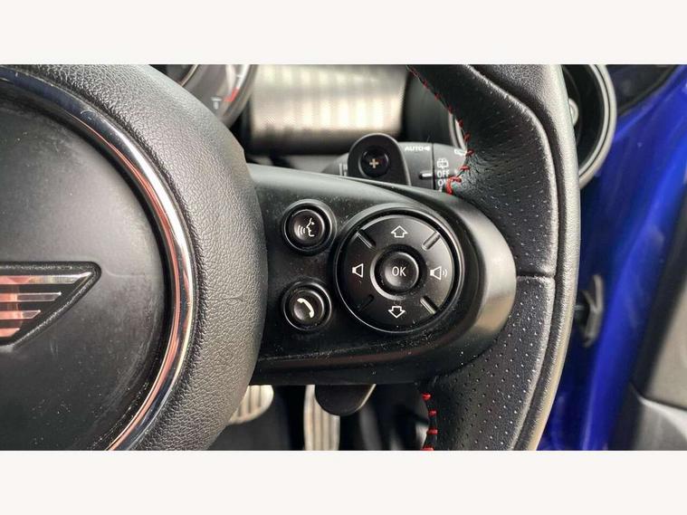 Acoustic seat-belt warning, Basic bluetooth function with USB audio, Brake fluid level warning light, Brake pad wear indicator warning light, DTC - Dynamic traction control, Exterior temperature gauge, Intelligent emergency call, MINI TeleServices, Oil level indicator, On board computer, Push button starter, Service interval indicator, Servotronic PAS, Electronic differential lock, Performance Control, Auxiliary input socket, DAB digital radio module, 2 speed wipers+intermittent wipe, Anti dazzle mirror, Anti trapping/one touch open close front windows, Body colour scoop integrated into engine- compartment lid, Body coloured bumpers, Chrome bezels around rear lights and headlights, Chrome door handles, Chrome plated fuel cap, Chrome plated trim on bottom edge of window, Chrome strip on lower grille, Electric front windows, Electric rear windows, Electrically adjustable door mirrors, Flared wheel arches, Follow me home headlights, Green tinted heat insulating glass, Heated door mirrors/heated windscreen washers, Heated rear window with auto timer, High gloss black tailgate, Honeycomb radiator grille, LED fog lights, LED rear lights, Rear wiper, Side scuttles, Twin chromed exhaust pipes, White indicator lights, 2 rear head restraints, 4 boot load lashing points, 4 way manually adjustable passenger seat with height, reach, tilt, backrest and headrest, 6-way manually adjustable driver's seat, Active carbon filter, Adjustable front seats backrest, Air recirculation system, Auxiliary socket in centre console storage compartment, Centre console storage, Driver's seat height adjuster, Driver/passenger sunvisors, Front and rear cupholders, Front head restraints, Front passenger grab handle, Front seat backrest storage nets, Front sports seats, Gear/selector and handbrake in artificial leather, Internal chrome door handles, Isofix child seat preparation, Luggage compartment lighting, Multifunction steering wheel, Reach + rake adjustable steering column, Rear grab handles, Rear storage trays, Split folding rear seats, Storage compartments in doors, Toolkit in luggage compartment, 3 point seatbelts, 3x3 point rear seatbelts, ABS/EBD, ASC+T, Cornering brake control (CBC), Crash Sensor - activates hazard/interior lighting + unlocks doors, Driver and passenger airbags, Driver/front passenger side airbags, DSC - Dynamic Stability Control, Fuel cut off safety device, Head airbags, Hill start assist, Manual passenger airbag deactivation function, Seatbelt pretensioners, Tyre pressure warning, Ventilated front disc brakes, Drive away door locking, Locking wheel bolts, Remote central locking/doors+fuel cap+tailgate, Second remote key, Thatcham category 1 alarm + immobiliser,