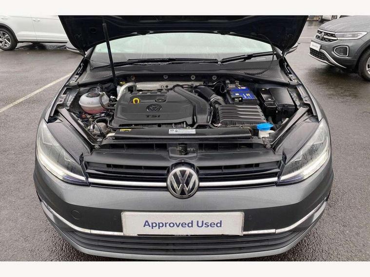 'Lights On' Reminder warning buzzer, 8" touch screen, Adaptive Cruise Control with pedestrian detection and speed limiter, App-Connect, Bluetooth hands free telephone connection, Brake pad wear indicator warning light, Driver alert system, Driver profile selection, Exterior temperature gauge, Front assistant collision mitigation, Instrument cluster in white, Multifunction computer, PAS - speed related, Rev counter, Trip and service interval display, Ultrasonic front and rear optical and audible parking sensors, Warning buzzer and light for front seatbelts unfastened, Lowered sports suspension, XDS electronic differential lock, CD/MP3/WMA, USB and SD card reader, aux-in, Composition media system, DAB Digital radio, Auto dimming rear view mirror, Automatic coming/leaving home lighting function, Automatic headlights, Black front air intake and radiator grille with chrome insert, Black rear diffuser, Body colour bumpers, Body colour door handles, Body colour door mirrors, Chrome grille surround, Electric front windows, Electric rear windows, Electrically adjustable and heated door mirrors, Heat insulated tinted glass 65% light absorbing from B pillar back, Heated rear windscreen, LED daytime running lights, LED front fog lights with static cornering light function, LED rear lights, Rain sensor, Rear roof spoiler, Rear windscreen washer and wiper with interval delay, 12V socket in luggage compartment, 3 rear headrests, 3 spoke steering wheel, 60/40 split folding rear seat, Bag hook in luggage compartment, Boot lashing points, Cooled glovebox, Courtesy light delay, Cover for storage compartment in centre, Dust/pollen filter, Front + rear carpet mats, Front centre armrest with storage box and rear air vents, Front passenger drawer stowage, Front passenger seat height adjust, Front seat back storage pockets, Grab handles, Height/reach adjust steering wheel, Illuminated vanity mirrors, Isofix preparation for 2 rear child seats, Load through provision with rear centre armrest and cupholders x2, Luggage compartment cover, Luggage compartment lighting, Multifunction leather steering wheel with leather gear knob/handbrake grip, Overhead storage box, Pearl grey headlining, Storage box in luggage compartment, Storage compartments in doors, Sun visors, Variable boot floor, height adjustable and removable, Ambient lighting pack - Golf, Mirror pack - Golf, 3 point height adj front seatbelts + pretensioners, 3 rear 3 point seatbelts, ABS, Automatic post collision braking, Child locks on rear doors, Driver/Front Passenger airbags, Driver/Passenger whiplash optimised head restraints, Drivers knee airbag, Electronic parking brake with auto hold, ESP with EDL + ASR, Front and rear curtain airbags, Front passenger airbag deactivation, Front side airbags, Pre crash system, Tyre pressure monitor, Alarm with interior protection, Electronic engine immobiliser, Remote central locking with 2 remote folding keys, Chrome-plated light switch surround, Piano black centre console, Tumbler decorative inserts, Steel space saver spare wheel,