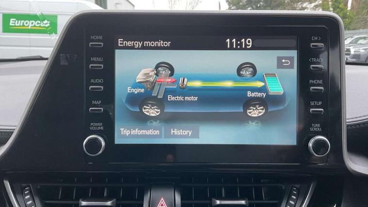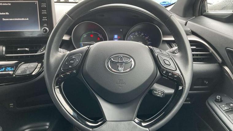 4.2" coloured TFT screen for multi-information display, Adaptive cruise control, Bluetooth connectivity, E-call, Electric power steering, Hybrid system indicator, Lane departure alert with steering control, Lane trace assist, Push button start, Push button tailgate release, Remote boot door release in cabin, Remote boot door release in key, Reversing camera, Road sign assist - RSA, Smart voice assist, Trip computer, Voice recognition, Vehicle Stability Control (VSC), 6 speakers, AM/FM radio, DAB Radio (Digital Audio Broadcasting), Toyota touch 2 multimedia system with 8" display, USB connector, Wi-fi connectivity, Anti-jam protection on power windows, Auto high beam, Auto up and down function on all power windows, Automatic headlights, Automatic headlights cut-off, Black and body coloured rear bumper, Black lower front grille, Black upper front grille, Body colour door handles, Body colour door mirrors, Body colour front spoiler lip, Body coloured front bumper, Boot door release with push button, Electric heated door mirrors, Follow me home headlights, Front and rear power windows, Front fog lights, Headlight cut off reminder, Honeycomb lower front grille, LED daytime running lights, LED High mounted stop light, LED rear brake lights, LED rear combination lights, Manual headlight levelling, Manually retractable door mirrors, Noise reduction layer on front windows and windscreen, Power adjustable door mirrors, Rear side wing doors, Rear spoiler, Rear tailgate, Rear window defogger, Rear window wiper, Reflective LED headlights, Shark fin antenna, UV-filter on driver and passenger windows, UV-filter on rear windows, 12v power outlet - front, 3 rear headrests, 3 seat bench in 2nd row, 3 spoke leather steering wheel, 60/40 split folding rear seat, Adjustable rear headrests, Adjustable speed limiter switch on steering wheel, Assist grips front and centre pillar, Audio and telephone switches on steering wheel, Black front door assist grips, Boot light, Chrome interior door handles, Cloth upholstery, Driver and front passenger personal light, Driver and front passenger Whiplash Injury Lessening seats, Dual zone automatic air conditioning, Floor mats, Front cupholders, Front head restraints, Front sports seats, Glovebox with internal light, Hard tonneau cover, Hooks for luggage holding net, Humidifying Nanoe air purifier, Illuminated entry system, Isofix attachments on outer rear seats, Leather gearshift, Light on driver sun visor, Light on passenger sun visor, Manual telescopic steering wheel, Manual tilt steering wheel, Manually adjustable lumbar support on driver seat, Manually height adjustable driver seat, Manually height adjustable front passenger seat, Manually reclining driver seat, Manually reclining front passenger seat, Manually sliding driver seat, Manually sliding front passenger seat, Microphone on front personal light, Mirror on driver sun visor, Mirror on passenger sun visor, Multimedia switches on steering wheel, Pollen filter, Shopping bag hooks, Single front passenger seat, Slow opening on lower glovebox, Voice recognition switch on steering wheel, 16 Disk front wheel brake, 3x3 point rear seatbelts, ABS+EBD+Brake assist, Electronic parking brake, Front and rear seatbelt reminder, Front passenger airbag on/off switch, Hill start assist control (HAC), Pre collision system with pedestrian detection, Pre-tensioners and force limiters, Rear door child safety locks, SRS Airbags - Driver + Front passenger, front side, front and rear curtain and driver's knee airbags, Toyota safety sense, Tyre pressure monitoring system, Tyre pressure warning system, Acoustic vehicle alert system (AVAS), Glass-breaking alarm sensors, Immobiliser, Intrusion alarm, Intrusion sensor, Motion sensor alarm, Power door locks, Power passenger window lock, Remote central locking, Black lower dashboard, Black upper dashboard, Grey deco line on upper dashboard, Matte black centre console, Tyre repair kit,