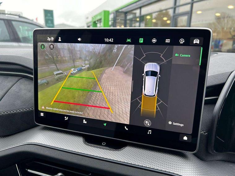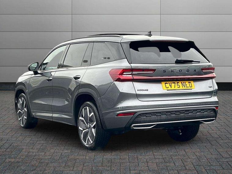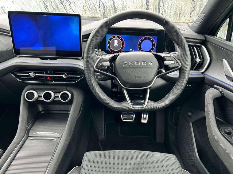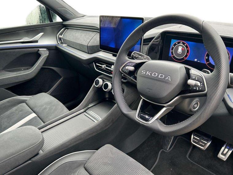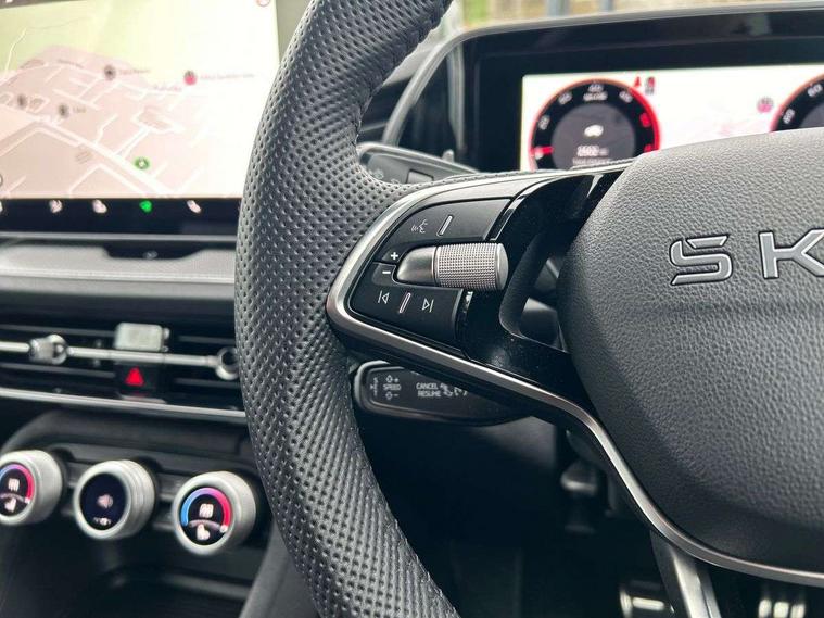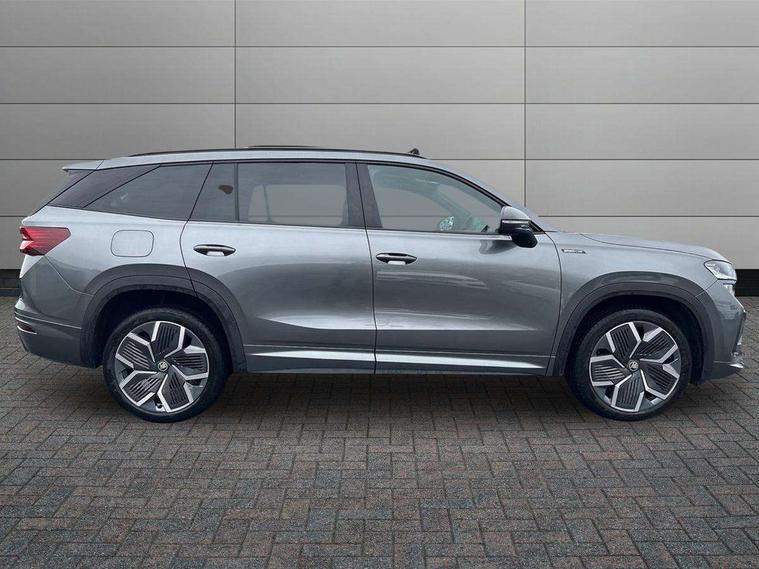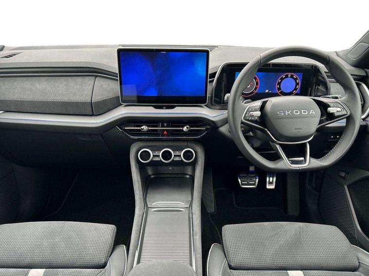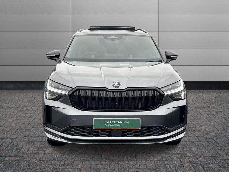 13" satellite navigation touchscreen display, Blind spot detection with door exit warning, Bluetooth system, ChatGPT functionality, Driver alert - Fatigue and drowsiness monitor, Dry display cleaner, Emergency call, Front and rear parking sensors, Front cross traffic assist, Lane assist, Off road modes, PAS, Rear traffic assist, Tailgate unlocking from outside, Traffic sign recognition, USB C Port x 2 in front centre console, Virtual Cockpit - 10.25" digital display, Voice control system, Wireless charging for two smartphones (15W) with cooling function, Wireless SmartLink for Apple CarPlay and Android Auto, Stop/start function, 2x USB-C in the rear, DAB Digital radio, Aero front windscreen wipers with intermittent function, Auto dimming rear view mirror, AWL (all weather lighting) and all weather light with cornering function, Black diffuser and decorative tailpipe with a unique dark chrome finish, Black roof rails, Black sports styling including front grille and window surrounds, Black wheel arch surrounds, Body colour door handles, Cornering light and poor weather light, Electric folding /adjustable/separted heated/folding door mirrors, auto dimming with boarding sports and memory function, Electric front and rear windows, Exterior black decorative trims, Front and rear sports bumpers including lower rear chrome strip, Gloss black door mirrors, Gloss black window frame and D pillar, Heat insulating glass in windshield, Heated rear window, Ice scraper in fuel tank cap, LED daytime running lights, LED third brake light in rear spoiler, Light assistant with automatic headlight control and coming home feature, Logo projection in door mirrors, Privacy glass, Rear roof spoiler, Rear side wing doors, Rear window wiper, Red decorative strip between rear LED lights, Safety reflectors on front and rear doors, Sportline badge on front fenders, Tailgate lettering in Black, Unique dark chrome design logo on alloy wheels, Window control switches with black trim, Windscreen wipers with rain sensor, Without engine designation, 1.5l bottle holder points in all door, 1x centre rear reading light, 2 seat bench in 3rd row, 3 configurable smart dials with 32mm coloured display, 3 seat bench in 2nd row, 4 foldable roof handles with rear coat hooks, Aluminium pedals, Ambient interior lighting - Dashboard, front-door stowage compartments, front and rear door panels and footwell lighting, Automatic gear selector on steering column, Chrome interior door handles, Driver/front passenger reading lights, Fabric headlining, Fixed bench 40:60:40 split folding backrests, Front and rear floor mats, Front centre armrest with jumbo box storage compartment, cup holder and 12V socket, Front sport seats, Height adjustable front headrests, Interior black decorative trims, Isofix child seat fittings in outer middle row rear seats and front passenger with top tether, Manually adjustable steering column, Pollen filter, Rear centre armrest with cupholders, Rear seat boot backrest release, Single front passenger seat, Skoda lettering on steering wheel, Storage pocket including mobile phone pockets on the backs of the front seats, Sunvisors with illuminated vanity mirrors, Three rear height adjustable headrests, Ticket holder on A Pillar, Tri zone climate control, Umbrella in door panel x1 made from sustainable materials, Upper and lower glovebox with card holder and coin compartment, USB C port by rear view mirror for charging only (15W), Acoustic package - Kodiaq, Performance package - Kodiaq, Sportline design selection pack - Kodiaq, Auto door release and activation of warning lights in the event of an accident, Driver and front passenger airbag with knee airbag and front passenger airbag deactivation, Electric child locks, Electronic parking brake, ESC (incl. ABS+EMD+MSR+ASR+EDL+HBA+DSR+RBS+ESBS+MCB+TSA+XDS), Front assist with braking reaction to vehicles, pedestrians and cyclists, Front disc brakes, Fuel cut off safety device, Height adjustable front 3 point seatbelts + pretensioners, Hill hold assist, Junction assist with automatic emergency braking, Rear disc brakes, Safety vest holder in door, Seat belt reminder for all seats, Three point rear seat belts, Two tone horn, Tyre pressure monitor, Alarm with interior monitoring and tilt sensor with safe function, Anti-theft wheel bolts, Immobiliser, Remote central locking with 2 keys, 20" Rila anthacite polished alloy wheel with black matte aero covers,