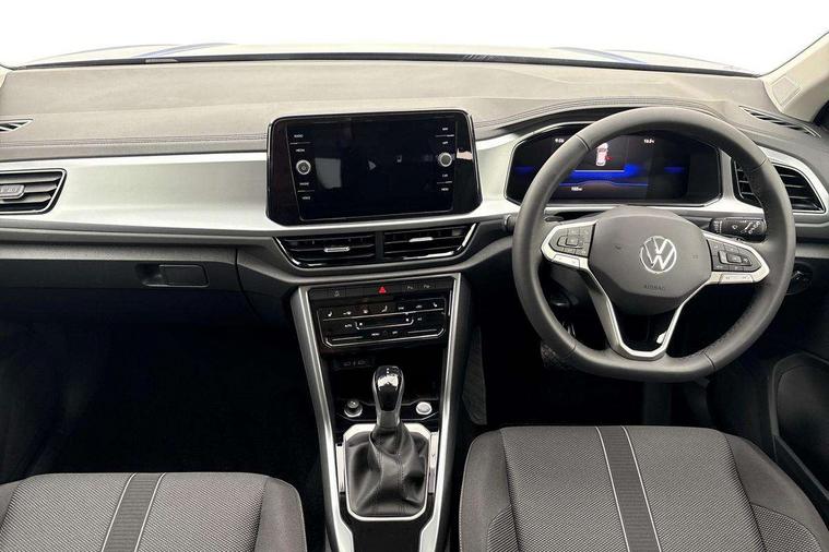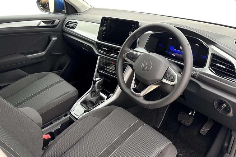 Advanced driver attention and drowsiness monitor, Dynamic road sign display, Emergency call service, Lane keeping system Lane Assist, Mobile phone interface, Modified key software - reduce switch off time for key status change to Long no motion, Online services, Park assist including front and rear parking sensors, Power assisted speed sensitive steering, Rear view camera, Service interval indicator, Tailgate/trunk lid release from outside, Think blue trainer driver tips and journey analysis, Warning sound and light for front seatbelts unfastened, Wireless app connect, Battery regeneration during braking, Front shock absorption, Rear shock absorption chassis with increased ride height, Start/stop function with battery regeneration, DAB Digital radio, Diversity antenna for FM reception, Music playback - MP3, WMA and AAC files, SD card slot, Simultaneous pairing of 2 compatible mobile devices, Title and cover art display, We Connect and We Connect Plus functionality, Auto dimming interior rear view mirror, Automatic hazard lights activation under emergency braking, Automatic headlight control with LED separate daytime running lights with coming/leaving home function, Black roof rails, Body coloured bumpers and radiator grille with chrome trim and front fog lamps with chrome bezel, Body coloured exterior mirror housings and door handles, Electrically adjustable and heated door mirrors, Extended roof spoiler, Exterior mirrors aspherical on driver side, convex on front passenger side, External USB type C socket and charging sockets, Front windscreen wiper with intermittent wipe and 4 position delay, Heated rear window, LED 3rd brake light, LED rear combination lamps, LED rear number plate lights, Power windows with comfort operation and circuit breaker, Privacy glass for rear side windows and rear window, Rain sensor, Rear exhaust tailpipe, Rear fog light on one side and reversing lights on both sides, Rear side wing doors, Rear wash/wipe with intermittent wipe setting, Remote electrically foldable door mirrors, puddle lights and reverse activated passenger's door mirror, 12V power socket in centre console, 3 rear head restraints, 3 seat bench in 2nd row, 4 load lashing points in luggage compartment, Air care climatronic air conditoning system with active combination filter and 2-zone temperature control, Black stitching for floor mats, Ceramique roof liner, Cloth upholstery, Door and side trim panel in cloth, Drawer under drivers seat, Driver/front passenger seat height adjustment, Front centre armrest, Front comfort sports seats, Front cupholders x 2, Front reading light, Front seat back storage pockets, Glove compartment door with light, Instrument lighting, white adjustable panel illumination, Interior ambient lighting and surround lighting, Interior light delay, Isofix child seat preparation, Leather gearshift handle, Load-through provision with cup holder when folded down ('Unsplit rear seat bench, split folding backrest, with centre armrest), Luggage compartment lighting, Lumbar support for driver's and front passengers seat, Non-folding front passenger seat backrest, Single front passenger seat, Storage compartment in left and right luggage area, Storage compartment in rear doors, Storage compartments in driver and front passenger doors, Sunvisors with illuminated vanity mirrors, Variable boot floor, height adjustable and removable, Driver assistance pack without proactive passenger protection - T-Roc Life/Match, 3 point height adj front seatbelts + pretensioners, 3 point seatbelts in outer rear with ECE label, ABS, Child locks on rear doors, City emergency braking and pedestrian monitoring, Driver and front passenger airbag with front passenger airbag deactivation, Driver and front passenger safety-optimised head restraints, Drivers seatbelt reminder, Electronic parking brake, Electronic Stability Control (ESC) inc EDL (Electronic Differential Lock) and ASR (Traction Control), Front and rear passengers curtain airbag system including front side airbags, Front disc brakes, Hill start assist, Predictive pedestrian protection, Rear disc brakes, Two tone horn, Tyre pressure loss indicator, Volkswagen roadside assistance, Alarm with interior protection, Keyless locking and starting system keyless access with safelock, Pewter matt decorative inserts for intrument panel, centre console and door panels at the front, Trims for alloy wheels,