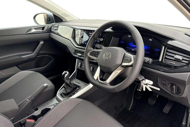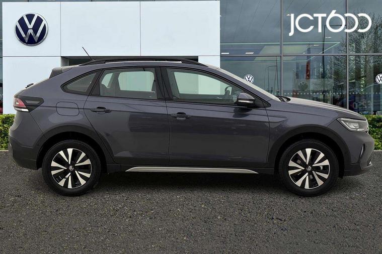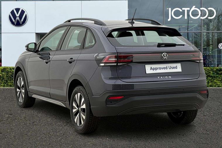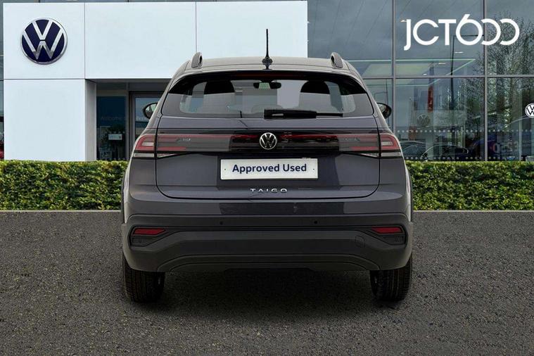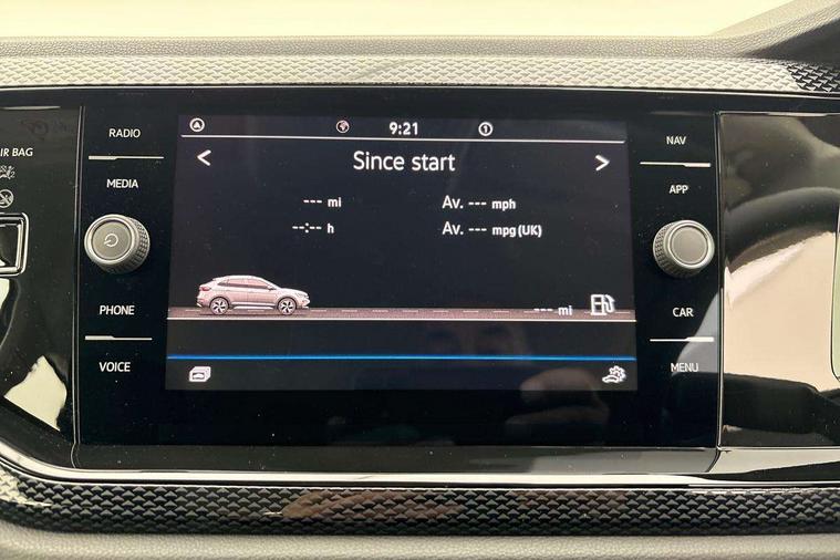 8" Digital cockpit basic display, Advanced driver attention and drowsiness monitor, Dynamic road sign display, e-Call (emergency call), Power Steering, Predictive adaptive cruise control, Travel assist including emergency assist, Washer fluid level indicator, Wireless Charging including Bluetooth, Start-stop system with battery regeneration (recuperation - energy recovery during braking), Digital radio reception (DAB+), WeConnect plus, Ambient lighting with logo projection, Aspherical driver's exterior mirror, Auto headlights, Body coloured bumpers, Body coloured exterior mirror housings and door handles, Electric windows, External USB type C socket and charging sockets, Heat insulating glass windscreen, LED rear combination lamp, LED third brake light, Left convex exterior mirror, Power folding adjustable/heated exterior mirrors and front passenger exterior mirror lowering function, Rear fog light on one side, reversing light on both sides, Rear side wing doors, Rear wash/wipe with intermittent wipe setting, 'Slash/ Austin' Cloth upholstery, 12V socket in centre console, 2 front reading lights, 3 rear head restraints, 3 seat bench in 2nd row, Black carpets, Child seat anchor for child seat system i-Size, 2x top tether and child seat anchor in front on front passenger side, Door and side trim panels in titan black, Driver and front passenger seat height adjustment, Front centre armrest, Handbrake lever handle in leather, Height and reach adjustable steering wheel, Leather trimmed gear knob, Leather wrapped multifunction steering wheel, Luggage compartment floor, Luggage compartment light, Lumbar support for driver's and front passengers seat, Seat covers in titanium black, Single front passenger seat, Split folding backrest with centre armrest and unsplit rear seat bench, Storage compartment under front seats, Sun visors with illuminated vanity mirrors, Chrome Package - Taigo, Drivers assistance pack - Taigo, Light and Sight pack including High beam assist - Taigo, 2 x 3-point seatbelts/outer rear seats with ECE label, 3-point seat belts in front with pretensioner and height adjustment, 3-point seatbelt for centre rear seat, Adaptive driver and front passenger airbags with passenger airbag deactivation function, Driver and front passenger airbags with front passenger airbag de-activation, front side and curtain airbags, Driver and front passenger safety-optimised head restraints, Electronic stability control, Extended and predictive pedestrian/ cyclist protection, Front and rear disc brakes, Front curtain and side airbags with center airbag, Hill start assist, Manual rear child locks, Single tone horn, Tyre pressure loss indicator, Anti-theft alarm system with interior monitoring, backup horn, and towing protection, Lava stone black gloss/matt decorative inserts in dash and front door panels, Low rolling resistance tyres,