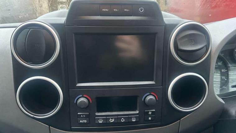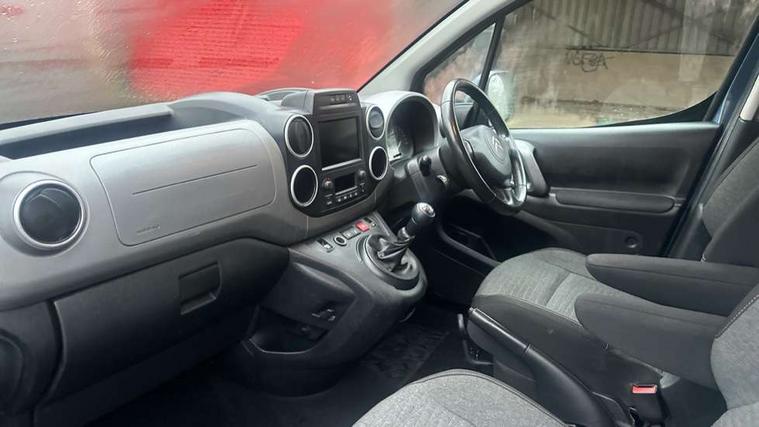 7" touch screen, Bluetooth with USB Box, Cruise control + speed limiter, Front parking sensor, Multi function trip computer, Rev counter, Service interval indicator, Variable PAS, Warning buzzer and light for front seatbelts unfastened, 4 speakers, Audio remote control in steering wheel, DAB Digital radio, RDS stereo radio + CD player/mp3 facility, 2 speed front wipers + intermittent wipe, Automatic activation of hazard warning lights, Automatic headlights and windscreen wipers, Body colour bumpers, Body colour door handles, Body colour door mirrors, Body colour rear plate number moulding, Electric front windows/one touch facility, Electrically adjustable door mirrors, Front fog lamps, Headlight height adjustment, Laminated windscreen, LED daytime running lights, Longitudinal roof bars, Rear tailgate with rear heated window, Rear wiper, Split opening tailgate with dark tinted rear glass, Tilt opening rear windows, Twin sliding side doors, Air conditioning, Aircraft type trays in front seat backrests, Carpeted loadspace, Cigarette lighter, Driver and passenger sunvisors, Front armrest, Front head restraints, Front seat storage pockets, Height adjustable driver's seat, Height/reach adjustable steering column, Isofix system on outer rear seats, Leather steering wheel, Liberal cloth upholstery, Overhead storage shelf, Rear head restraints, Removable / retractable luggage cover, Removable rear seats, Three individual sliding/fold flat rear seats [row 2], Under floor storage compartment [row 2], Serenity pack with heated mirrors - Berlingo, 3 point seatbelts on all rear seats, ABS/EBD, Curtain airbags, Driver and passenger airbags, EBA, ESC - Electronic Stability Control + traction control, Front lateral airbags, Front passenger airbag deactivation, Height adjustable front seatbelts + pretensioners, Hill start assist, Side airbags, Tyre pressure sensor, Deadlocks, Immobiliser, Locking fuel filler cap, Remote central locking, 16" Managua alloy wheels, Space saver spare wheel,