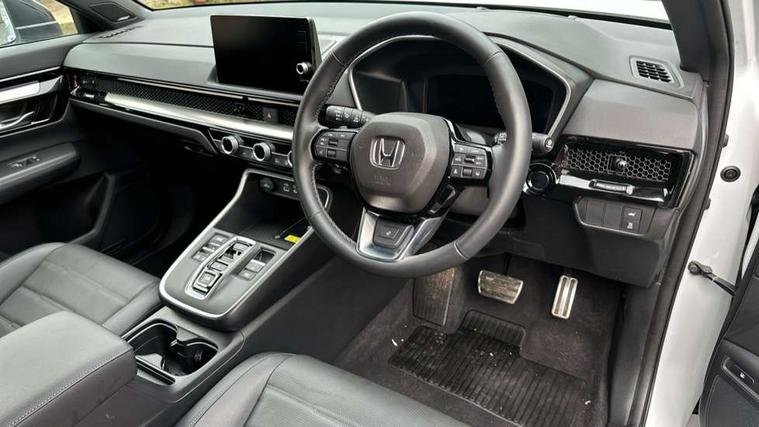 10.2" Multi information display, 4 x front 4 x rear 4 x side parking sensors, Active lane change assist, Adaptive cruise control with Cornering speed assist, Adjustable speed limiter, Agile handling assist, BLIS (Blind Spot Information System) with Cross Traffic Monitor, Bluetooth hands free telephone connection, Crossing traffic warning front, Drive Mode (EV, Econ, Sport, Normal, Snow, Tow), Driver attention monitoring system, E-call, eCall emergency call system, Electric power steering, Emergency stop signalling system, Forward collision warning, Handfree power tailgate with kick sensor and walk away close, Head up Display, HEV mode, Honda 360 sensing, Honda CONNECT navigation with My Honda+ 9" touchscreen, AM/FM/DAB, Apple Carplay and Android Auto, live traffic info, Honda parking pilot, Intelligent speed limiter, Lane change collision mitigation, Lane departure warning system, Lane keep assist system, Lane watch, Lead car departure notification system, Low speed following, Power meter, Road departure mitigation, Traffic jam assist, Traffic sign recognition, Wireless apple carplay, Wireless charging, Adaptive performance damper, Vehicle stability assist, 12 speakers, 1X USB (A/2.5A) and 1x Charger (C/3A) on Front, Bose premium sound system, Centre speakers, DAB+ radio, Dashboard centre speaker, Front tweeters, Rear USB 2x Charger (C/3A), Steering wheel mounted controls, Subwoofer, Active cornering lights, Adaptive driving beam, Auto dimming rear view mirror, Auto headlight adjuster, Auto headlights, Auto wipers, Black door mirror caps, Black paint + exculsive grille, Black Shark-fin antenna, Body colour bumpers, Body colour door handles, Body colour plus black colour roof spoiler, Electrically adjustable and heated door mirrors, Electrically folding door mirrors, Exhaust pipe finisher, Exterior mirror tilt for reverse, Front and rear electric windows, Front LED Indicator lights, Front turn type led with sequential, Headlight auto on/off timer, High gloss black window garnish, LED 3rd brake light, LED daytime running lights, LED front fog lights, LED Headlights, LED rear lights, Multi view camera system in door mirrors, Panoramic opening glass sunroof, Privacy glass, Rain sensor, Rear side wing doors, Rear wiper, Roof rails, Trailer stability assist, Welcome home function, 3 seat bench in 2nd row, 4 way driver lumbar support, 4 way electrically adjustable passenger seat without height adjust, 60/40 split folding rear seat, 8 way electrically adjustable drivers seat + mirror memory, Accessory sockets in Front & Trunk, Air conditioning - Rear vent, Ambient light in roof, Cargo net hooks, Courtesy lights, Dark roof lining, Driver and front passenger seat armrests, Driver/passenger front seatback pockets, Driver/passenger sunvisors and vanity mirrors, Driver/passenger sunvisors with illuminated vanity mirrors, Dual zone automatic climate control, Film layered honeycomb metal interior panels, Footwell ambient interior light front and rear, Front and rear ambient light (door handle&door line) and front cup holder, Front centre armrest, Front map lights, Front ventilated seats, Genuine leather steering wheel, Heated front seats, Heated rear seats, Heated steering wheel, Hybrid emblem, I-Size ISO Fix Points, Instrument panel with garnish wood film, Leather upholstery, Luggage floor box, Meter illumination, Platinum chrome interior door handles, Rear centre armrest, Rear headrests, Rear reading lights, Reclining rear seats, Single front passenger seat, Sport pedals, Sunglasses holder with mirror, Synthetic headrest, Tilt/telescopic adjustable steering wheel, Tonneau cover, Trunk light, Exclusive styling with sport paint pack - CR-V, 5 x 3 point seatbelts, ABS/EBD, Anti-whiplash front headrests, Brake assist function, Collision mitigation braking system, Deflation detection system, Driver airbag, Driver SRS airbag (single stage inflation), Electronic parking brake with auto hold, Front and rear collision mitigation throttle control, Front and rear curtain airbags, Front and rear seat belts with emergency locking retractor (ELR), Front centre airbag, Front passenger airbag, Front side airbags, Hill descent control, Hill start assist, Knee airbags (DR) and (AS), Low speed brake system, Manual child lock in rear doors, Paddle deceleration control, Passenger SRS airbag with cut off switch, Rear side airbags, Honda super locks, Immobiliser, Mirrors and windows key fob operation, Remote central locking with 2 key fobs, Security alarm, Selectable door unlock, Smart entry + Smart start, Tilt sensors, Ultrasonic security sensor, Flat tyre solution temper tyre/repair kit,
