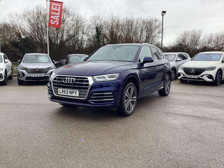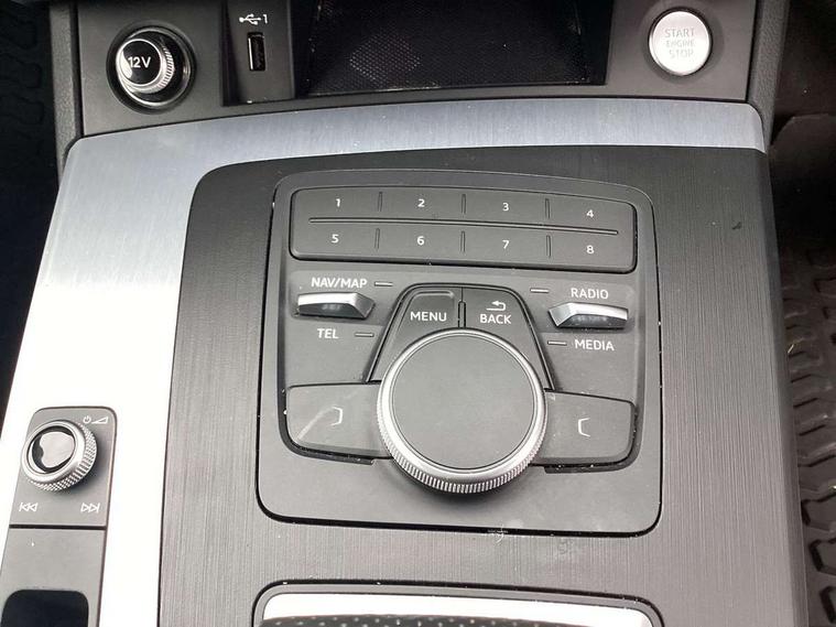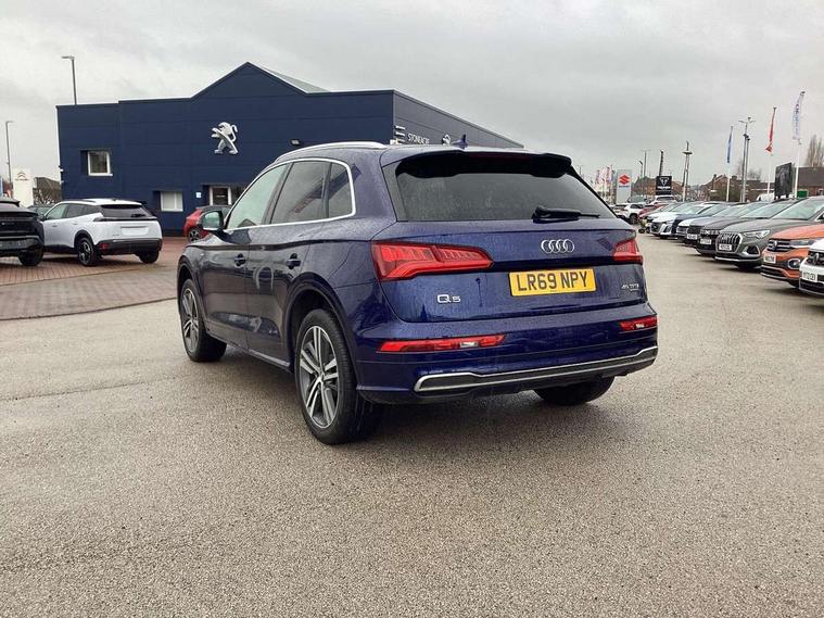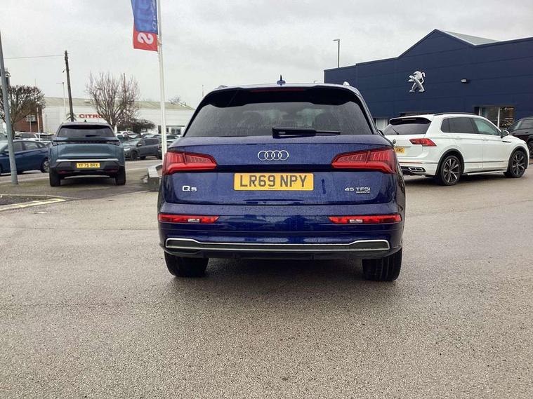 7" Colour driver information system, Audi connect safety and service (e-call), Audi drive select, Audi parking system plus with front and rear sensors, Audi Pre sense collision avoidance, Audi smartphone interface, Automatic start-stop system with coasting functionality and efficiency programme, Cruise control + speed limiter, Electro - mechanical power assisted steering, MMI Navigation, Mobile telephone preparation - bluetooth interface, Power tailgate, Service interval indicator, Voice control system, Dynamic suspension, Quattro on demand, 2x SD card slot, CD player, DAB Digital radio, MMI radio plus with 7" colour MMI screen and MMI controller, Acoustic windscreen, Air inlets in matt titanium black with blades in matt aluminium silver, Aluminium roof rails, Auto dimming rear view mirror, Automatic headlight levelling, Body colour bumpers, Body colour door mirrors, Body colour rear diffuser with matt aluminium silver surrounds, Body colour S Line side skirts, Body colour underbody protection, Chrome exhaust tailpipe, Electric adjustable/heated/folding door mirrors, Front and rear electric windows, High beam assistant, LED headlights with LED rear lights + dynamic rear indicators, Light and rain sensor for auto activation of lights and windscreen wipers, Loading sill protector in stainless steel, Privacy glass with front acoustic glazing, Rear wiper, S front and rear bumpers, S Line badges on the front wings, S Line rear spoiler, Twilight grey matt radiator grille with matt aluminium horizontal chrome struts, 2 x USB charging port with aux input socket, 3 rear headrests, 40:20:40 split folding rear seat with rear centre armrest, Black cloth headlining, Contrast stitching on seats, steering wheel and gear lever gaiter, Deluxe 3 zone electronic climate control, Front centre armrest, Front sport seats with S embossed logo, Front/rear floor mats, Heated front seats, Height adjustable front head restraints, Height/reach adjustable steering column, Illuminated door sill trims with S logo, ISOFIX child seat mounting and top tether, Luggage compartment carpet, Manual seat adjustment with 4-way electric lumbar support, Perforated leather gearknob, Removable luggage compartment floor, Stainless steel pedals, Sunvisors with vanity mirrors, Tool kit, Trunk roller cover, High gloss pack - Q5, LED interior light pack - Q5, Non Smokers pack, 3 point seatbelts on all seats, 6 airbags - Driver, front passenger, curtain and side airbags, Electromechanical parking brake, Electronic stabilisation control including ABS, ASR and EDL, Front passenger airbag deactivation, Hill descent control, Hill hold assist, Multi collision brake assist, Pop-up bonnet for pedestrian protection, Pre sense city, Seat belt force limiter, Seatbelt monitoring, Tyre pressure warning, Warning triangle and first aid kit, Anti theft alarm, Anti-theft wheel bolts, Keyless Go access/ignition system, Remote central locking, Matt brushed aluminium inlays,