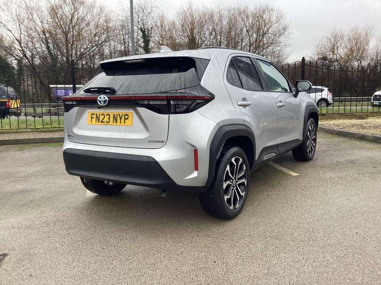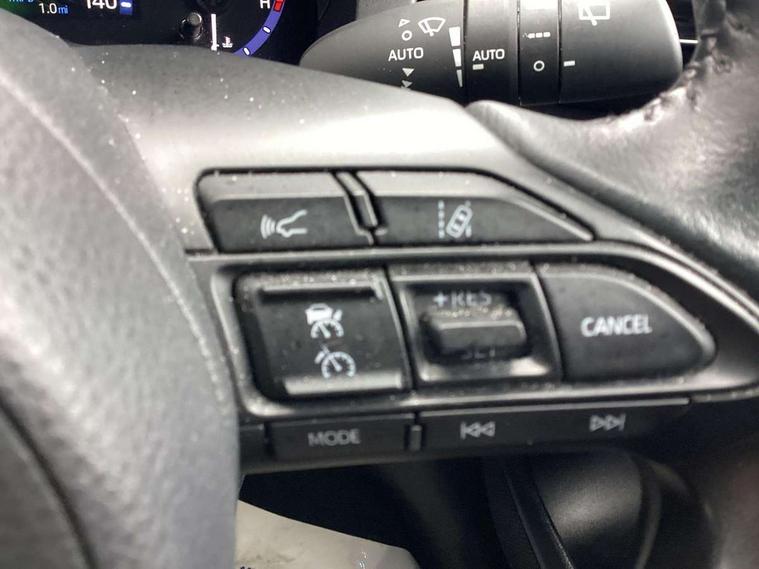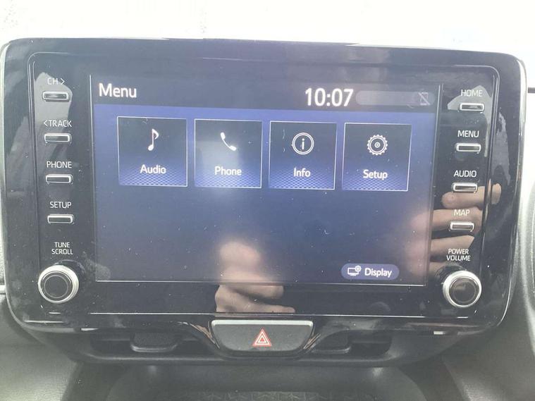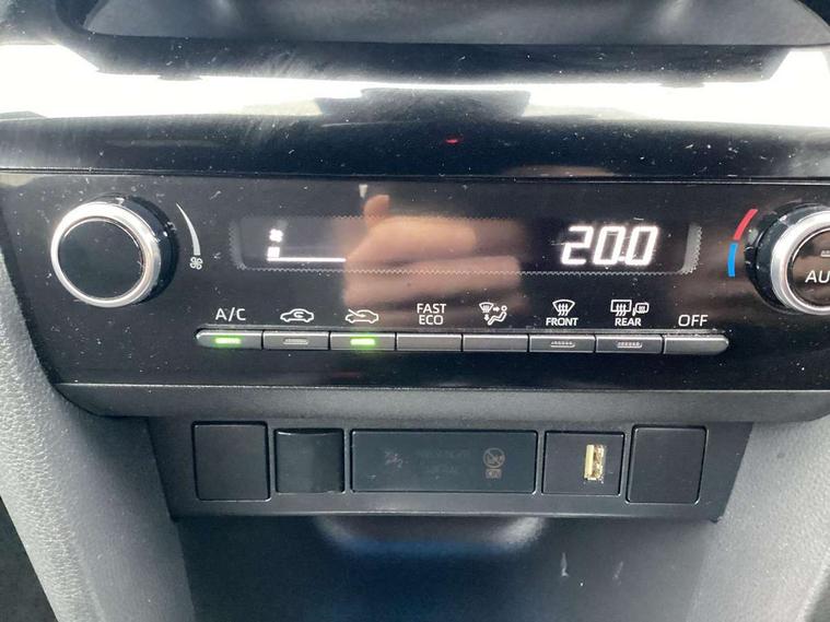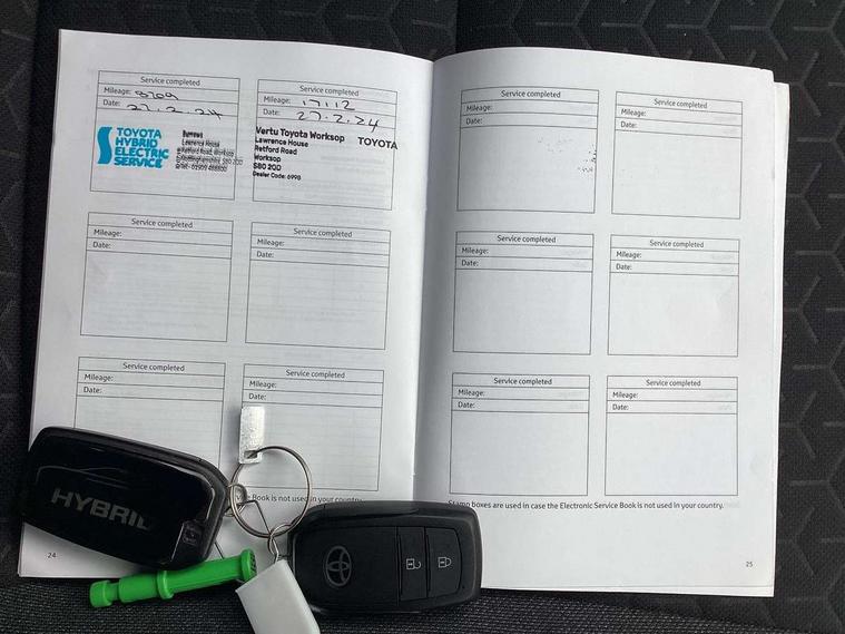 7" Multi information display screen, 8" Toyota touch 2 multimedia system with Smartphone integration with Apple CarPlay and Android auto, Adjustable speed limiter, Bluetooth connectivity, Driver attention alert system, eCall emergency system, Electric power steering, Full range intelligent adaptive cruise control, Hybrid system indicator, Key reminder warning, Lane trace assist, Multimedia, audio, telephone and voice recognition switches on steering wheel, My T Connected services, Pre-collision system enhanced with emergency steering assist, Reversing camera, Road sign assist - RSA, Steering assisted vehicle stability control, 6 speakers, DAB Digital radio, USB connection, 3rd brake light, Acoustic windscreen glass, Aluminium roof rails, Anti-jam protection on power windows, Auto high beam [AHB] with on/off switch, Automatic headlights, Black lower front grille, Black Shark-fin antenna, Black upper front grille, Black wheel arch mouldings, Body colour door handles, Body colour front bumper, Body colour rear bumper, Electric adjustable heated door mirrors, Follow me home headlights, Front and rear electric windows with auto up/down function, Front intermittent wipers, Headlight cut off reminder, Indicators integrated on door mirrors, Intermittent rear wiper, LED daytime running lights guide, LED front fog lights, LED front light guide, LED Indicators, LED projector headlights, LED rear light guide, Manual headlight levelling, Manually retractable door mirrors, Noise reduction layer on windscreen, Privacy glass, Rain sensor, Rear LED lights with sequential indicators, Rear side wing doors, Rear spoiler, Rear window defogger, 12v power outlet - front, 2x Rear coat hooks, 3 seat bench in 2nd row, 3 spoke leather steering wheel, 40:20:40 split folding rear bench seat, Adjustable speed limiter switch on steering wheel, Auto air conditioning, Black roof lining, Boot light, Central armrest, Centre console in light blue ambent lighting, Driver and front passenger personal lights, Fabric door trim, Fabric upholstery, Footwell in light blue ambient lighting, Front console box, Front cup holders, Front head restraints, Glovebox, Height adjustable driver's seat, Height adjustable front passenger seat, Hooks for luggage holding belts, ISOFIX child restraint system, Lane departure alert switch on steering control, Leather gearshift, Light blue ambient lighting on front doors, Manual telescopic and tilting steering wheel, Mirror on driver and passenger sun visor, Pollen air filter, Rear cup holders, Rear head restraints, Single front passenger seat, Soft tonneau cover, 3x3 point rear seat belts, ABS+EBD+Brake assist, Driver and passenger central airbags, Driver and passenger front airbags, Driver and passenger side airbags, Electronic parking brake, Emergency brake light system (EBS), Front seat belt reminder, Hill start assist control (HAC), Passenger airbag on/off switch, Pre-collision system with pedestrian and cyclist detection, Rear door child safety locks, Rear passenger side airbags, Rear seat belt reminder, Traction control, Tyre pressure warning system, Immobiliser, Intrusion alarm, Keyless smart entry with push button start, Power door locks, Power passenger window lock, Remote door lock, Tyre repair kit,