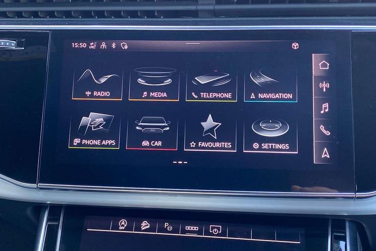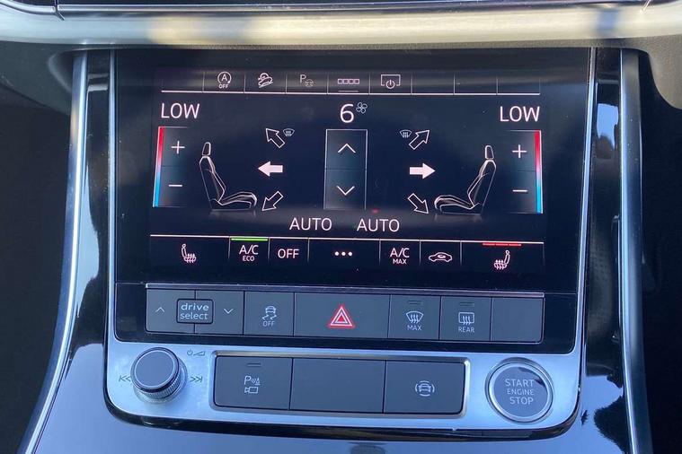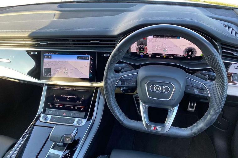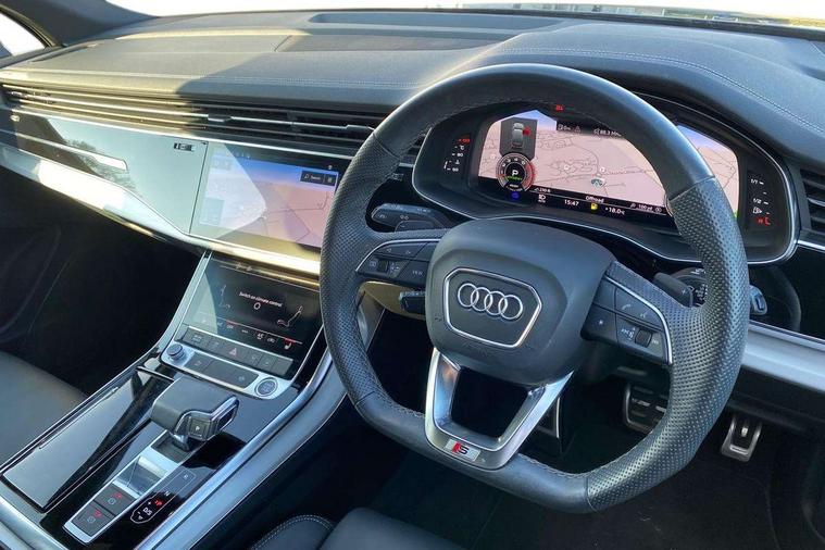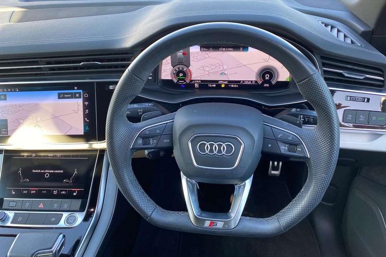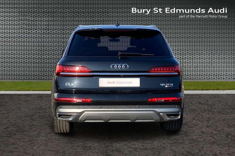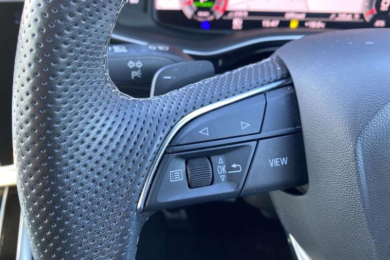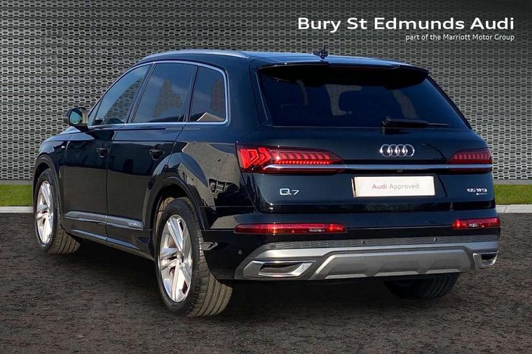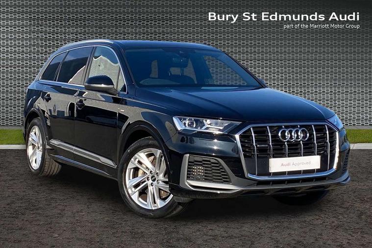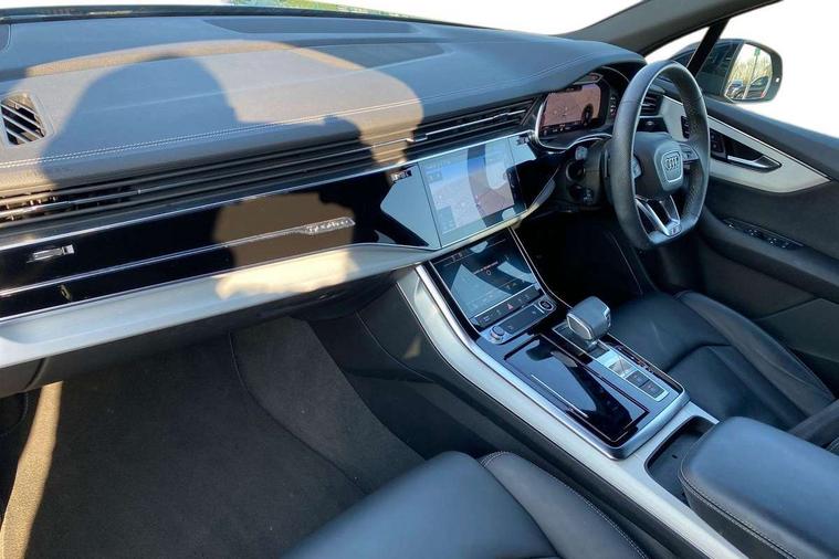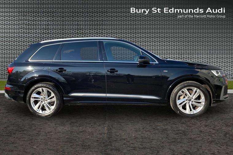 Audi connect safety and service (e-call), Audi connect with Amazon Alexa Integration, Audi drive select (Auto, Comfort, Dynamic, Efficiency, Individual, Off-road and All road), Bluetooth interface, Camera based traffic sign recognition, Electromechanical steering, MMI navigation plus with MMI touch screens includes 10.1" and 8.6" screens with haptic feedback, Natural voice recognition, Parking system plus with 360 degree display (front, rear and side sensors) - acoustic and visual park assist system, Power operated tailgate, Rear view camera, Smartphone interface includes wireless Apple carplay/Android Auto, Start/stop system, 48V Mild hybrid technology, 85 litre fuel tank, Adaptive air suspension, Quattro all wheel drive with self locking centre differential, Audi music interface - front 2 USB-C ports with charger and data functions, Audi sound system with 6 channel amplifier, 180 watt amplifying capacity and 10 loudspeakers including subwoofer, DAB digital radio module, 3rd brake light, Aluminium roof rails, Aluminium window trim, Auto dimming frameless rear view mirror, Body coloured door mirrors, Dark tinted Matrix LED headlights with dynamic front and rear indicators, Electrically adj heated/folding + automatically dimming exterior mirrors with memory + automatic kerb side function for passenger side exterior mirror, Heat insulating glass in windshield, Integrated LED indications in door mirrors, LED daytime running lights, LED rear tail lights, Privacy glass - dark tinted rear and rear side windows from B-pillar backwards, Rear side wing doors, Rear wiper, S Line badge on wings, S line bumpers in full body colour paint finish, S line roof spoiler, S line styling side ventilation grilles and side skirts, 2 seat bench in 3rd row, 2 zone automatic climate control, 3 seat bench in 2nd row, 7 seat layout with ISOFIX points for the front passenger seat and rear passenger seat, Black cloth headlining, Comfort front centre armrest, Electric adjustable front seat with 4 way lumbar support, driver memory functionality, Folding rear seats, Front head restraints, Front/rear floor mats, Heated front seats, Illuminated door sill trims with S logo, LED interior ambient lighting, Luggage compartment cover, Luggage compartment sill protection in stainless steel, Rear head restraints, Single front passenger seat, Stainless steel pedals, Sunvisors with illuminated vanity mirrors, 3 point seatbelts on all rear seats, Audi pre sense front, Child locks on rear doors, Driver and front passenger, front side and curtain airbags, Electromechanical parking brake, Electronic Stabilisation Control (ESC) including ABS, ASR and EDL, Extended pedestrian protection measures, Hill hold assist, Seatbelt monitoring, Tyre pressure loss indicator, Warning triangle and first aid kit, Anti theft alarm, Anti-theft wheel bolts and wheel loosening detection, Keyless Go, Remote central locking, Darkened matt brushed aluminium inlays, Tool kit, Tyre repair kit,