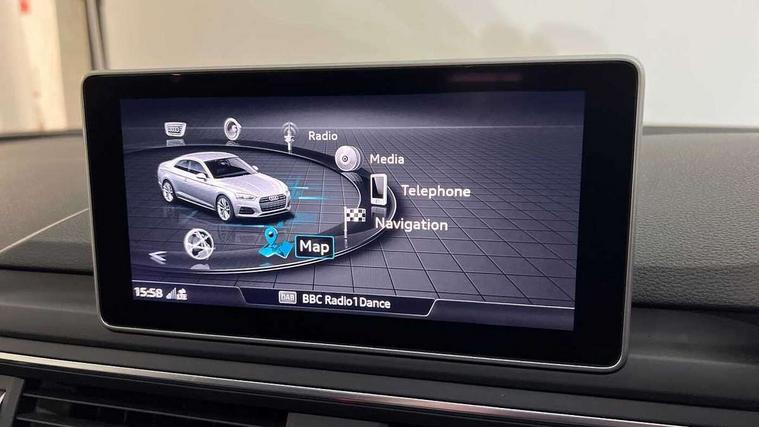 7" Colour driver information system, Audi connect, Audi drive select, Audi parking system plus with front and rear sensors, Audi smartphone interface, Automatic start-stop system with coasting functionality and efficiency programme, Bluetooth interface, Electric boot release, Electro-mechanical power steering, MMI Navigation, Service interval indicator, Voice control system, CD player, DAB Digital radio, Two SDXC card slots, Air inlets in titanium black with matt aluminium inlay, Auto dimming rear view mirror, Body colour bumpers, Chrome plated exhaust pipe, Electric adjustable heated door mirrors, Electric front windows, Front fog lights, High beam assistant, High gloss black door mirrors, Rain and light sensors, Rear diffuser in Twilight grey matt with honeycomb grille, S Line body styling, S line sill plates, S style high gloss black rear spoiler, Side and rear windows privacy glass, Titanium black frame and radiator grille, Titanium black front and rear air intakes, Titanium black window surround, Windscreen with acoustic glazing, 2 x USB charging port with aux input socket, 3 spoke flat bottom high multi-function leather steering wheel, 40/20/40 split folding 2 seater rear seat bench with rear centre armrest, Adjustable steering column, Black headlining, Black perforated leather gearknob, Centre console with cupholders, Contrast stitching on seats, steering wheel and gear lever gaiter, Deluxe 3 zone electronic climate control, Front centre armrest, Front head restraints, Front/rear floor mats, Gearshift paddles, Illuminated door sills, ISOFIX child seat mounting and top tether, Jack and tool kit, Luggage compartment mat, Rear headrests, S embossed logo on front sport seats, Stainless steel pedals and foot rest, Non Smokers pack, 6 airbags - Driver, front passenger, curtain and side airbags, Electromechanical parking brake, Electronic Stabilisation Control (ESC) including ABS, ASR and EDL, Front passenger airbag deactivation, Height adjustable front seatbelts, Hill hold function, Multi-Collision braking, Pop-up bonnet for pedestrian protection, Pre sense city, Seatbelt monitoring, Tyre pressure warning, Variable restraint system, Warning triangle and first aid kit, Anti theft alarm system, Anti theft wheel bolts, Immobiliser, Keyless Go, Remote central locking, Piano black finish inlay, 20" 5 arm rotor alloy design wheels with matt titanium finish, Tyre repair kit,