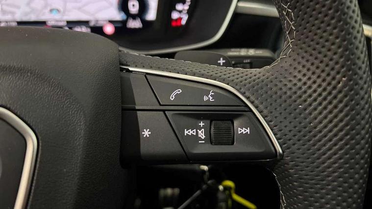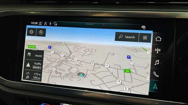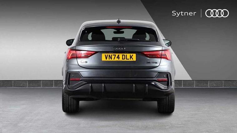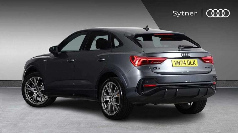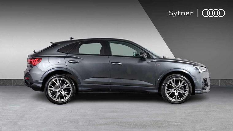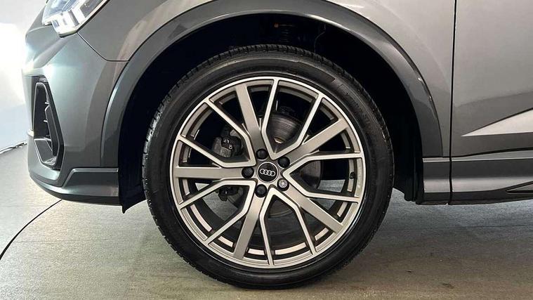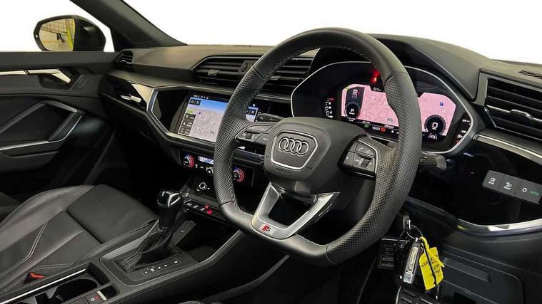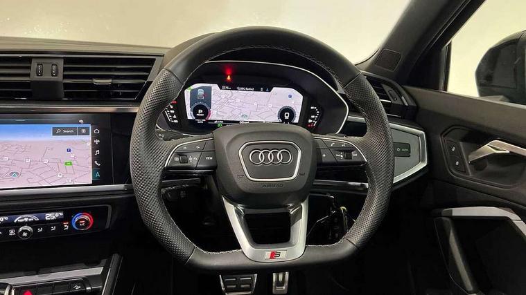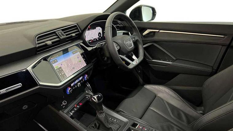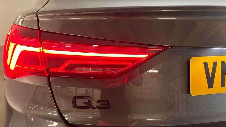 Audi connect safety and service, Audi drive select, Audi lane departure warning, Audi smartphone interface includes wireless Apple carplay/Android Auto, Audi Virtual Cockpit - 10.25" display, Bluetooth interface, Camera based traffic sign recognition, Distraction and Fatigue warning, Legal emergency call, MMI Navigation Plus with high resolution 10.1 inch touchscreen colour display, Power operated tailgate, Progressive steering, Service interval indicator, Start stop system with recuperation, Voice control system with natural language interaction, Sports suspension, 2 USB-C ports with charge and data functions, 6 passive loudspeakers, DAB digital radio module, Acoustic windscreen, Audi Beam uses LEDs to project the Audi logo onto the ground as you exit your Q3, Auto dimming door mirrors, Auto dimming frameless rear view mirror, Diffuser grille in grained matt black, Diffuser trim in selenite silver, Electrically folding, adjustable and heated door mirrors with integrated LED side indicators and kerb view function for passenger side, Front and rear electric windows, Front fog lights, Front underbody protection in manhattan grey paint finish, High gloss black finish B and C pillars, LED Dynamic rear indicators, LED headlights with LED daytime running lights, LED rear lights, LED third brake light, Privacy glass dark tinted rear and rear-side windows (from B-pillar backwards), Rain and light sensors, Rear side wing doors, Rear underbody protection in matt black, Rear wiper, S line front and rear bumpers and side skirts in contrasting Manhattan grey paint finish, Variable front intermittent wipers, 12V socket in rear centre console, 3 seat bench in 2nd row, 40:20:40 folding with manual adjustment for 60:40 forwards/backwards position and backrest angle, Adjustable rear seat bench/backrest with centre armrest and cupholder, Black cloth headlining, Dual zone electronic climate control, Electric lumbar support, Front and rear black floor mats with contrast stitching, Front and rear headrests, Front centre armrest, Height and reach adjustable steering wheel, Illuminated door sill trims with S logo, ISOFIX child seat mounting for front passenger with airbag deactivation and outer rear seat including top tether attachment point for outer rear seats, Luggage compartment sill protection in stainless steel, Manual front seats with height adjustment, Perforated leather gearknob, Single front passenger seat, Stainless steel pedals, Twin leather upholstery with front sport seats + S embossing, Black styling pack - Q3, Non smoking pack - Q3, 3x3 point rear seatbelts, 6 airbags - Driver, front passenger, curtain and side windows, Audi pre-sense front with pedestrain and cyclist recognition, Electrically operated child locks on rear doors, Electromechanical parking brake, Electronic stabilisation control including ABS, ASR and EDL, Front seatbelt reminder, Hill descent control, Hill hold assist, Pre sense basic, Seatbelt monitoring, Tyre pressure warning, Warning triangle and first aid kit, Anti theft alarm, Anti theft wheel bolts, Immobiliser, Remote central locking, Aluminium look interior elements, Detail dashboard around MMI touch colour display in glass look, black with surround in aluminium look, Leatherette door armrest, Piano black inlay,