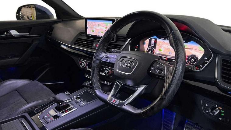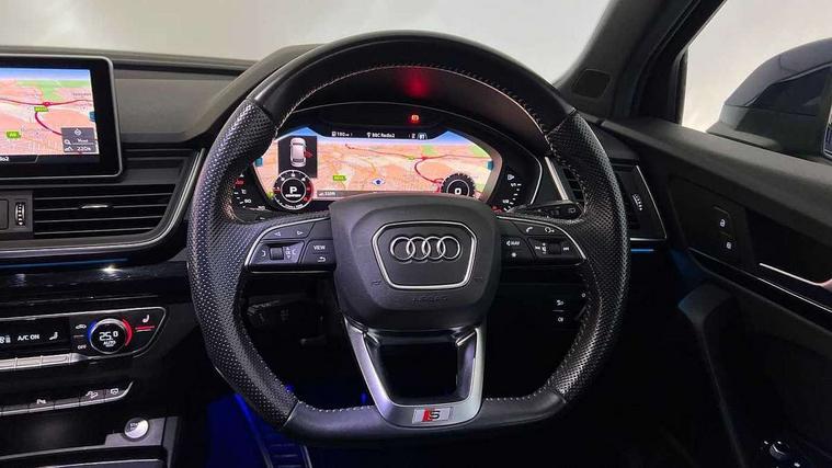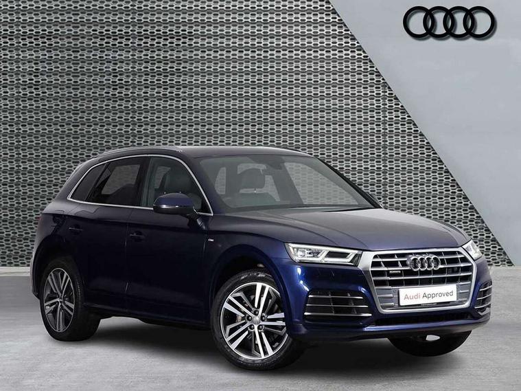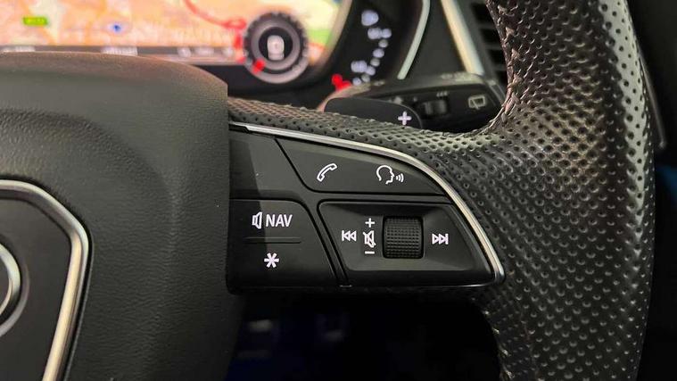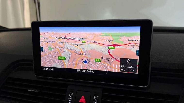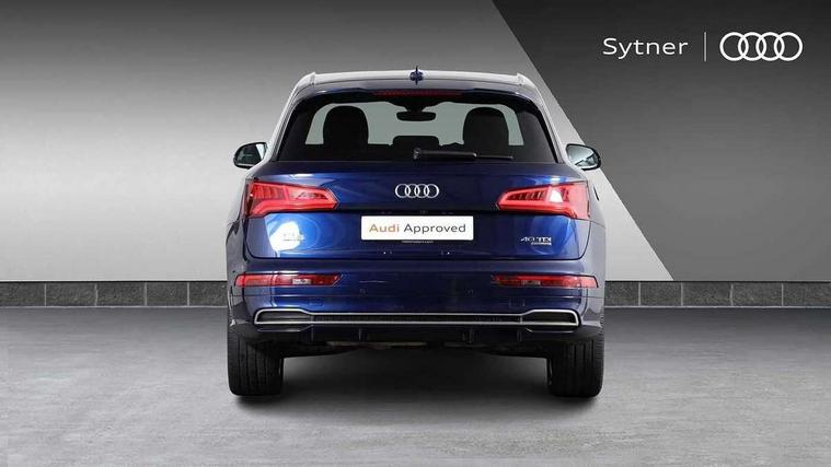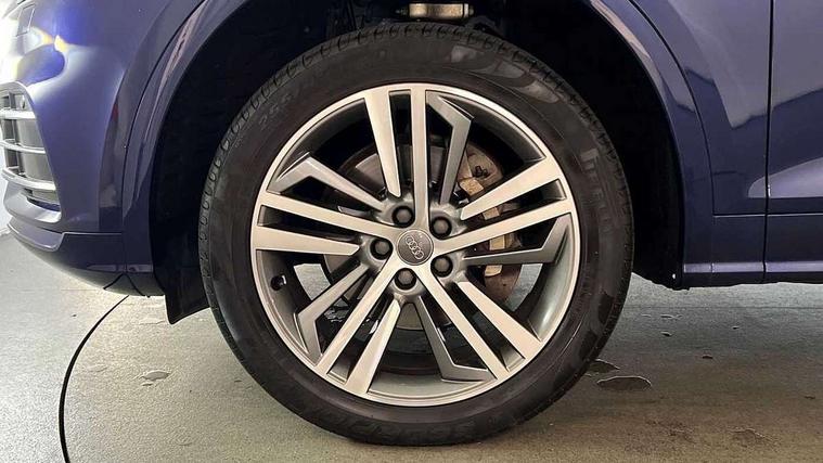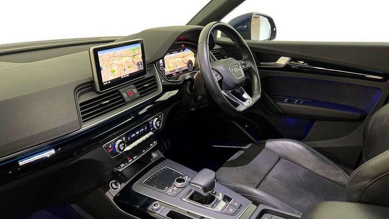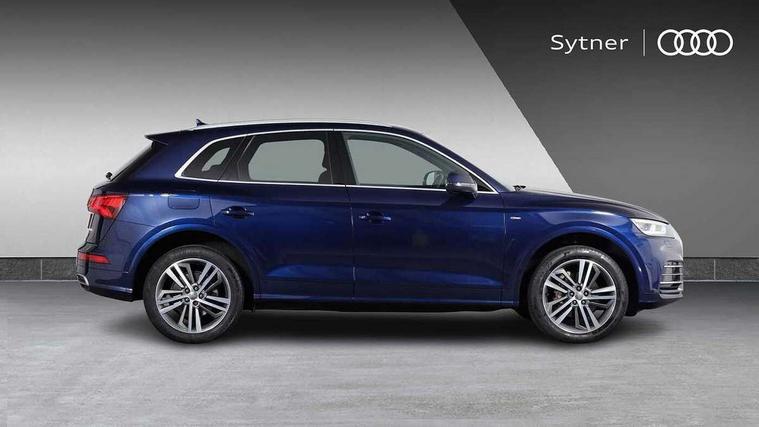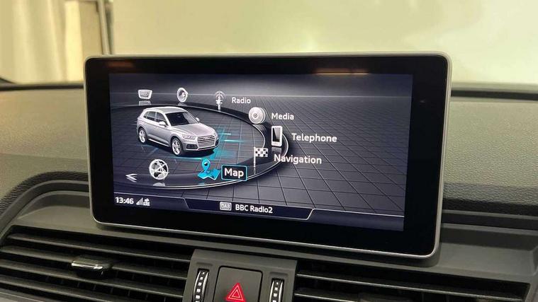 7" Colour driver information system, Audi drive select, Audi parking system plus with front and rear sensors, Audi smartphone interface, Electro - mechanical power assisted steering, MMI Navigation, Mobile telephone preparation - bluetooth interface, Power tailgate, Service interval indicator, Voice control system, Diesel particulate filter, 2x SD card slot, CD player, DAB Digital radio, MMI radio plus with 7" colour MMI screen and MMI controller, Acoustic windscreen, Air inlets in matt titanium black with blades in matt aluminium silver, Aluminium roof rails, Auto dimming rear view mirror, Automatic headlight levelling, Body colour bumpers, Body colour door mirrors, Body colour rear diffuser with matt aluminium silver surrounds, Body colour S Line side skirts, Body colour underbody protection, Chrome exhaust tailpipe, Front and rear electric windows, High beam assistant, Light and rain sensor for auto activation of lights and windscreen wipers, Loading sill protector in stainless steel, Privacy glass with front acoustic glazing, Rear wiper, S Line badges on the front wings, S Line front and rear bumpers/side air inlets and diffuser, S Line rear spoiler, Twilight grey matt radiator grille with matt aluminium horizontal chrome struts, 2 x USB charging port with aux input socket, 3 rear headrests, 3 zone climate control, 40:20:40 split folding rear seat with rear centre armrest, Black cloth headlining, Contrast stitching on seats, steering wheel and gear lever gaiter, Front centre armrest, Front sport seats with S embossed logo, Front/rear floor mats, Height adjustable front head restraints, Illuminated door sill trims with S logo, ISOFIX child seat mounting and top tether, Luggage compartment carpet, Perforated leather gearknob, Removable luggage compartment floor, Stainless steel pedals, Sunvisors with vanity mirrors, Tool kit, Trunk roller cover, High gloss pack - Q5, Non Smokers pack, 3 point seatbelts on all seats, 6 airbags - Driver, front passenger, curtain and side airbags, Electromechanical parking brake, Electronic stabilisation control including ABS, ASR and EDL, Front passenger airbag deactivation, Hill descent control, Hill hold assist, Multi collision brake assist, Pop-up bonnet for pedestrian protection, Pre sense city, Seat belt force limiter, Seatbelt monitoring, Tyre pressure warning, Warning triangle and first aid kit, Anti theft alarm, Anti-theft wheel bolts, Keyless Go access/ignition system, Remote central locking,