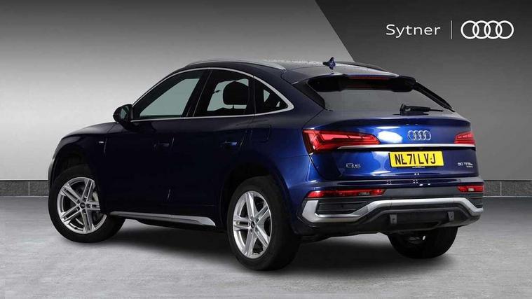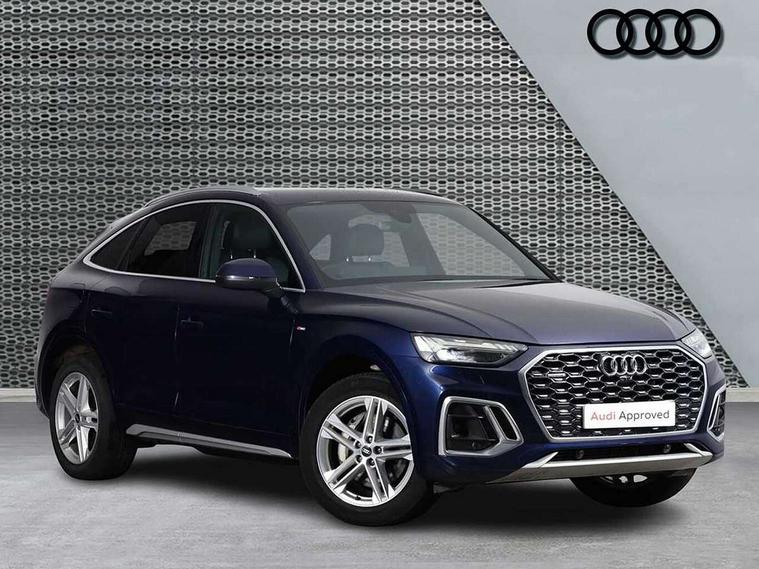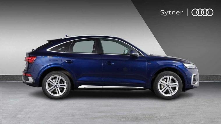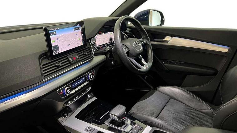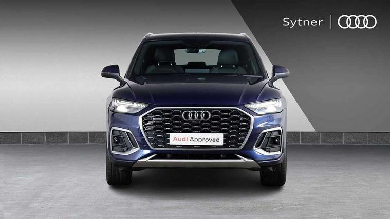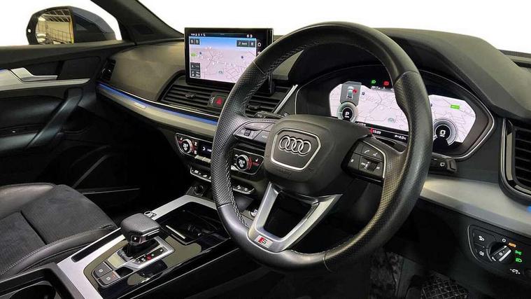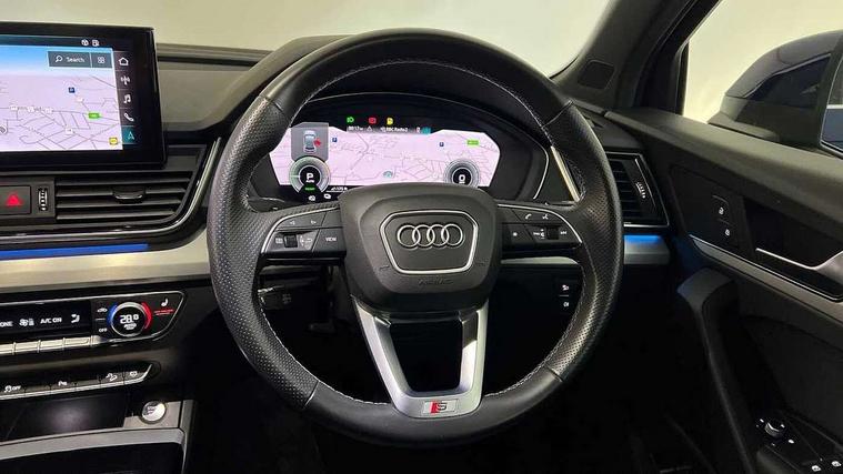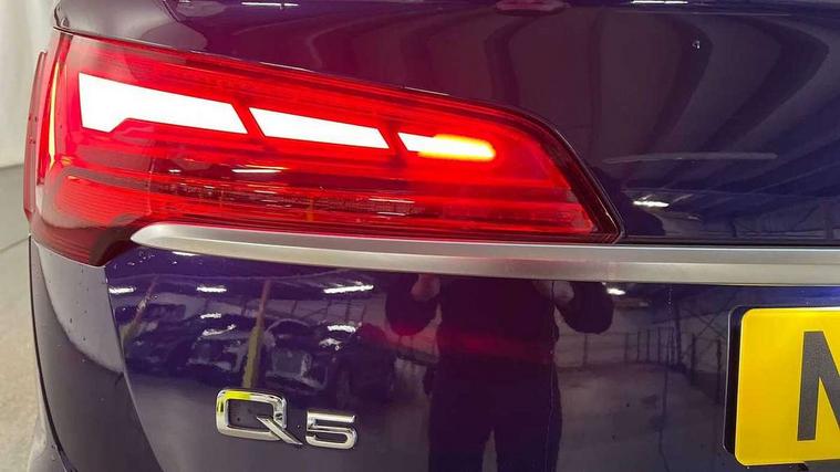 Audi connect safety and service (e-call), Audi connect with Amazon Alexa Integration, Audi drive select, Audi virtual cockpit plus with 12.3" screen and three different layout designs, Audi wireless smartphone interface, Automatic start-stop system with coasting functionality and efficiency programme, Bluetooth interface, Electro - mechanical power assisted steering, MMI navigation plus with 10.1" touch screen, Power tailgate, Reversing camera, Service interval indicator, Voice control system with Audi hotword activation "Hey Audi", 3 pin 10 amp domestic charging cable, Dynamic suspension, Quattro on demand, Type 2 mode 3 22kW 32 amp charging cable, Type 2 socket for AC charging, 2 x USB charging port with aux input socket, DAB Digital radio, Acoustic windscreen, Aluminium roof rails, Audi matrix LED headlights with dynamic front and rear indicators, Auto dimming rear view mirror, Automatic headlights and windscreen wipers, Body colour bumpers, Body colour door mirrors, Body colour rear diffuser with matt aluminium silver surrounds, Body colour underbody protection, Chrome plated exhaust trims, Door sills in Selenite silver, Electric adjustable/heated/folding door mirrors, Front air inlet surrounds in aluminium, Front and rear electric windows, Front radiator grille in honeycomb design, Headlight washers, Lower bumpers painted in contrast Manhattan grey, Rear chrome trim strip below lights, Rear privacy glass and rear side windows, Rear spoiler, Rear wiper, Roof bars, S Line badges on the front wings, S Line front and rear bumpers, S Line side skirts, 3 rear headrests, 40:20:40 split folding rear seat with rear centre armrest, Black cloth headlining, Comfort front centre armrest, Contrast stitching on seats, steering wheel and gear lever gaiter, Deluxe 3 zone electronic climate control, Front/rear floor mats, Gear lever in black leather, Heated front seats, Height adjustable front head restraints, Height/reach adjustable steering column, Illuminated door sill trims with S logo, ISOFIX child seat mounting and top tether, Manual seat adjustment with 4-way electric lumbar support, Rear seat bench plus, Sunvisors with vanity mirrors, Trunk roller cover, High gloss pack - Q5, LED interior light pack - Q5, 3 point seatbelts on all seats, 6 airbags - Driver, front passenger, curtain and side airbags, Electrically operated child locks on rear doors, Electromechanical parking brake, Electronic stabilisation control including ABS, ASR and EDL, Front passenger airbag deactivation, Hill descent control, Hill hold assist, Multi collision brake assist, Pop-up bonnet for pedestrian protection, Pre sense city, Seat belt force limiter, Seatbelt monitoring, Tyre pressure warning, Warning triangle and first aid kit, Anti theft alarm, Anti-theft wheel bolts, Keyless Go access/ignition system, Matt brushed aluminium inlays, Tool kit, Tyre repair kit,