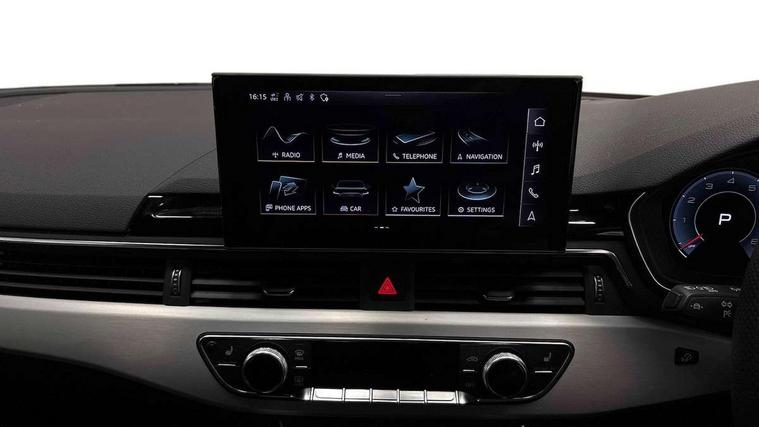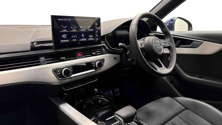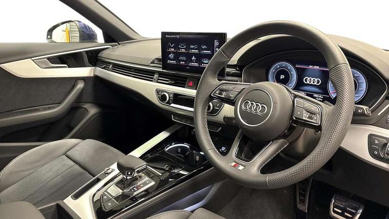 Audi connect safety and service (e-call), Audi drive select, Audi smartphone interface, Audi virtual cockpit, Automatic start-stop system with coasting functionality and efficiency programme, Bluetooth interface, Camera based traffic sign recognition, Electromechanical power steering, Email, calendar and text messages displayed via MMI, Front and rear parking sensors, Lane departure warning, MMI Navigation plus with MMI touch includes 10.1" high resolution colour MMI display, 3D map, Power operated tailgate, Rear view camera, Voice control system, 54 litre fuel tank, Sports suspension lowered by 23mm, 2 USB charging ports, 8 passive loudspeakers, DAB digital radio reception, Aluminium roof rails, Auto dimming rear view mirror, Body colour door handles, Body colour front spoiler lip, Body colour side sill trim, Body coloured door mirrors, Electric adjustable/heated/folding door mirrors with auto dimming, Grained matt black side air inlets with matt aluminium silver inlay, High beam assistant, Honeycomb structure radiator grille in grained matt black, LED headlights with LED rear lights + dynamic rear indicators + headlight adjustment and high beam, turning light + LED daytime running lights, LED third brake light, Matt aluminium silver tailpipe trim, Privacy glass, Rain and light sensors, Rear side wing doors, Rear wiper, S Line badges on the front wings, S line front and rear bumpers with side skirts, S Line rear diffuser in matt anthracite black with trim strip in matt aluminium silver, S Line roof edge spoiler, Variable intermittent front wash/wipe, Windscreen with acoustic glazing, 3 spoke high multi-function sports leather steering wheel grips in perforated leather with S badging including paddle shift, 4 way electric lumbar support for driver and front passenger, 40/20/40 split folding 3 rear seat bench in 3 parts with rear centre armrest, Black carpets, Black cloth headlining, Black perforated leather gearknob, Contrast stitching on seats, steering wheel and gear lever gaiter, Deluxe 3 zone electronic climate control, Electric load area cover, Front and rear head restraints, Front centre armrest, Heated front seats, Illuminated door sill trims with S logo, ISOFIX child seat mounting and top tether, Manual seat adjustment, Single front passenger seat, Stainless steel pedals and foot rest, High gloss package - A4, LED Interior light pack - A4/S4, 3 rear seatbelts, 6 airbags - Driver, front passenger, curtain and side windows, Attention and drowsiness assist, Electronic Stabilisation Control (ESC) including ABS, ASR and EDL, Hill hold assist, Multi collision brake assist, Pop-up bonnet for pedestrian protection, Pre sense city, Rear door child safety locks, Seatbelt monitoring, Warning triangle and first aid kit, Anti theft alarm, Anti theft wheel bolts, Central locking, Keyless Go, Matt brushed aluminium inlays, Tool kit, Tyre repair kit,