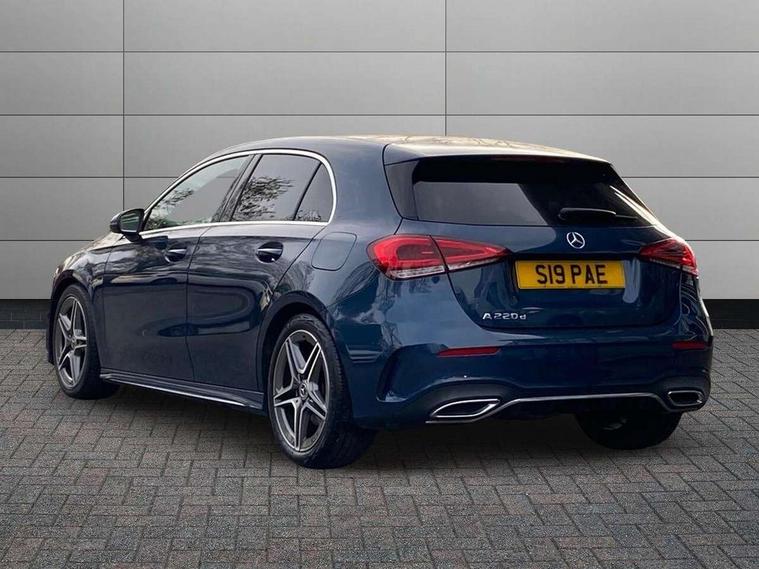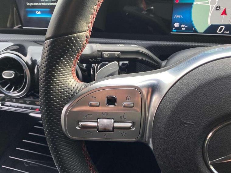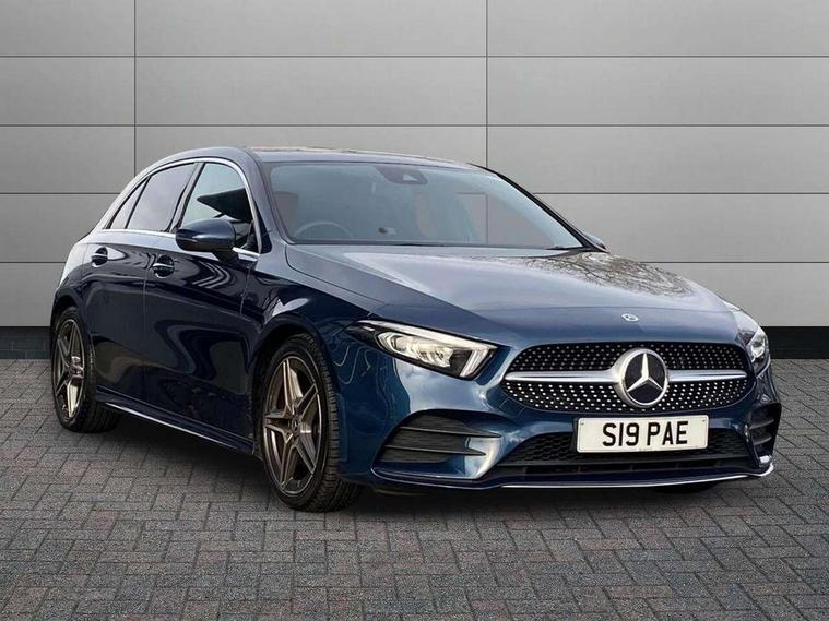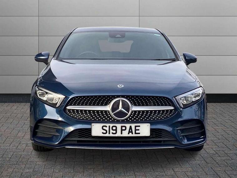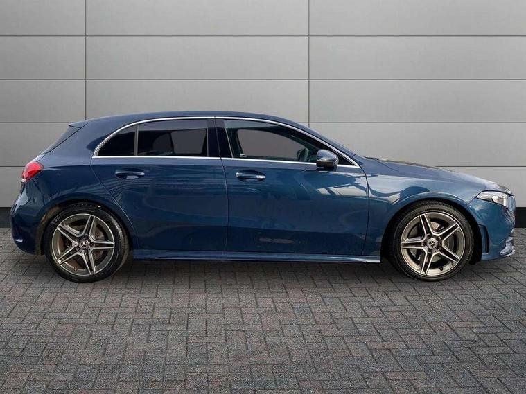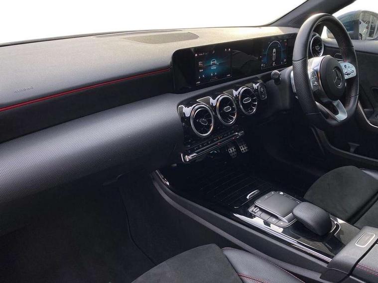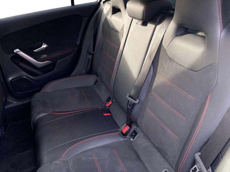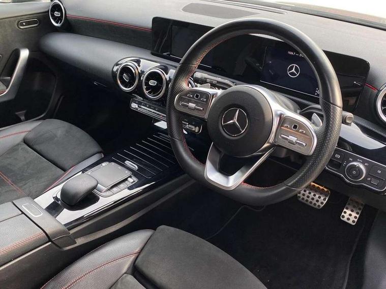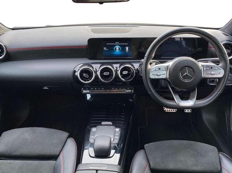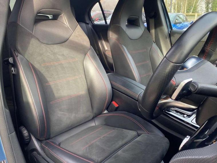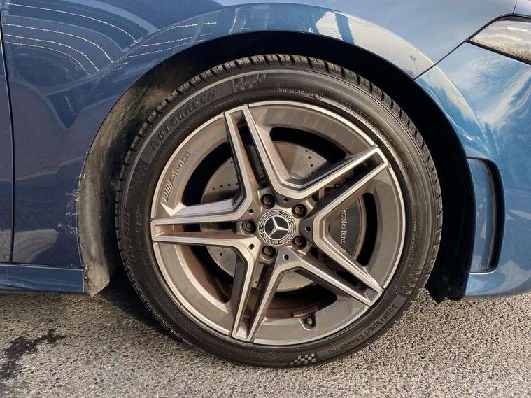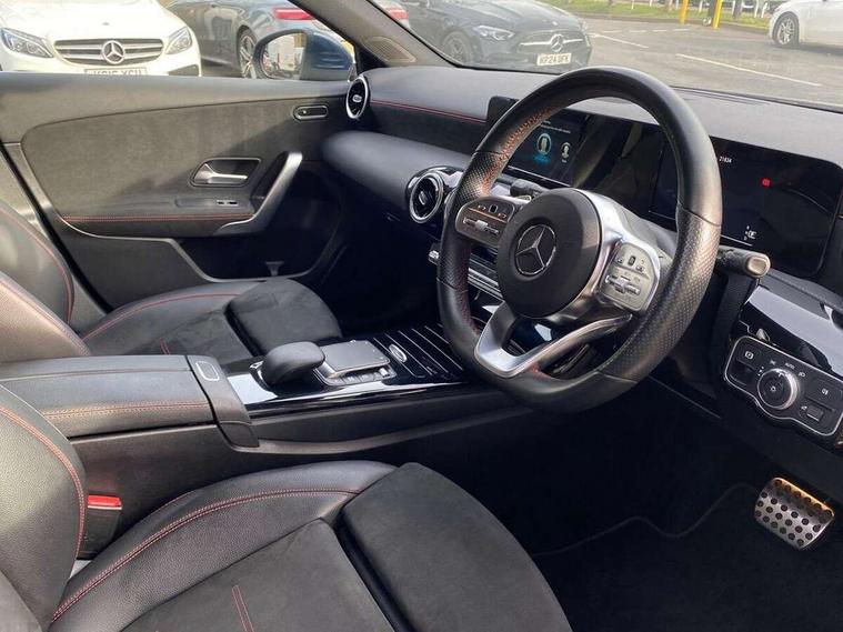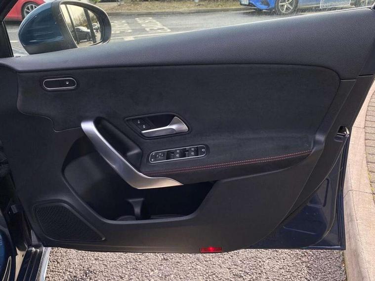 180 degree rear view camera with parking guidelines, 7" colour screen in instrument panel, 7" touchscreen media display, Active lane keep assist, Attention assist, Brake pad wear indicator warning light, Car wash mode, Cruise control + speed limiter, Direct steering, Dual bluetooth interfaces, DYNAMIC SELECT with a choice of driving modes (ECO, Comfort, Sport and Individual), ECO start/stop function, Fluid level warning indicator for fuel, oil, coolant and washer fluid, Hard-disk navigation, Hey Mercedes Voice activation, Lamp failure indicator, Mercedes me connect including emergency call system, accident recovery, breakdown and maintenance management, Outside temperature gauge, Owners manual in English, Pre-installation for private car sharing, Pre-installation for Vehicle Monitoring, Pre-installation for Vehicle Setup, Preinstallation for Mercedes Benz link, Service indicator (ASSYST), Speed sensitive power steering, Trip computer, Lowered comfort suspension, Rear axle multi-link, 2 USB ports (type C) in rear stowage compartment and one in front of center console, 6 speakers, DAB Digital radio, MBUX multimedia system with DAB digital radio and touchpad including satellite navigation, Mercedes-Benz sound system - 100W, 4 Electric Front and Rear windows, Adaptive brake lights, AMG bodystyling - Front apron with splitter in chrome, rear apron with chrome trim and chrome visible trim elements in tailpipe, Black weather strip, Body colour bumpers, Body colour door handles, Body colour side skirt, Body coloured door mirrors, Chrome beltline trim, Diamond radiator grille with chrome pins and silver louvre + chrome insert, Electric adjustable and heated door mirrors with integrated LED side indicators, Exhaust system - Twin visible tailpipes in polished stainless steel, Headlamp assist automatic headlamp activation, Heated glass rear windscreen + timer control, LED high performance headlamps with integrated LED daytime running lights, LED tail lamp, LED third brake light, Privacy glass, Radio aerial, Rain sensing windscreen wipers with two sensitivity settings, Rear fog lights, Rear wiper, Window line trim strip in chrome, 3 Spoke flat bottom leather multi function steering wheel with perforated leather in grip area, 40:20:40 split folding rear seats, Artico man-made leather/Microfibre Dinamica upholstery with red contrast stitching, Auto Mercedes-Benz child seat recognition sensor, Black air vents with surround in silver chrome, Black roof lining, Brushed stainless steel sports pedals with rubber studs, Controller on centre console with chrome surround, Floor mats with stitched edging and AMG lettering, Front centre armrest with storage compartment, Front door sills with Mercedes Benz lettering, Front seat backs luggage nets, Front seat cushion length adjustment, Galvanished gear shift paddles on steering wheel, Heated front seats, Height/reach adjustable steering column, Interior mirror with reading lamps in black and frameless, Manual height adjustable front seats, Rear head restraints, Seat occupancy sensor for front passenger seat, Sports seats with integrated headrests, Stowage compartment in centre console with retractable cover, Sunvisors with illuminated vanity mirrors, Touchpad on center console, Twin front cupholders, Two zone thermotronic luxury automatic climate control, Light and sight pack - A Class, Seat comfort pack - A Class, 3 rear 3 point seatbelts, ABS with Brake Assist, Active bonnet, Active brake assist includes forward collision warning system with autonomous braking, Adaptive brake assist with hold function and hill start assist, Black seatbelts, Childproof locks manually operated for rear doors and electrically operated for rear power windows, Crash responsive emergency lighting, Driver and passenger head and side airbags, Drivers knee airbag, Dual stage driver/passenger airbags, Electronic parking brake, ESP curve dynamic assist, ESP with ASR, Front and rear seatbelt reminder, Front brake callipers with Mercedes Benz lettering, ISOFIX and top tether child seat fixing points in two outer rear seats, Tyre pressure monitoring system, Warning triangle and first aid kit, Window airbags, Alarm system/interior protection/immobiliser, Keyless Go, Remote central locking and crash sensor with emergency opening function, Urban guard vehicle protection system with immobiliser and interior protection, Dinamica microfibre trim in black, 18" AMG 5 twin spoke light alloy wheels in titanium grey with highsheen finish, Summer tyres, Tirefit sealant kit,
