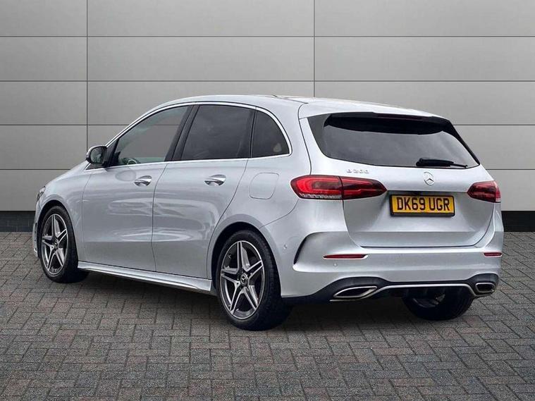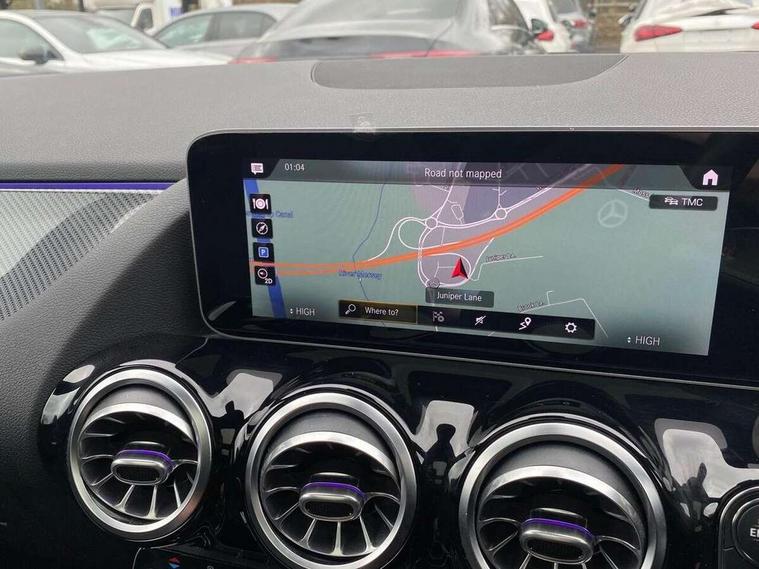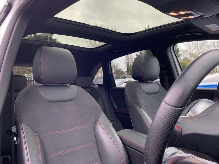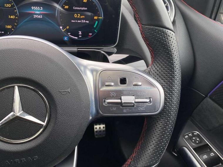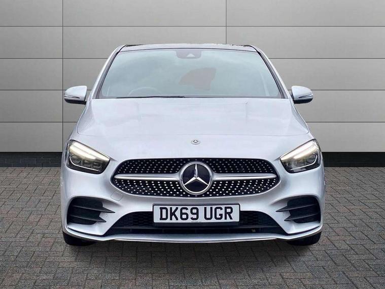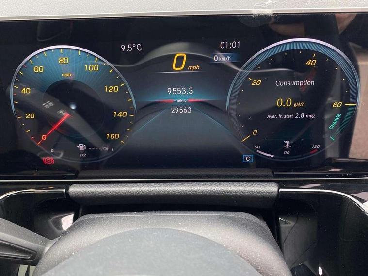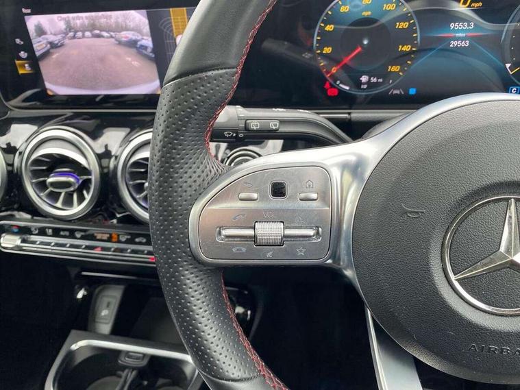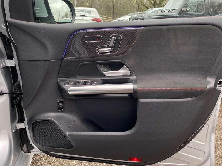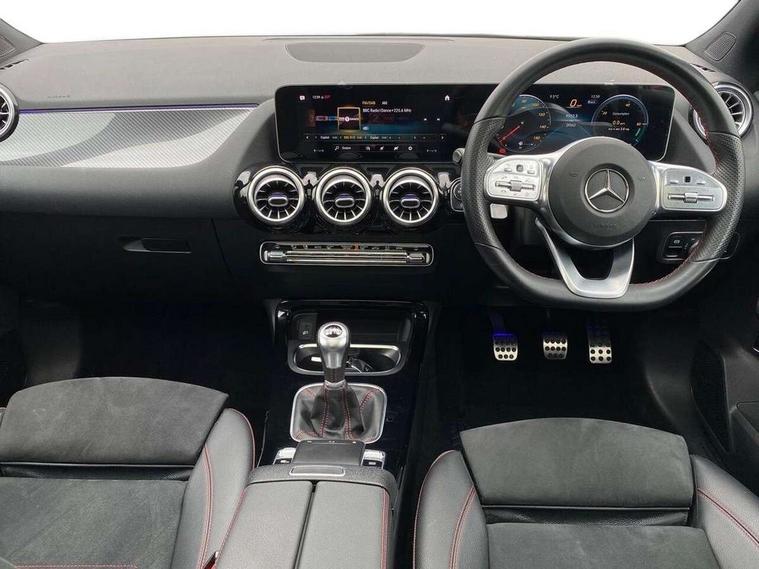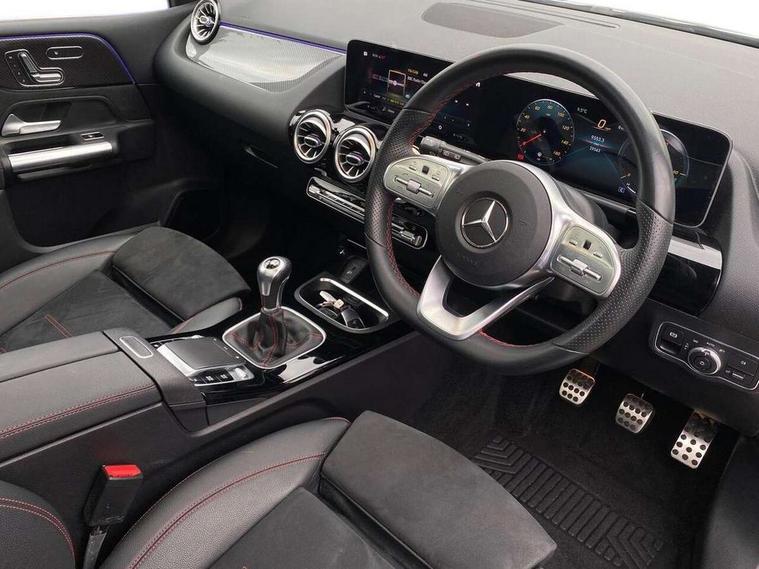 10.25" Digital instrument cluster display screen, 10.25" media display, 180 degree reversing camera with parking guidelines, Active lane keeping assist, Active park assist with parktronic system including front and rear parking sensors, Attention assist - Monitors steering behaviour and long journey fatigue, Brake pad wear indicator warning light, Cruise control + speed limiter, Direct steer system, DYNAMIC SELECT with a choice of driving modes (ECO, Comfort, Sport, Sport+ and Individual), Easy-pack tailgate, ECO start/stop function, Fluid level warning indicator for fuel, oil, coolant and washer fluid, Hard-disk navigation, Hey Mercedes Voice activation, Lamp failure indicator, Mercedes me connect including emergency call system, accident recovery, breakdown and maintenance management, Outside temperature gauge, Power assist steering, Pre-installation for private car sharing, Preinstallation for Mercedes Benz link, Service indicator (ASSYST PLUS), Speed limit assist, Trip computer in multifunction display with current consumption indicator, Lowered comfort suspension, Rear axle multi-link, DAB digital radio tuner, Dual bluetooth interface, 2 USB ports (type C), MBUX multimedia system with DAB digital radio and touchpad including satellite navigation, Mid-range sound system, 4 Electric Front and Rear windows, Active radiator shutters open for cooling air and close when not needed to improve aerodynamics and fuel efficiency, Adaptive brake lights, Aerial for GPS, AMG body styling front apron, rear apron and side skirts, Body coloured bumpers, Body coloured door handles, Body coloured side skirts, Chrome beltline strips, Diamond radiator grille pins in chrome with silver painted louvres and chrome insert, Electric adjustable and heated door mirrors with integrated LED side indicators, Exhaust system - Twin trapezoidal tailpipes in polished stainless steel, Headlamp assist automatic headlamp activation, Heated glass rear windscreen + timer control, High level LED third brake light, LED daytime running lights, LED tail lamp, Multibeam LED with adaptive highbeam assist plus, Panoramic sliding sunroof, Privacy glass, Rain sensing windscreen wipers with two sensitivity settings, Rear fog lamp, 3 spoke multifunction sports steering wheel in nappa leather with flattened bottom and perforated grip area, 40:20:40 split folding rear seat backrests, Air vents with surround in silver chrome, Artico man-made leather/Microfibre Dinamica upholstery with red contrast stitching, Automatic child seat recognition sensor, Black roof lining, Brushed stainless steel sports pedals with rubber studs, Cup holder and stowage compartment lighting, Electric front seats with memory function, Floor mats with stitched AMG lettering, Folding rear armrest, Freight packaging without tie-down hooks, Front and rear Handle recess/closing handle light in left and right, Front and rear head restraints, Front centre armrest with stowage, Front door sills with Mercedes Benz lettering, Front footwell lights, Front reading lamps in left and right console downlighter, Front seat cushion length adjustment, Front signal exit lamp in left and right, Front sport seats, Front vanity light in left and right, Galvanished gear shift paddles on steering wheel, Heated front seats, Illuminated door sills, Illuminated glove compartment stowage, Interior lighting - 64 colour Ambient lighting, Luggage net on driver/front passenger seat backrest, Manually height and reach adjustable steering column, Oddments tray lighting, Rear reading lamp in support plate in left and right, Seat occupancy sensor for front passenger seat, Seats with adjustable head restraints, Spectacles compartment for driver, Sunvisors with illuminated vanity mirrors, Thermatic single zone climate control, Touchpad illumination, Touchpad on center console, Twin front cupholders, Two outer rear seat isofix and top tether child seat fixing points, Light and sight package - B Class, Mirror package - B Class, Seat comfort pack - B Class, 3 rear three point seatbelts, Active bonnet pedestrian safety measure which detects an impact and raises bonnet, Active brake assist includes forward collision warning system with autonomous braking, Adaptive brake assist with hold function and hill start assist, Airbags - kneebag for driver, Anti-lock braking system (ABS) with brake assist, Childproof locks manually operated for rear doors and electrically operated for rear power windows, Crash responsive emergency lighting, Driver and front passenger head and sidebags, Driver and front passenger windowbags, Dual stage driver/passenger airbags, Electric parking brake, Electronic stability programme with acceleration skid control, ESP curve dynamic assist, Front and rear seatbelt reminder, Front brake callipers with Mercedes Benz lettering, Tyre pressure monitoring system, Warning triangle and first aid kit, Alarm system with immobiliser and interior protection -Thatcham category 1, Keyless entry lock/unlock, Remote central locking and crash sensor with emergency opening function, Carbon structure trim, Light switch in high-gloss black with ring in silver chrome, 18" AMG 5 twin spoke design alloy wheels painted in titanium grey with high sheen finish, Summer tyres, Tirefit tyre sealant kit,