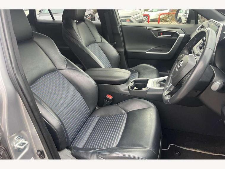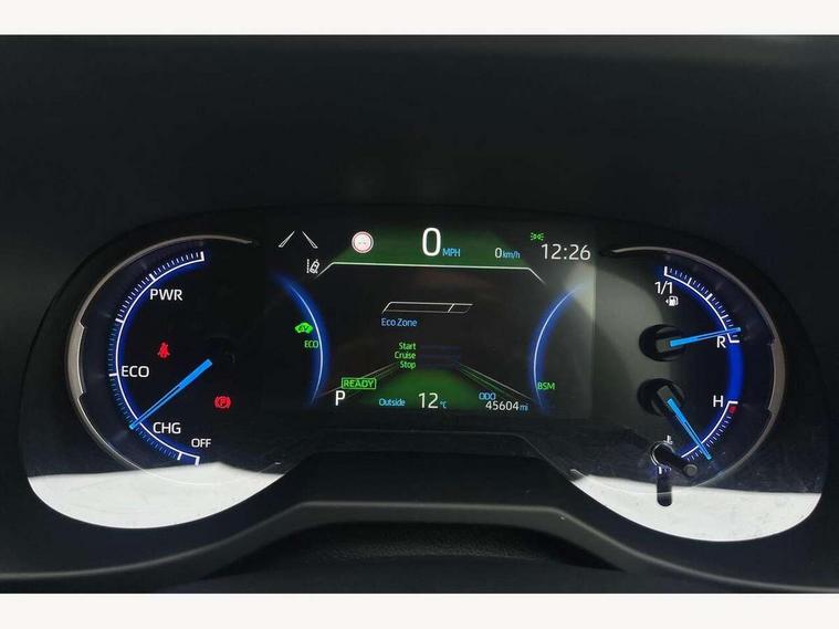 7" colour TFT display, Adaptive cruise control with lane trace assist, Adjustable speed limiter, Apple car play and Android auto, Blind spot monitoring with rear cross traffic alert, Bluetooth system, Cyclist Detection, Drive mode selector, eCall emergency call system, ECO-driving indicator, Electric power steering, EV audible alert, Hybrid system indicator, Lane departure warning system, Lights on warning, Night Time Pedestrian Detection, Pedestrial detection, Power boot opening and closing, Rear parking camera, Rear parking sensors, Remote boot door release in cabin, Tachometer, Touch 2 Go navigation system including 3D maps and voice control, Traffic sign recognition, Trip computer, Voice control system, Vehicle Stability Control (VSC), 6 speakers, 8" Multimedia display touch screen, Auxiliary socket for external MP3 player, DAB audio, Steering wheel mounted audio controls, Toyota touch media system, USB connection, Auto dimming interior mirror, Auto high beam, Automatic headlamp levelling, Automatic headlights, Automatically retractable door mirrors, Bi-tone black roof, Black door mirrors, Black rear spoiler, Black roof rails, Black Shark-fin antenna, Body colour door handles, Body coloured bumpers, Door mirror puddle lights, Electric adjustable door mirrors, Emergency brake-light signal (EBS), Follow me home headlights, Front fog lights, Gloss black front bumper insert, Gloss black rear bumper insert, Headlight cleaners, Heated door mirrors, LED daytime running lights, LED High mounted stop lamp, LED rear lights, Meshed upper front grille, Power front windows, Power rear windows, Privacy glass, Projector LED headlights, Rear screen wiper - intermittent, Rear windscreen defogger, Silver front under-run, Silver rear under-run, Trailer Sway Control, Turning signal integrated indicators in door mirrors, 3 rear headrests, 60/40 split fold rear seat back, Black roof lining, Boot light, Clean air filter, Driver and front passenger personal light, Driver and front passenger Whiplash Injury Lessening seats, Driver and passenger sunvisors with illuminated vanity mirrors, Dual sided deck board in boot, Dual zone automatic air conditioning, Floor mats, Folding rear centre armrest, Front and rear bottle holders, Front centre armrest, Front footwell lights, Front headrests, Front seat and rear pockets, Front sport seats, Front/rear roof mounted assist grips, Heated driver and front passenger seats, Isofix child seat preparation, Leather gear shift with chrome surround, Light blue ambient lighting on front cupholders and open tray, Manual telescopic and tilt 3-spoke leather steering wheel with Chrome insert, Manually reclining and sliding front passenger seat, Pollen filter, Power height-adjustable sliding reclining and lumbar support for driver seat, Rear coat hooks, Rear door armrests, Rear passenger air vents, Reclining rear seats, Satin chrome interior door handles, Sunglasses holder, Synthetic leather upholstery, 3x3 point rear seatbelts, ABS/EBD, Adjustable front driver and passenger seat belt extender, Brake assist function, Child proof door locks, Collision mitigation braking system, Driver/Front Passenger airbags, Driver/front passenger side airbags, Drivers knee airbag, Electronic parking brake, Electronic Stability Programme (ESP), Emergency brake light system (EBS), Front and rear curtain airbags, Front and rear seatbelt reminder, Hill start assist, Passenger airbag cut-off device, Seatbelt pretensioners with load limiters, Traction control, Tyre pressure warning, Alarm/immobiliser, Glass-breaking alarm sensors, Light - on and Key in reminder, Remote central locking, Smart entry + Smart start, Speed sensitive auto door locking, Tilt detection sensors, Piano black centre console with silver insert, Soft-touch black lower dashboard, Soft-touch black upper dashboard with silver insert, Full size spare wheel,