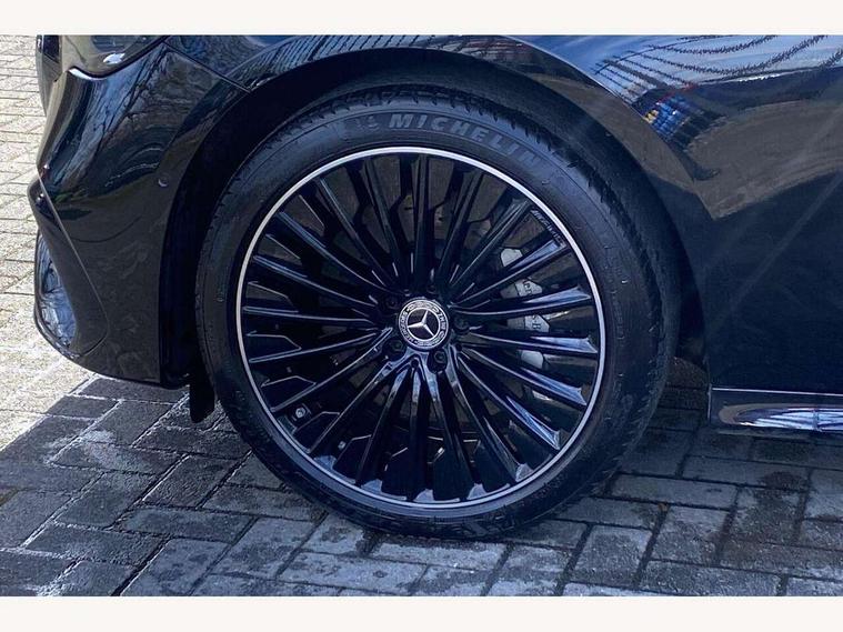 12.3" high resolution cockpit display, 14.4" high resolution central media display with latest MBUX generation, 5G Communications module, Acoustic presence indicator, Active lane keeping assist, Attention assist, Blind spot assist, Bluetooth, Brake wear warning display, Direct steer speed sensitive steering, ECO start/stop function, Evasive manoeuvre support, Fingerprint scanner, Fluorescent jacket for driver, Hard disc navigation, MBUX navigation premium, MBUX voice control, Mercedes me connect including emergency call system, accident recovery, breakdown and maintenance management, Outside temperature display, Preinstallation for live traffic, Remote and charging services plus, Remote Services Premium, Service indicator (ASSYST), Status display for rear seat belts in instrument cluster, Traffic sign assist, Trip computer in multifunction display showing current fuel consumption, Wireless charging, Wireless smartphone integration with Apple CarPlay and Android auto, 50 litre fuel tank, 9G TRONIC automatic transmission, AC charging, Agility control suspension with selective damping system, Charging cable for household socket, DC charging, Mode 3 charging cable for public charging and domestic charging stations, Sporty engine sound system, DAB Digital radio, Preinstallation for MBUX Entertainment Plus, 3rd brake light, Adaptive brake lights, Aerial integrated in rear window, AMG Line exterior, Auto dimming driver's door mirror, Auto dimming rear view mirror, Digital air vent control, Electric folding door mirrors, Electric windows with one touch opening/closing and obstruction sensors, Electrically adjustable and heated door mirrors, EQ badging, Heat insulating privacy glass, LED daytime running lights, LED high performance headlights with adaptive highbeam assist, Pre-installation for roof rail systems, Rear boot, Rear side wing doors, Surround lighting with logo projection, 3 seat bench in 2nd row, 4 way lumbar support, Ambient lighting, AMG brushed stainless steel sports pedals with rubber studs, AMG floor mats, AMG line interior, Artico/Microcut microfibre upholstery, Automatic child seat recognition sensor, Central stowage compartment with USB socket for use with Android Auto and Apple CarPlay, Courtesy lights in rear grab handles with reading light functionality, Folding rear seat backrest, Front centre armrest with stowage compartment, Gearshift paddles in galvanised silver, Glove compartment - lockable, air conditioned and illuminated, Head restraints for driver and front passenger (four-way adjustability) and in rear (two-way), Heated front seats, Instrument panel and door beltlines in artico nappa look leather, Multifunction sports steering wheel in nappa leather, Roof liner in black fabric, Seat occupancy sensor for front passenger seat, Single front passenger seat, Sports seats, Steering wheel touch control buttons for audio and onboard settings, Sunvisors with illuminated vanity mirrors, THERMATIC 2 zone automatic climate control, Night pack - E class, Parking package with 180 degree camera - E Class, USB plus package - E Class, 3x3 point rear seatbelts, Active bonnet pedestrian safety measure which detects an impact and raises bonnet, Adaptive brake system with HOLD function and brake drying in the wet, Anti-lock braking system (ABS), Automatic front passenger airbag deactivation, Central airbag, Childproof locks manually operated for rear doors and electrically operated for rear power windows, Driver and front passenger airbags, Electronic parking brake, Electronic Stability Programme, Hill start assist, ISOFIX child seat attachment points two outer rear seats, Knee airbags, Pedestrian protection, Pre-Safe anticipatory safety system, Tyre pressure monitoring system, Warning triangle and first aid kit, Window airbags, Alarm system/interior protection/immobiliser, Central locking with interior switch, automatic locking and crash sensor with emergency opening function, Guard 360 degree vehicle protection, Increased anti theft protection, Keyless Go, Urban guard vehicle protection plus, Centre console and dash trim in silver metallic mixted fabric, 20" AMG multispoke design alloy wheels painted in black with high sheen rim flange, Summer tyres, TIREFIT with tyre inflation compressor,