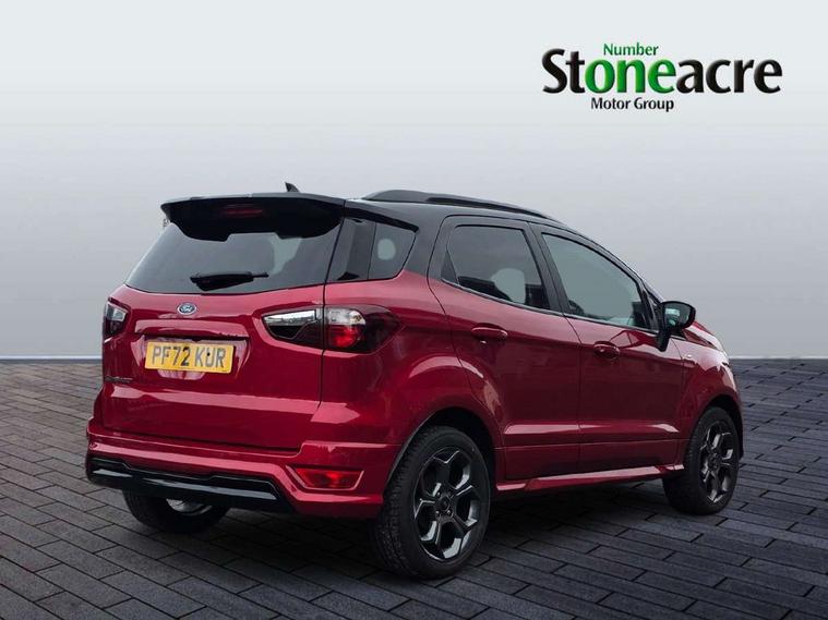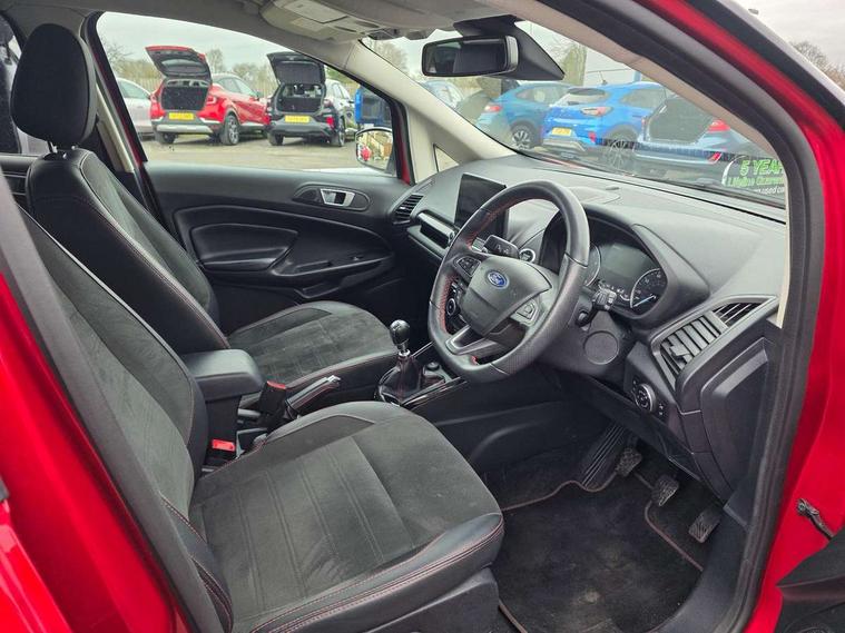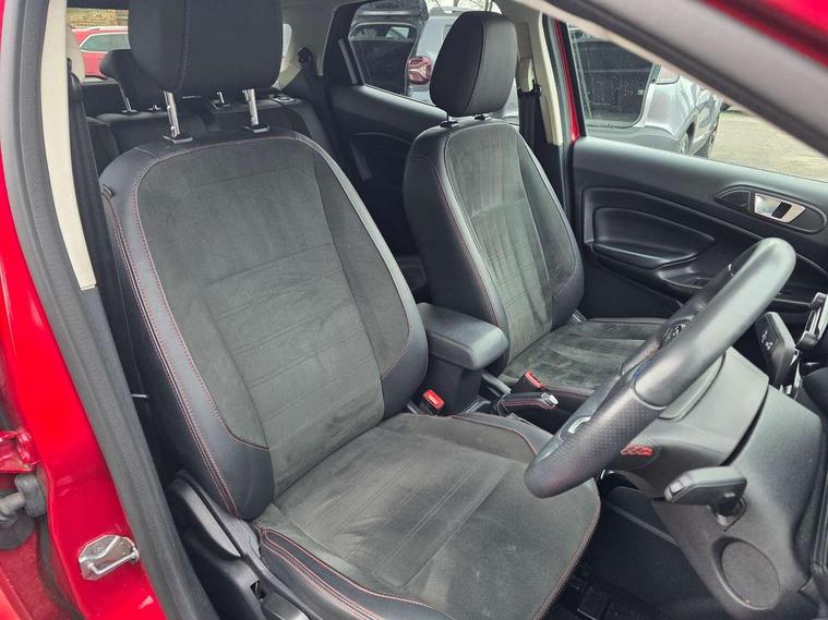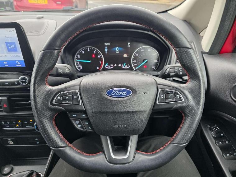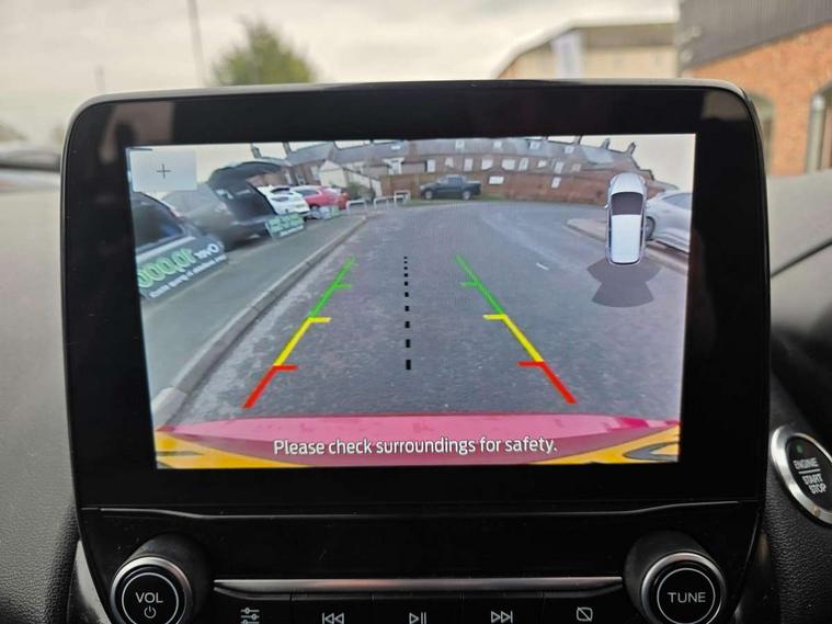 Cruise control, e-Call (emergency call), Easy fuel capless refuelling system, Ford SYNC 3 nav system with DAB radio, 8" screen, emergency assistance, Apple car play/Android auto, 2x USB, 6 speakers, Ford pass connect, Intelligent speed limiter, PAS, Rear parking sensors, Rear view camera, Traffic sign recognition, Trip computer, Sports suspension, Steering wheel mounted audio controls, Auto dimming rear view mirror, Automatic front wipers, Automatic headlights, Black roof rails, Body colour door handles, Body coloured bumpers, Chrome lower window surround, Electrically adjustable and heated door mirrors, Front fog lights, Front grille bars and surround in black, Headlight levelling control, Large rear roof spoiler, LED day running lights, LED third brake light, Power front and rear windows, Puddle lights, Quick-clear heated windscreen, Rear side wing doors, Rear wiper, ST Line body styling kit - Black headlamp bezel, front and rear sport bumpers, body colour lower door claddings, 12V socket in front and rear, 3 seat bench in 2nd row, 60/40 split rear seats, Ambient lighting, Centre console with sliding front armrest, Cooled glovebox, Courtesy lights with map reading light, Driver seat height/lumbar adjust, Driver's side glovebox, Driver/passenger sunvisors and lidded vanity mirrors, EATC - Electronic Auto Temperature control, Folding grab handles, Front head restraints, Front seat back map pockets, Illuminated glovebox, Illuminated luggage compartment, Isofix system on outer rear seats, Luggage compartment carpet, Neosuede/Partial sensico leather upholstery, Overhead console with sunglasses holder, Rake adjustable rear seats, Reach + rake adjustable steering column, Rear headrests, Sensico trimmed steering wheel, handbrake and gearshift gaiter with red stitching, Single front passenger seat, ST-Line Front floor mats with red stitching, Stainless steel sports pedals, Storage drawers under front seats, Tie down hooks, Variable boot floor, 3x3 point rear seatbelts, ABS, Autonomous emergency braking, Child locks on rear doors, Curtain airbags, Driver airbag, Drivers knee airbag, Electronic Stability Programme with hill launch assist, Front passenger airbag deactivation, Front side airbags, Passenger airbag, Pre collision assist system with AEB, Seatbelt reminder for driver and front passenger, Traction control, Tyre pressure monitoring system, Immobiliser, MyKey system, Remote central locking, Thatcham 1 volume sensing alarm, Low rolling resistance tyres, Tyre inflation kit,