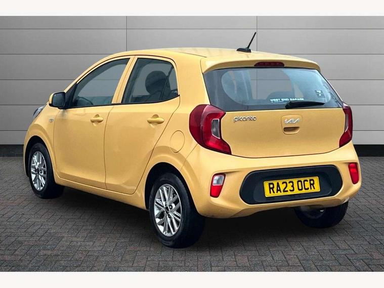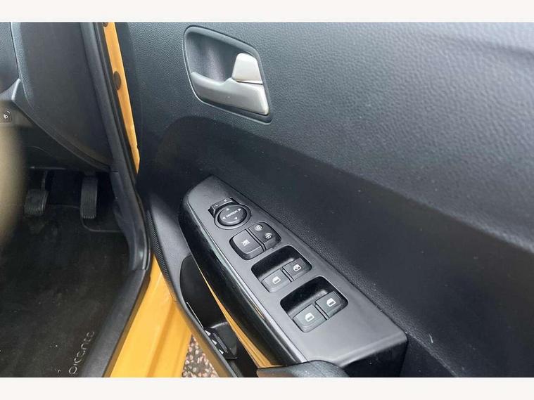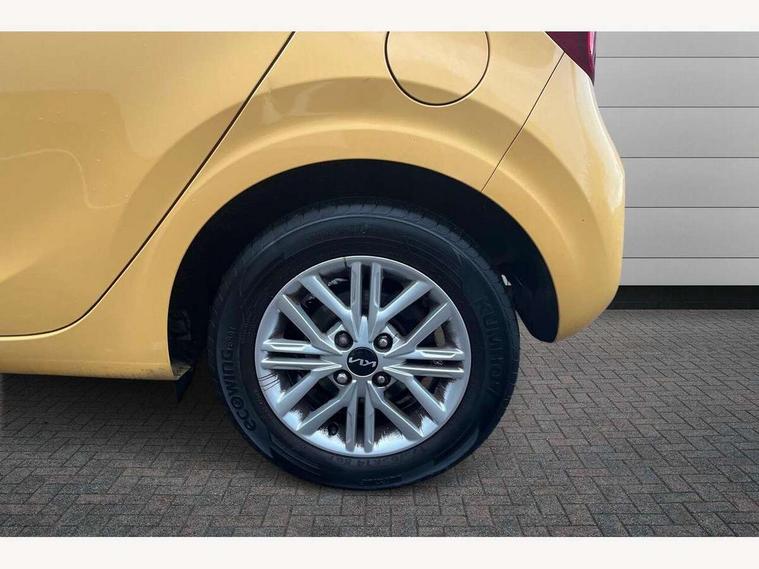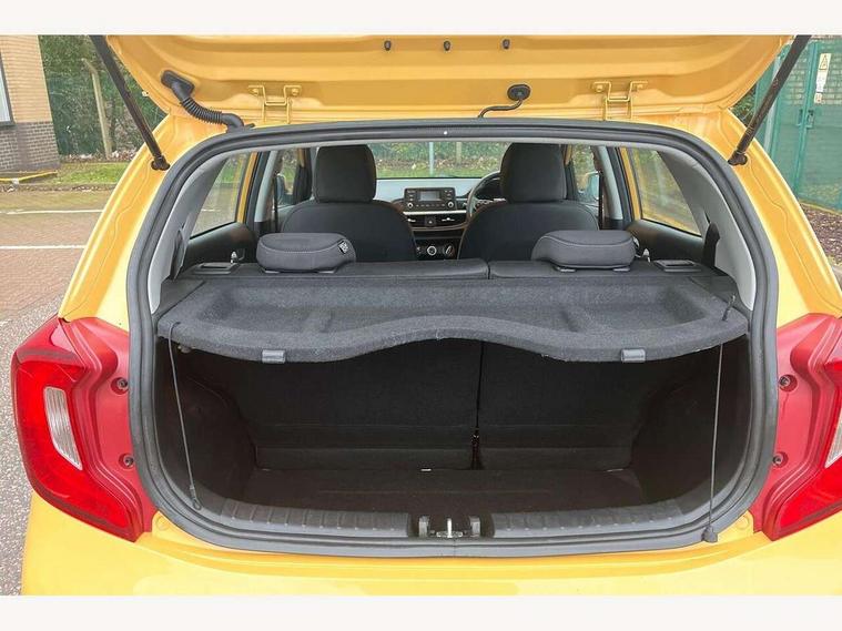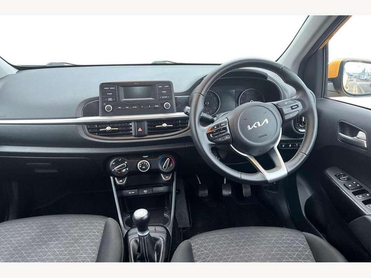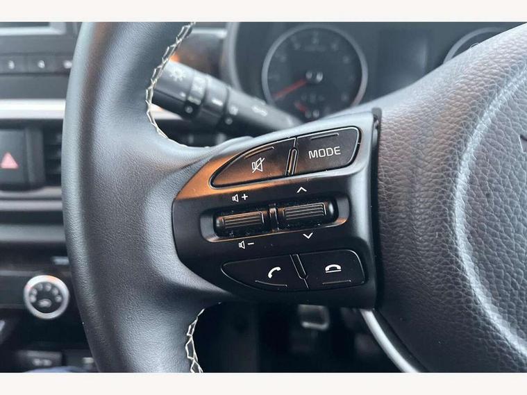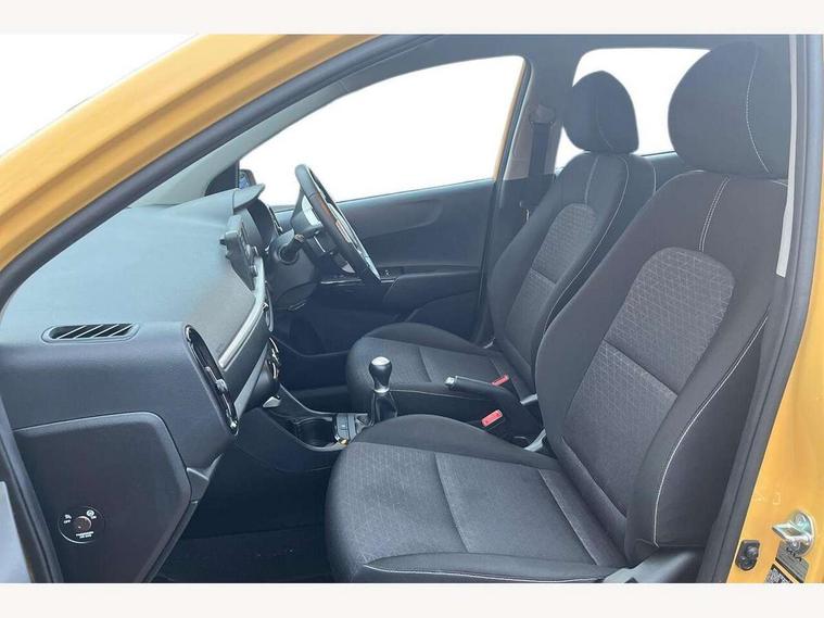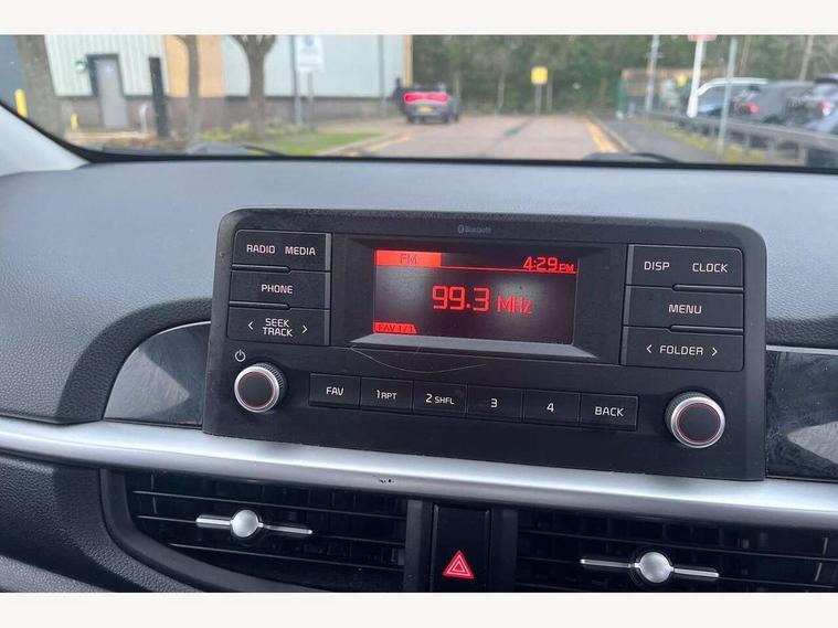 3.8" monochrome audio display with RDS and DAB, 4.2" supervision monochrome cluster display, Emergency call service, Emergency stop signalling system, External temperature gauge, Forward Collision-Avoidance Assist (FCA) - City, Motor driven power steering, Tachometer, Tailgate, Trip computer, 4 speaker audio system, Bluetooth with music streaming, Steering wheel mounted controls, USB ports for connection of a media device, Automatic headlight control system, Black radiator grille with chrome surround, Body colour bumpers, Body colour mirrors and door handles, Day/night rear view mirror, Daytime running lights, Electric adjustable heated door mirrors, Front and rear electric windows with drivers's auto up/down function, Headlamp levelling, Heated rear window, High mount brake light, MFR - Multi Focus Reflector halogen headlights with black bezel, Rain sensor, Rear fog lights, Rear side wing doors, Rear wash/wipe, Speed variable front wipers, Tinted glass, Visible VIN plate, Welcome and follow-me home light functionality, 1 x rear coat hook, 12V power point front, 2 seat bench in 2nd row, 3 x passenger assist grips, 60/40 split/folding 2nd row of seats, All round height adjustable headrests, Cupholders in centre console, Driver and front passenger sunvisor with vanity mirror, Driver seat height adjust, Front cabin lights, Glovebox, High gloss lower centre fascia trim, door armrest and air vents, ISOFIX Child seat top tethers and anchor fixings, Leather trimmed steering wheel and gearshift, Luggage area light, Luggage area parcel shelf, Manual air conditioning, Passenger front seatback pockets, Premium cloth upholstery, Silver paint finished interior door handles, Single front passenger seat, Slide/reclining front seats, Tilt adjustable steering wheel, Advanced Driver Assistance Pack - Picanto, 2 x 3-point rear seatbelts, ABS/EBD, Automatic unlocking of doors in case of impact, ESC + BAS + VSM + HAC, Front passenger airbag cut-off switch, Front seatbelt height adjusters, Front seatbelt pretensioners, Hill hold control, Hill start assist control (HAC), Knee airbags, Rear child proof door locks, Seatbelt warning, Side impact protection, Torque vectoring brake based and straight line stability (SLS), Traction control, Twin curtain airbags, Twin front airbags, Twin front side airbags, Tyre pressure monitoring system, Anti theft alarm, Engine immobiliser, Folding key, Locking wheel nuts, Remote central door locking, 14" alloy wheels, Tyre mobility kit,