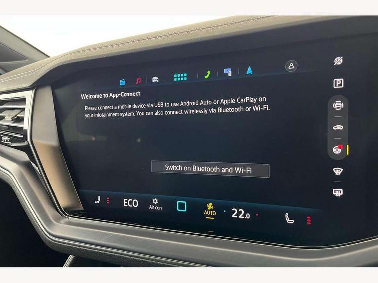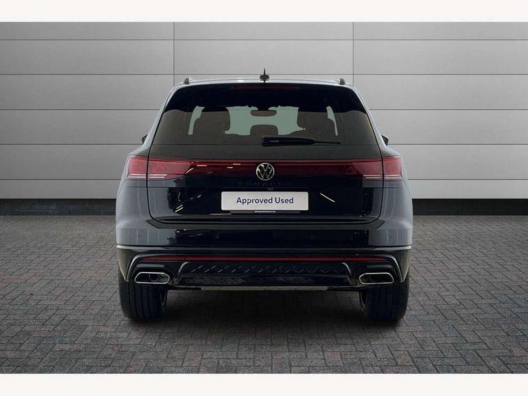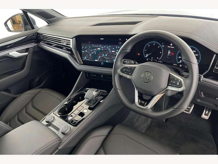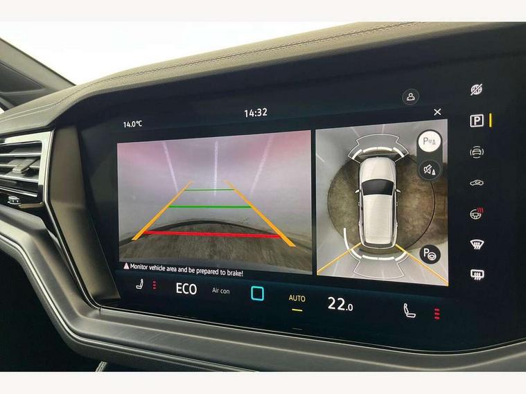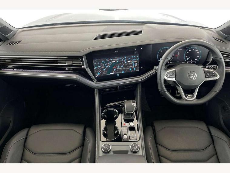 15" Screen Top infotainment system Premium (MIB3), Adaptive cruise control, Advanced driver attention and drowsiness monitor, Driver profile selection, Dynamic road sign display, E-Sim card for online connectivity, eCall emergency system, Innovision cockpit, Intelligent park assist, Mobile phone interface with inductive charging, Multi-colour Active Info display, Park Assist - Sensor controlled steering aid to assist parallel or bay parking, PAS, Warning signal and warning light for front and rear seatbelts not fastened, Wireless app connect, Adaptive chassis control, DAB Digital radio, Diversity antenna for AM/ FM reception, We Connect and We Connect Plus functionality, Automatic coming/leaving home lighting function, Automatic headlights, Black door mirrors, Black style comfort bumpers, Dynamic headlight range control with dynamic cornering light, Electric front tilt/slide panoramic sunroof and fixed rear sunroof, Electrically power adjustable, heated, folding, auto dimming, front passenger exterior door mirror lowering function, External USB type C socket and charging sockets, Gloss black roof rails, HD LED Matrix beam plus digital headlight projection with variable light distribution, Headlight washers, Highway light, LED 3rd brake light, LED daytime running lights, LED rear combination lamp with variable lighting functions and special styling, Poor weather light, Rain sensor, Rear exhaust tailpipe, Rear fog light with back up light on both sides, Rear light bar and illuminated logo, Rear side wing doors, Rear wiper, Stainless steel door sill protection, 12V socket in centre console, 3 rear headrests, 3 seat bench in 2nd row, 4 zone climate control, Airbag label on sun visor and B-pillar, Brushed stainless steel pedals, Double sun visors with illuminated vanity mirrors, Front + rear carpet mats, Front centre armrest, Leather wrapped multifunction sports steering wheel, heated, with touch control and shift paddles, Mechanical rear seat release, Power adjustable lumbar support in front, Power seats in front, right side with memory features and seat cushion depth adjustment, Rear seat backrest and split folding with center armrest, Single front passenger seat, Memory pack plus - Touareg, 3 point seatbelts, outer rear with ECE lable, ABS, Child locks on rear doors, Curtain airbags, Driver and front passenger safety-optimised head restraints, Driver/Front Passenger airbags, Extended pedestrian protection measures, Front assist, Front seat side impact airbags, Generative braking with start and stop system, Height adjustable 3 point front seatbelts with pre tensioners, Passenger airbag deactivate switch, Three 3 point rear seatbelts, Two tone horn, Warning triangle and first aid kit, Alarm system with interior protection, Easy open and close sensor controlled luggage compartment opening and closing with remote unlocking, Keyless Access Keyless locking and starting system with SAFELOCK, Aluminium decorative inserts, Black decorative trims, Gloss black decorative inserts in centre console, Tool kit,