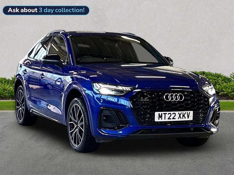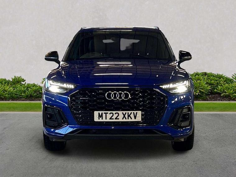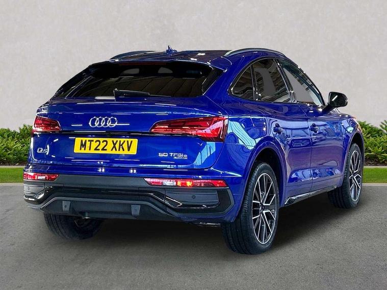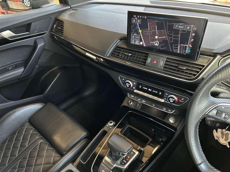 Audi connect safety and service (e-call), Audi connect with Amazon Alexa Integration, Audi drive select, Audi virtual cockpit plus with 12.3" screen and three different layout designs, Audi wireless smartphone interface, Automatic start-stop system with coasting functionality and efficiency programme, Bluetooth interface, Electro - mechanical power assisted steering, MMI navigation plus with 10.1" touch screen, Power tailgate, Reversing camera, Service interval indicator, Voice control system with Audi hotword activation "Hey Audi", 3 pin 10 amp domestic charging cable, 7.4 kW onboard charger, Dynamic suspension, Quattro on demand, Type 2 mode 3 22kW 32 amp charging cable, Type 2 socket for AC charging, DAB Digital radio, Acoustic windscreen, Audi matrix LED headlights with dynamic front and rear indicators, Auto dimming door mirrors, Auto dimming rear view mirror, Automatic headlights and windscreen wipers, Black door mirrors, Black roof rails, Body colour bumpers, Body colour underbody protection, Chrome plated exhaust trims, Daytime running lights, Door sills in Selenite silver, Electric adjustable/heated/folding door mirrors, Front air inlet surrounds in aluminium, Front and rear electric windows, Headlight washers, High gloss black B pillar trims and triangular rear door trim, High level LED brake light, Rear chrome trim strip below lights, Rear privacy glass and rear side windows, Rear side wing doors, Rear spoiler, Rear wiper, Roof bars, 2 x USB charging port with aux input socket, 3 rear headrests, 4 way electric lumbar support for driver and front passenger, 40:20:40 split folding 3 rear bench seat in 2nd row with rear centre armrest, Black cloth headlining, Comfort front centre armrest, Contrast stitching on seats, steering wheel and gear lever gaiter, Deluxe 3 zone electronic climate control, Electrically adjustable front seats, Fine Nappa leather upholstery with diamond pattern contrast stitching + front sport seats with S embossed logo, Front/rear floor mats, Gear lever in black leather, Heated front seats, Height adjustable front head restraints, Height/reach adjustable steering column, Illuminated door sill trims with S logo, ISOFIX child seat mounting and top tether, Rear seat bench plus, Single front passenger seat, Sunvisors with vanity mirrors, Tool kit, Trunk roller cover, Black styling package - Q5 Edition 1, Extended interior upholstery pack - Q5, Extended LED Interior multi coloured Lighting Pack - Q5, 3 point seatbelts on all seats, 6 airbags - Driver, front passenger, curtain and side airbags, Electrically operated child locks on rear doors, Electromechanical parking brake, Electronic stabilisation control including ABS, ASR and EDL, Front and rear brake calipers painted in red, Front passenger airbag deactivation, Hill descent control, Hill hold assist, Multi collision brake assist, Pop-up bonnet for pedestrian protection, Pre sense city, Seat belt force limiter, Seatbelt monitoring, Tyre pressure warning, Warning triangle and first aid kit, Anti theft alarm, Anti-theft wheel bolts, Keyless Go access/ignition system, Remote central locking, Piano black finish inlay, Tyre repair kit,