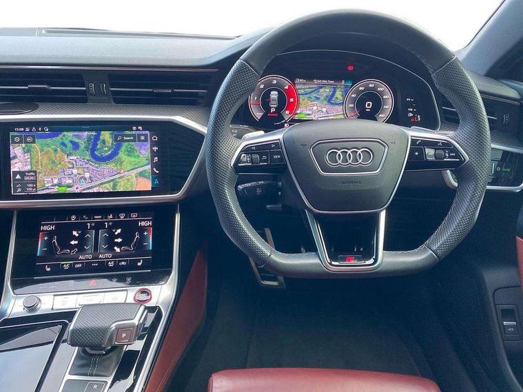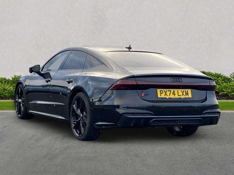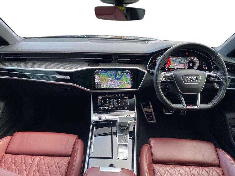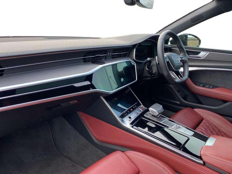 360 degree parking camera, Audi connect safety and service (e-call), Audi connect with Amazon Alexa Integration, Audi drive select, Audi smartphone interface includes wireless Apple carplay/Android Auto, Audi virtual cockpit, Automatic start/stop system with coasting functionality, Bluetooth interface, Camera based traffic sign recognition, Colour driver's information system display, Head up Display, Lane departure warning system, MMI nav plus with MMI touch + 10.1" and 8.6" HD haptic touch screen/3D city models/country information/online map/route info and personal route assist, Operating buttons in black, glass look with haptic feedback, Progressive steering, Service indicator, Voice control system, 22 litre AdBlue tank, 73 litre fuel tank, Diesel particulate filter, Quattro all wheel drive with self locking centre differential, Quattro on demand, S sport suspension with damper control, Audi music interface, Auxiliary input socket, Bang + Olufsen premium sound system, DAB digital radio module, Audi beam, Audi rings, front and rear as well S7 at the rear in black, Audi S badging on front grill with red rhombus and without model numbering, Body colour S specific rear diffuser, Electrically adjustable heated and folding + automatically dimming exterior mirrors with memory function, Frameless auto dimming interior rear view mirror, Front and rear electric windows, Gloss black highlights on the exterior area of the Audi Single frame, Gloss black highlights on the front and rear bumpers, Gloss black highlights on the radiator grille, Gloss black highlights on the side windows trim strips, HD Matrix LED headlights, Heat insulating darkened glass in side and rear windows, LED 3rd brake light, LED rear lights with dynamic indicators, Omission of output/technology badging, Privacy glass with side and rear windows, Rain and light sensors, Rear side wing doors, Rear wiper, Retractable rear spoiler, S air inlet in titanium anthracite black, S front and rear bumpers, S Line side skirts, Signature LED daytime running lights, Towbar preparation, Windscreen with heat-insulating glass, 4 zone climate control, 4-way electric lumbar support, 40/20/40 split folding 3 seater rear seat bench with rear centre armrest, Audi phone box light, Black cloth headlining, Electrically adjustable front seats - driver seat with memory, Front and rear headrests, Front centre armrest, Heated front seats, Height/reach adjust steering wheel, Illuminated sun visors with vanity mirrors, ISOFIX child seat mounting and top tether in front and outer rear seats with front passenger airbag deactivation, Leather gear knob, Leatherette upper instrument panel and door shoulders, Luggage compartment lid, electrically opening and closing, S line front and rear floor mats with contrast stitching, Single front passenger seat, Stainless steel pedals and foot rest, Tool kit, Valcona leather upholstery with super sport seats and S embossed logo, Extended LED Interior multi coloured light pack - A7, Non smoking pack - A7, Park assistance plus pack - A7, Storage pack - A7, 19" Disc brakes in front and brake calipers painted in black with "S" lettering (ECE), 3 point seatbelts on all seats, Audi pre-sense front, Driver and passenger airbags, Electromechanical parking brake, Electronic stabilisation control including ABS, ASR and EDL, Extended pedestrian protection measures, Hill hold assist, Manual child lock in rear doors, Seatbelt monitoring, Tyre pressure warning light, Warning triangle and first aid kit, Anti theft alarm with tow away protection, Anti-theft wheel bolts and wheel loosening detection, Immobiliser, Keyless Go, Preparation for tracking system, Remote central locking, Carbon twill inlays, 21" 5 V spoke trapezoid anthracite black, gloss turned alloy wheels,
