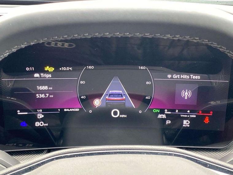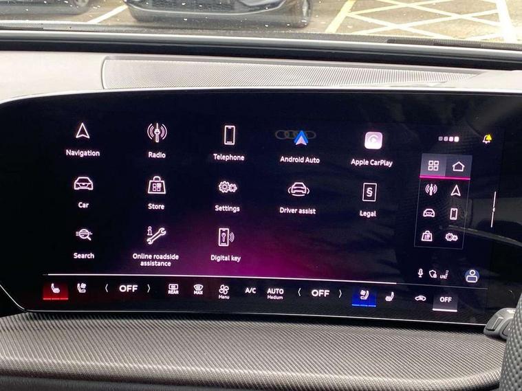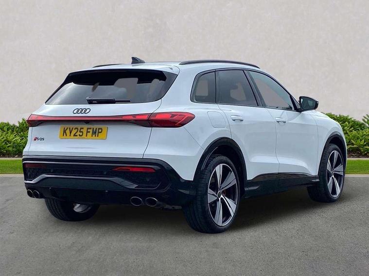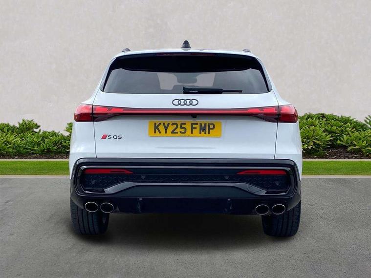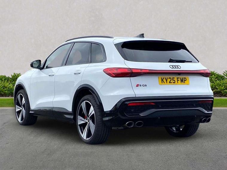 Adaptive cruise assist plus with steering intervention, Advanced driver attention alert, Audi application store, Audi connect emergency call and service, Audi digital key, Audi drive select, Audi smartphone interface, Audi virtual cockpit plus with 11.9" OLED colour display, Camera based traffic sign recognition, Fatigue monitor, Front cross traffic intersection assist, Garage door opener, Lane change assistant with exit warning system, rear cross traffic alert and rear turn assist, Lane departure warning with emergency assist, MMI 10.9" front passenger touch display, MMI navigation plus with high resolution 14.5" OLED touchscreen colour display, Park assist plus, Parking system plus with 360 display, PAS, Reversing camera, Swerve assist and turn assist, Top view camera, Traffic sign based speed limiter, S adaptive air suspension, 2 USB-C ports in both the front and rear, DAB Digital radio, Smartphone compartment with wireless charging, Acoustic glass for front door windows, Active digital light signatures - Six additional combinations of active daytime running light signature, Auto dimming rear view mirror, Black door mirrors, Black roof rails, Coming/leaving home lighting function, Contrast bumpers in mythos black metallic paint finish, Digital OLED tail lights including communication light, Electrically adjustable heated and folding + automatically dimming exterior mirrors, Entry LED with red and white rhombus S logo projection, Exhaust tailpipes in dark chrome, Front and rear electric windows, Front door sill trims with aluminium inlays, illuminated with 'S' logo, Grill frame, inlay and front air inlets in matt anthracite chrome, Headlight cleaning system, Heated rear window, High beam assist, High gloss window surrounds, Logo projection light in exterior mirrors, Matrix LED headlights, Memory function for door mirrors, Privacy glass, Projection third brake light for rear window in LED, Radiator grille in phantom black, Rear and side windows with heat insulating glass, Rear honeycombe grille in matt black with inlay in matt anthracite chrome, Rear side wing doors, Rear wash/wipe, Red S rhombus badging with 'S' lettering on rear, S exterior styling, Towbar preparation, Windscreen with acoustic glazing, 3 rear head restraints, 3 seat bench in 2nd row, 3 spoke leather steering wheel with multi-function buttons with touch control, flattened on top and bottom, with S badging and contrast stitching, 40:20:40 split folding rear seat bench with centre armrest and cup holders, Comfort centre armrest front, Deluxe 3 zone electronic climate control, Electric steering wheel adjustment, Electrically adjustable front seats with memory function for driver's side, Front and rear floor mats, Front seat ventilation, Front sport seats with integrated head restraints, Headlining in black cloth, Heated front seats, Heated outer rear seats, Heated steering wheel, i-Size child seat mounting on the front passenger side and outer rear seats, i-Size and top tether on the outer rear seats, Interior trim in aluminium look, Luggage compartment lid, electrically opening and closing, Perforated fine nappa leather upholstery with diamond stitching incl ventilation and massage function for front seats, Pneumatically adjustable lumbar support with massage function for front seats, Single front passenger seat, Softwrap in Dinamica, Stainless steel pedals and footrest, Steering wheel grips in perforated leather and shift paddles, Ambient lighting package plus - Q5, Black styling package plus - Q5, Sound and Vision pack - Q5, Storage and luggage compartment pack - Q5, Vanadium pack - Q5, 3x3 point rear seatbelts, ABS, Acoustic vehicle alerting system, Convenience key with safelock, Driver and front passenger airbag with passenger airbag deactivation, Electric child safety locks, First aid kit with warning triangle and high visibility vests, Front emergency brake assist, Front side airbags with head airbag system and front interaction airbag, Hill hold assist, Occupant detection in rear seat area, Proactive passenger protection system for front, sides and rear, Red brake calipers, Side airbags in front and rear with head airbag system and front interaction airbag, Tyre pressure loss indicator, Anti theft alarm, Anti-theft wheel bolts, Remote control key with SAFELOCK and keyless go, Black dashboard with contrast stitching, Carbon micro twill structure inlay, Steel grey seat stitching, Upper and lower interior elements in dinamica microfiber, 21" 5 arm split black metallic, gloss turned finish Audi sport alloy wheels, Tyre repair kit,
