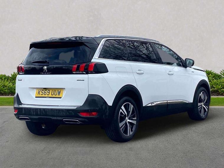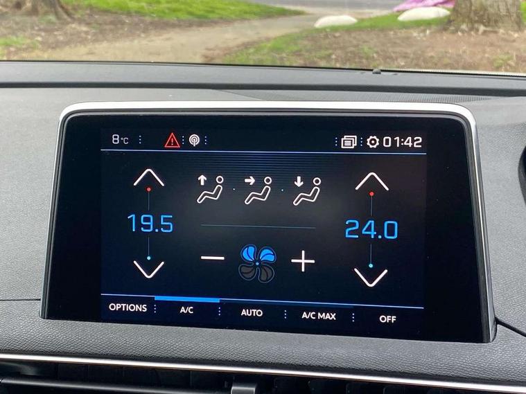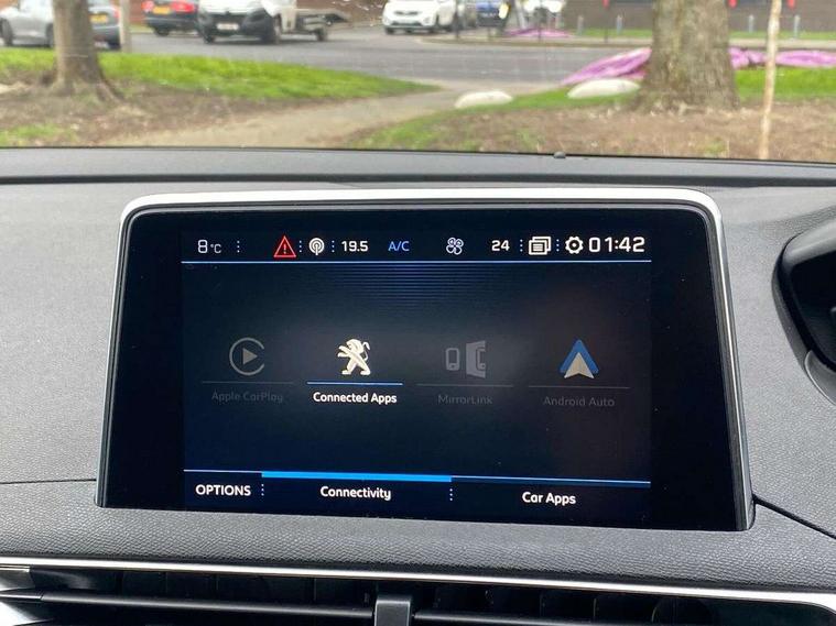 3D connected navigation + voice control, Android Auto, Auto start and stop system, Bluetooth telephone connection, Exterior temperature gauge with frost alarm, Headlight on warning buzzer, Lane departure warning system, Mirror screen with mirror link and car play, Multi function trip computer, PEUGEOT SOS and assistance, Smartphone wireless charging plate, Speed limit recognition, Sports button, Dynamic stability control, DAB Digital radio, MP3 connection, Steering wheel audio controls, USB socket, 2 X Rear number plate lights, Aluminium roof rails, Auto self levelling headlights, Automatic activation of hazard warning lights, Black front wing trim with chrome detail, Body colour door handles, Body coloured bumpers, Body coloured rear spoiler, Body protectors in black, Chrome boot sill trim strip, Chrome front fog light surround, Chrome rear bumper scuff plate, Chrome trim to lower side windows, Dark tinted rear side and tailgate windows, Door mirror mounted LED courtesy approach lights, Electric front/rear windows with one touch/auto up/down, Electrically heated door mirrors, Front windscreen wiper with magic wash cleaning system, Full LED headlights with LED fog lights with static cornering function, sports front bumper and grille, Gloss black B and C pillar and aerodynamic deflector trim, Gloss black rear cluster connecting strip, Gloss black windscreen surround, GT Line emblem in satin copper, Heated rear windscreen with integrated antenna, LED daytime running lights, LED side indicator lights integrated into door mirrors, Lion grey front bumper scuff plate, Nera black door mirrors, Power folding door mirrors with blind spot detection indicator and auto dipping function in reverse gear, Radiator grille in chrome edge trim with chequered design and black 'PEUGEOT' lettering, Rear LED Peugeot signature 'Claw Effect' lights, Rear side window blinds, Rear windscreen wiper with auto activation when reversing, Stainless steel roof arches, Twin exhaust tailpipe, Wheel arch protectors, 2 cupholders in front centre console, 2 individual folding 3rd row seats, 3 x 12V power sockets, 4 Grab handles retractable and damped, Aikinite stitching in armrest, gear lever and dashboard facia, Automatic dual-zone climate control, Blue ambient lighting for connecting zone, Blue ambient lighting to front door panels, central storage and cupholders, Blue ambient lighting to head up instrument panel, Electric power steering with reach and rake adjustable steering column, Flat folding rear seats, Flocked front door pocket interior with blue ambient lighting, Flocked glovebox interior, Fold flat front passenger seat with picnic table, Front central armrest with butterfly-wing opening and storage compartment, Front interior light with 2 reading spotlights and rear interior light with timer, Front passenger seat height adjust, Gear shift indicator, Headrests on 2nd/3rd row seats, Heating/air conditioning outlet in rear, Illuminated glovebox, Illuminated vanity mirror, Isofix child seat fittings x 3 in the second row, LED interior illumination, Map pocket on front seat backs, Mistral floor mats with Aikinite contrast stitching, Mistral full grain perforated leather steering wheel with aikinite stitch detail and satin chrome 'GT Line' emblem, Rear centre console with air vents, Rear reading lights x 2, Rear seat underfloor storage, Retractable parcel shelf, Roof lining - Mistral black, Satin chrome digital instrument panel and touchscreen trim, Satin chrome front door panel recess trim, Satin chrome gear lever, Satin chrome interior door handles, Satin chrome scorpion's tail and toggle switch trim, Seatbelt unfastened on the move audible and visual alert for front and rear seats, Stainless Steel Scuff Plates, Twin rear coat hooks, Children's pack - 5008, Driver sport pack - 5008, Safety plus pack - 5008, Visibility pack - 5008, 3 Isofix location points, ABS + EBD + EBA, Adaptive driver and front passenger airbags including passenger airbag deactivation function, Collision mitigation braking system, Electronic parking brake, ESP and ASR traction control with deactivation switch, Five 3 point rear safety belts, Front and rear curtain airbags, Front optimised safety headrests and 3 x rear retractable headrests with height adjustable, Front seatbelt unfastened audible+visual warnings, Front side airbags, Front three point retractable seatbelts height adjustable with pre tensioners and force limiters, Front ventilated disc brakes, Hill start assist, Rear disc brakes, Rear three-point retractable seatbelts (x3) with pre-tensioners and force limiters in the outer rear seats, Tyre pressure monitor, Automatic door lock/re-lock after 30 seconds, Child lock control of rear doors and windows, Remote control central locking with two plip keys, Rolling code transponder immobiliser, Thatcham cat 1 ultrasonic alarm, Brumeo fabric interior trim, Satin chrome dash trim,