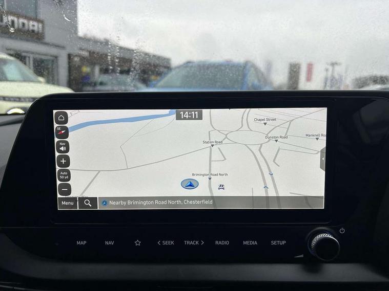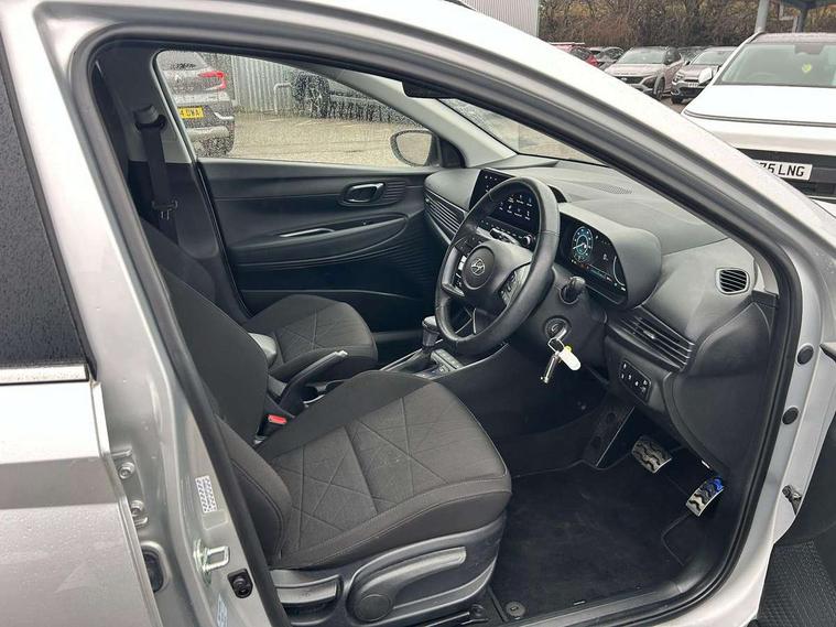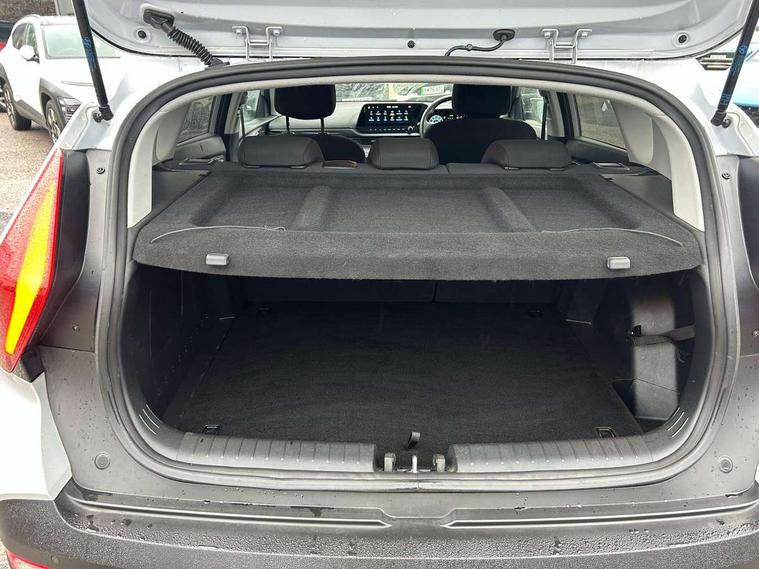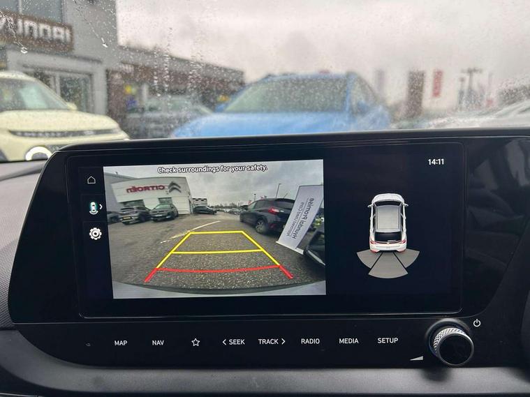 10.25" digital supervision cluster, 10.25" touchscreen centre console display satellite navigation including traffic messaging channel, map care and live services, Bluelink telematics, Bluetooth connectivity with voice recognition, Cruise control with speed limiter, Drive mode selector, Driver attention alert system, eCall emergency call system, Electric power steering, Emergency stop signalling system, Forward collision assist with pedestrian monitoring and cycle detection, Lane departure warning system with lane keep assist - LKAS, Phone connection with apple carPlay and android auto, Rear parking sensors, Rear view camera, Trip computer, Wireless charging pad, 2 front and 2 rear speakers with 2 tweeters, DAB radio, Steering wheel mounted audio/phone controls, USB and aux connection in front, Adjustable intermittent front windscreen wipers with aero wiper blade, Auto dimming rear view mirror, Automatic headlights with dusk sensor, Automatic windscreen wipers with rain sensor, Body colour bumpers, Body colour door handles, Body colour door mirrors with integrated indicators, Chrome finish window surround, Electric adjustable/heated/folding door mirrors, Electric front/rear windows with drivers one touch/anti-trap, Gloss black radiator grille, High beam assist, LED daytime running lights, LED headlamps, LED rear combination lights, Privacy glass - Rear windows and tailgate, Rear roof spoiler with integrated LED brake light, Rear side wing doors, Rear wash/wipe with intermittent wipe setting, Roof rails, Shark fin antenna, Static cornering light, Tinted windshield, 12V power outlet in front console, 3 rear seats, 60/40 split folding rear seat, Adjustable head restraints, Automatic climate control with defog system for front windscreen, Blue interior mood lighting, Cabin and luggage compartment interior lighting, Cloth seat trim, Driver's seat manual height adjustment, Front armrest/storage, Heated front seats, Heated steering wheel, Height/reach adjustable steering column, Illuminated driver/passenger vanity mirror, Interior front map reading light, Leather wrapped gear shift knob, Leather wrapped steering wheel, Luggage board, Satin chrome interior door handles, Single front passenger seat, 3 point front seatbelts with pre-tensioners, 3 point rear seatbelts, Airbags - front, front side and curtain airbags, Anti-lock braking system (ABS), Autonomous emergency braking, Childproof rear door locks, Electronic Stability Programme (ESP), Front and rear seatbelt reminder, Front passenger airbag deactivation switch, Height adjustable front seatbelts, Hill start assist control (HAC), Impact sensing auto door unlocking, Isofix child seat anchorage points - rear, Tyre pressure monitoring system, Vehicle stability management, Deadlocks, Immobiliser, Locking wheel nuts, Perimeter alarm, Remote control central locking, Speed sensitive automatic door locking, Black mono interior trim, 17" Alloy wheels, Michelin Tyre brand, Tyre repair kit,