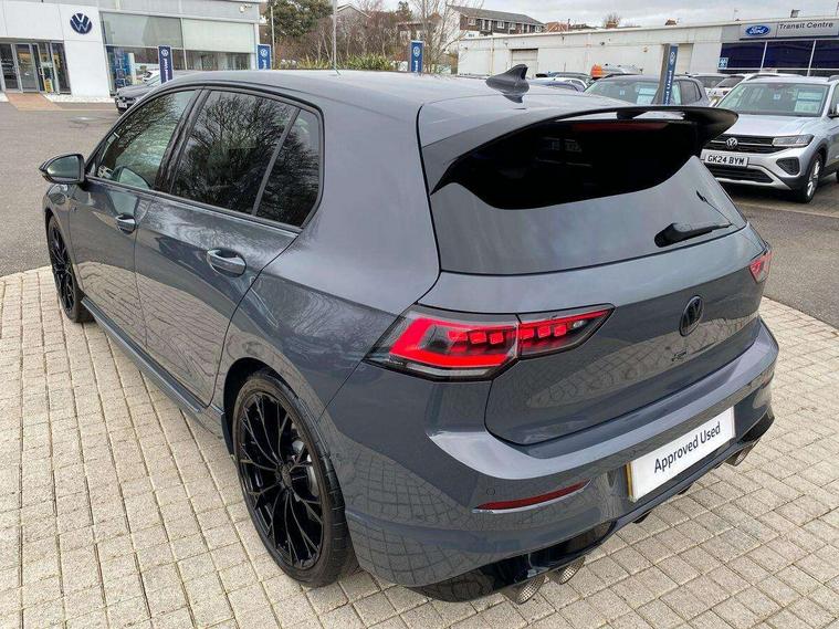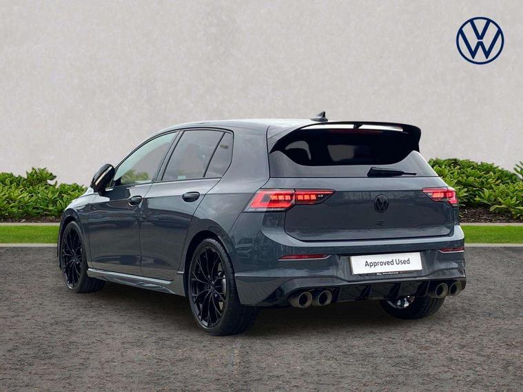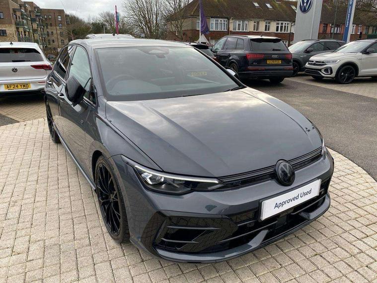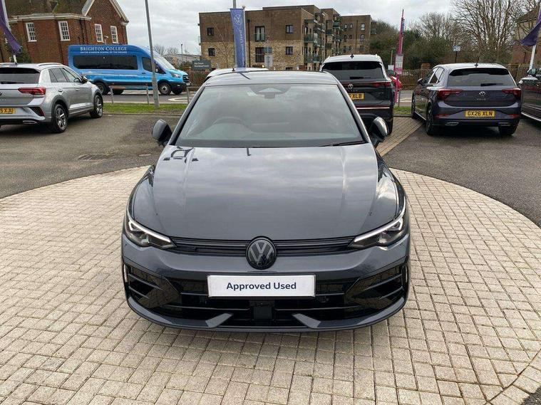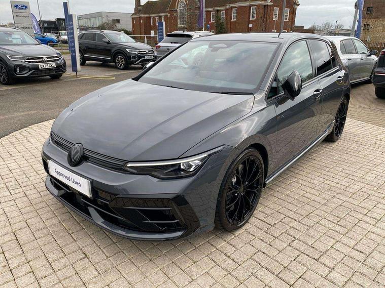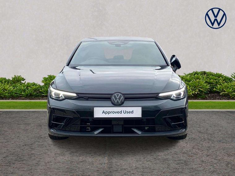 Activated carbon canister, Adaptive cruise control (ACC), Advanced driver attention and drowsiness monitor, Dynamic road sign display, E-Sim card for online connectivity, eCall emergency call system, Electronic maximum speed limit increased to 270 km/h, includes driving Modes 'drift' and 'special', larger roof spolier and GPS laptimer + G-Meter, Multi-color Digital cockpit pro, selection of different info profile possible, Multifunction front facing camera for distance control, Navigation system, Oncoming vehicle braking when turning including swerve support, Progressive steering, Side assist blind spot lane change system, rear traffic alert and exit warning system, Speed limiter, Speedo, rev counter, electronic odometer, trip, service interval display, exterior temperature and fuel gauge, Traffic jam assist, Voice enhancer and voice control, Warning signal and warning light for front and rear seatbelts not fastened, We connect plus preparation, We connect preparation, Wireless app connect, All wheel drive - 4Motion, Petrol Particulate Filter, Start-stop system with battery regeneration (recuperation - energy recovery during braking), XDS electronic differential lock for improved traction and handling, 2 USB C ports in front, 2 USB charging sockets on the centre console in the rear charging capacity upto 45W, Digital radio reception (DAB), Diversity antenna for FM reception, Gaming platform via car app, Infotainment system with 12.9" display, Mobile phone interface with inductive charging feature, 3rd brake light, Auto dimming rear view mirror, Automatic headlamp activation with Coming home and Leaving home feature, Black badge on B-pillar, Black mirror caps, Black strips on radiator grille and headlights, Body colour door handles, Darkened headlights, Darkened R Logos and VW logos in front, rear and on fender, Exterior mirrors convex on the left and aspherical on the right, Front and rear electric windows, Front fog lamps and cornering light, Heat insulating windshield made of laminated glass, Illuminated lighting animation with wake up/goodbye scenario, LED matrix headlights with ambient light V2, advanced high beam, dynamic range contol with cornering, LED rear lamp with indicator, poor weather, LED separate daytime running light, Light assist with High beam control, R name plate, Rain sensor, Rear fog light on one side and reversing lights on both sides, Rear side wing doors, Rear tinted glass 65% light absorbing from B pillar backwards, Rear windscreen washer and wiper with interval delay, Remote electrically foldable door mirrors, puddle lights and reverse activated passenger's door mirror, Welcome light with surround lighting, 12V socket in front centre console, 12V socket in luggage compartment, 3 rear head restraints, 3 seat bench in 2nd row, 30 colour ambient lighting, illuminated center console storage compartment in front, Air care climatronic 3 Zone automatic climate control with rear air conditioning control panel, Aluminium gearshift handle, Brushed stainless steel pedals, Chrome plated radiator grille inserts, air vent surrounds and light switch surrounds, Entry lights, Front + rear black carpet mats, Front centre armrest, Integrated front head restraints, ISOFIX anchors for child seats on outer rear bench seats and on front passanger seat compatible for i-Size, Luggage compartment lighting, Rear cupholder and loadthough, Single front passenger seat, Soul black instrument panel, Soul black roof lining, Split folding backrest with centre armrest and unsplit rear seat bench, Sun visors with illuminated vanity mirrors, Driver assistance pack - Golf Estate/Hatchback Auto, R styling pack - Golf, Technology park and comfort pro package - Golf Hatchback, 3 point height adj front seatbelts + pretensioners, 3 rear three point seatbelts, ABS, Autonomous emergency braking front assist with pedestrian and cyclist monitoring, Child locks on rear doors, Driver and front passenger airbag with front passenger airbag deactivation, Electronic parking brake with auto hold, ESC (Electronic Stability Control), Extended pedestrian protection measures, Front and rear black brake calipers with darkened R-logo, Hill start assist, Rear disc brakes, Two tone horn, Tyre pressure loss indicator, Volkswagen roadside assistance, Anti theft wheel bolts, Preparation for alcohol interlock, Sporty vehicle dynamics, Tool kit for tyre mobility set, Tyre mobility kit Includes 12V compressor and tyre sealant, Wheel hub cover with darkened R-logo,