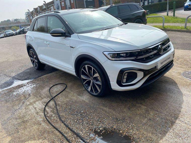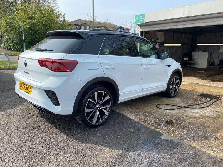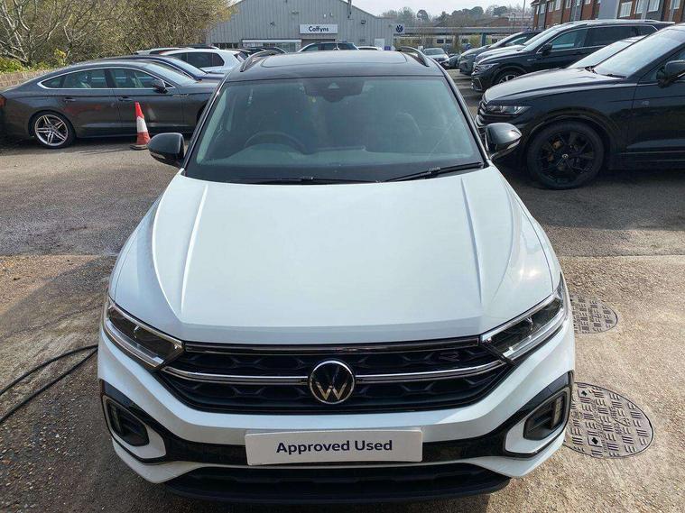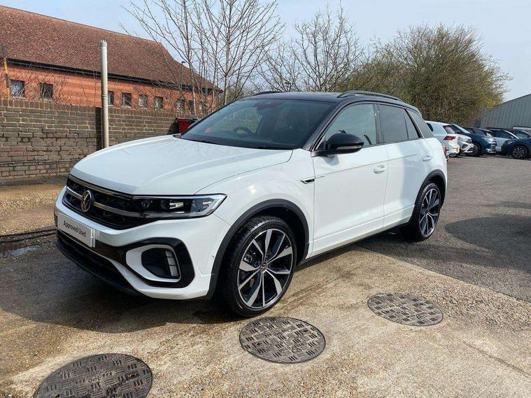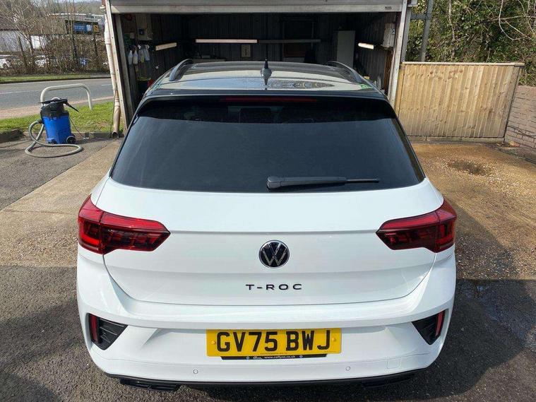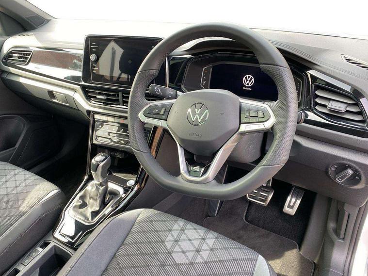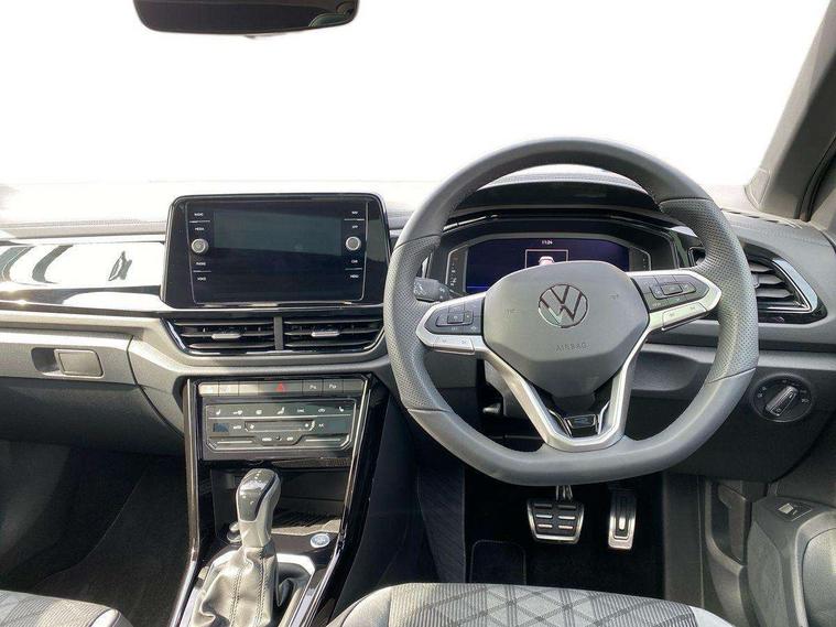 10.25" Digital cockpit pro, Advanced driver attention and drowsiness monitor, Emergency call service, Lane keeping system Lane Assist, Mobile phone interface, Modified key software - reduce switch off time for key status change to Long no motion, Online services, Park assist including front and rear parking sensors, Power assisted speed sensitive steering, Rear view camera, Service interval indicator, Tailgate/trunk lid release from outside, Think blue trainer driver tips and journey analysis, Warning sound and light for front seatbelts unfastened, Wireless app connect, Battery regeneration during braking, Rear shock absorption chassis with increased ride height, Start/stop function with battery regeneration, DAB Digital radio, Diversity antenna for FM reception, Music playback - MP3, WMA and AAC files, SD card slot, Simultaneous pairing of 2 compatible mobile devices, Title and cover art display, We Connect and We Connect Plus functionality, Advanced dynamic light assist for LED matrix headlights, Auto dimming interior rear view mirror, Automatic hazard lights activation under emergency braking, Black roof rails, Dynamic cornering light, Dynamic headlight range control with self adjusting whilst driving, Electrically adjustable and heated door mirrors, Extended roof spoiler, Exterior ambient lighting, Exterior mirrors aspherical on driver side, convex on front passenger side, External USB type C socket and charging sockets, Front windscreen wiper with intermittent wipe and 4 position delay, Heated rear window, Illuminated front grille, IQ LED matrix headlights, LED 3rd brake light, LED rear number plate lights, LED rear tail lights with dynamic turn signal, LED separate daytime running light, Light mode for poor weather, rain, fog or snow, Power windows with comfort operation and circuit breaker, Privacy glass for rear side windows and rear window, R-Line design body coloured bumpers, Rain sensor, Rear exhaust tailpipe, Rear fog light on one side and reversing lights on both sides, Rear side wing doors, Rear wash/wipe with intermittent wipe setting, Remote electrically foldable door mirrors, puddle lights and reverse activated passenger's door mirror, Tilting and sliding panoramic sunroof with rear panoramic sunroof, 12V power socket in centre console, 3 rear head restraints, 3 seat bench in 2nd row, 4 load lashing points in luggage compartment, Air care climatronic air conditoning system with active combination filter and 2-zone temperature control, Chrome plated radiator grille inserts, air vent surrounds and light switch surrounds, Door and side trim panel with leatherette insert, Drawer under drivers seat, Front + rear carpet mats, Front centre armrest, Front comfort sports seats, Front cupholders x 2, Front footwell illumination, Front reading light, Front scuff plates with R Line logo, Front seat back storage pockets, Glove compartment door with light, Instrument lighting, white adjustable panel illumination, Interior ambient lighting and surround lighting, Interior light delay, Isofix child seat preparation, Leather gearshift handle, Load-through provision with cup holder when folded down ('Unsplit rear seat bench, split folding backrest, with centre armrest), Luggage compartment lighting, Non-folding front passenger seat backrest, Single front passenger seat, Stainless steel pedals, Storage compartment in left and right luggage area, Storage compartment in rear doors, Storage compartments in driver and front passenger doors, Sunvisors with illuminated vanity mirrors, Variable boot floor, height adjustable and removable, Black design pack - T-Roc black edition plus, Easy open package with safelock - T-Roc, Sport pack with sports suspension - T-Roc, 3 point height adj front seatbelts + pretensioners, 3 point seatbelts in outer rear with ECE label, ABS, Child locks on rear doors, City emergency braking and pedestrian monitoring, Driver and front passenger airbag with front passenger airbag deactivation, Driver and front passenger safety-optimised head restraints, Drivers seatbelt reminder, Electronic parking brake, Electronic Stability Control (ESC) inc EDL (Electronic Differential Lock) and ASR (Traction Control), Front and rear passengers curtain airbag system including front side airbags, Front disc brakes, Hill start assist, Predictive pedestrian protection, Rear disc brakes, Two tone horn, Tyre pressure loss indicator, Volkswagen roadside assistance, Keyless locking and starting system keyless access with safelock, Gloss deep iron dash trim, 19" Misano black diamond turned alloy wheels with low rolling resistance and anti theft wheel bolts, Tool kit, Trims for alloy wheels, Tyre mobility kit including compressor and sealing foam,