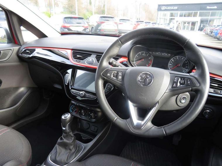 Apple car play/Android Auto, Bluetooth system, Central facia display, Cruise control + speed limiter, Digital fuel gauge with low fuel warning light, Digital water temperature gauge, Electric speed sensitive power steering, Exterior temperature gauge, Lights on audible warning, Navi 4.0 IntelliLink navigation with 7" touchscreen, traffic program, DAB , USB, Bluetooth audio streaming, Apple CarPlay/Android auto, and microphone, Rev counter, Service indicator, Speed warning indicator, Speedometer, Trip computer, White graphics on black background, Front anti roll bar, Sports suspension, Six speakers, Steering wheel mounted audio/cruise controls, Automatically dimming anti dazzle rear view mirror, Black door mirrors, Black foil on B-pillars, Black front grille logo bar, Black roof, Body colour bumpers, Body colour door handles, Chrome front grille, Dark tinted rear windows, Dipping rear view mirror, Door to door illumination, Electric adjustable/manual folding door mirrors (wide angle on driver's side), Electric headlight beam leveling, Electrically operated front windows with safety auto reverse/one touch facility, Front fog lights with black surround, Front fog lights with chrome surrounds, Griffin badges, Halogen headlights, Hazard warning lamps, Headlamp levelling, Heated rear window, Heated windscreen, High level LED centre brake light, Intermittent rear wash/wipe, Laminated windscreen, LED daytime running lights, Mineral black door mirror housings, Rain sensitive windscreen wipers, Rear fog lights, Rear wiper, Side window demist vents, Tinted windows, Two speed windscreen wipers with variable intermittent wipe, Welcome lighting, Windscreen demist vents, 12V electrical accessory socket in front, 3 spoke steering wheel, Air conditioning, Anti submarining ramps in all seats, Centre console with cupholders, Chrome gear knob, Chrome interior door handles, Comfort front seats, Driver's and front passenger's sunvisors, Driver's and front passenger's tiltable assist handles, Driver's and passenger's vanity mirrors with flip up cover, Driver's vanity mirror, Four adjustable facia vents, Front courtesy lights, Front door pockets, Front map reading lights, Front seat belt pre-tensioners with load limiters, Glovebox with lid, Grab handles, Griffin branded floor mats, Heated front seats, Height adjustable driver's seat, Height adjustable front headrests, Height adjustable rear head restraints with adjustable backrest, Illuminated luggage compartment, Instrument panel light dimmer, Interior tailgate handles, Isofix child seat mounting points on outer rear seats, Lace cloth trim, Load restraining lashing points, Luggage compartment cover, Multi function steering wheel, One piece folding rear seat, Pollen filter, Reach + rake adjustable steering column, Rear courtesy lights, Rear door pockets, Rear reading lights, Reclining front seats, Sports front seats, Storage box on driver's side lower facia, Stowage facility for luggage compartment cover behind rear seats, Twin gas assisted tailgate struts, Two rear tiltable passenger assist handles, Sight and light Pack - Corsa, Winter pack - Corsa, Anti-lock braking system (ABS), Brake assist function, Electronic brake force distribution, Electronic Stability Programme, Energy absorbing steering column, Front and rear seatbelt reminder, Front and rear seatbelt unfastened audible warning and warning light, Front seatbelt force limiters, Gas pressure dampers, Height adjustable front seatbelts, Hill start assist, Manual passenger airbag deactivation function, Pedal release system, Rear child proof door locks, Reinforced passenger safety cell, Side impact protection beams, Six airbags - Driver's dual stage airbag/front passenger's dual stage airbag/front seat side impact airbags/full size curtain airbags, Three 3 point rear seatbelts, Three inertia reel lap/diagonal seatbelts, Traction control, Tyre pressure monitoring system, Electronically protected audio, Engine Immobiliser & Deadlocks, Key left in ignition audible warning, Locking wheel bolts, Remote control central locking, Visible vehicle identification number, Rhutenium facia with chrome effect inserts, 16" 4 twin spoke black alloy wheels, Tyre inflation kit,