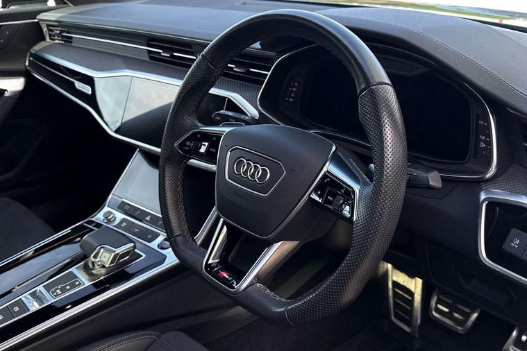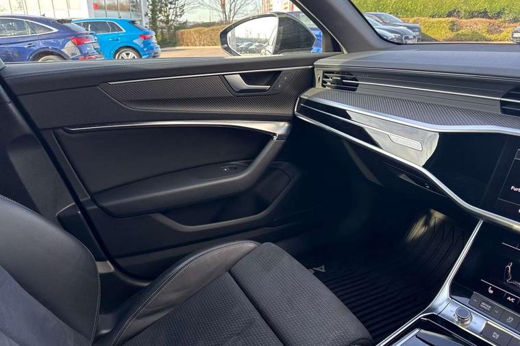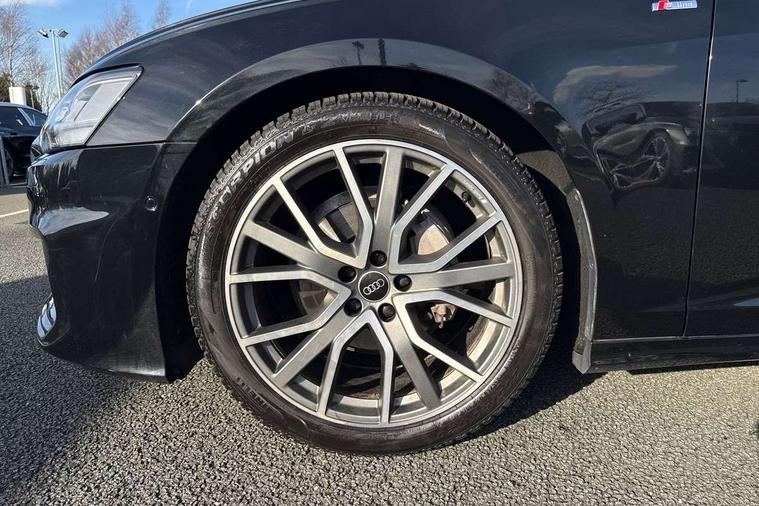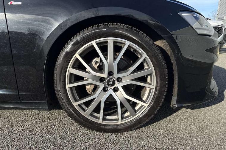 7" high resolution colour driver information display system, Audi connect safety and service (e-call), Audi connect with Amazon Alexa Integration, Audi drive select, Audi parking system plus - acoustic and visual park assist system for front and rear, Automatic start/stop system with coasting functionality, Bluetooth interface, Electric boot lid release, Lane departure warning system, Progressive steering, Rear view camera, Service interval indicator, Smartphone interface includes wireless Apple carplay/Android Auto, Voice control system, 12V Mild hybrid, 24 litre AdBlue tank, Diesel particulate filter, Quattro on demand, Sports suspension, Audi front music interface, Audi sound system, Auxiliary input socket, DAB Digital radio, USB connection, All weather LED headlights, Electric front/rear windows, Frameless auto dimming interior rear view mirror, Front intermittent wipers, Gloss black highlights on the exterior area of the Audi Single frame, Gloss black highlights on the front and rear bumpers, Gloss black highlights on the radiator grille, Gloss black highlights on the side windows trim strips, Headlight washers, Heat insulating darkened glass in side and rear windows, Heat insulating glass in windshield, LED rear lights, LED signature front daytime running light, LED third brake light, Matt black rear diffuser with diffuser strip and tailpipes in chrome, Matt black side air intake grille with inlay in matt aluminium, Privacy glass, Rain and light sensors, Rear boot, Rear side wing doors, 2 zone deluxe electronic climate control, 4 way electric lumbar support for driver and front passenger, 40/20/40 split folding 3 rear seat bench in 3 parts with rear centre armrest, Black cloth headlining, Black front and rear carpet floor mat, Black steering wheel insert, Electrically adjustable front seats with driver memory, Front centre armrest, Front head restraints, Heated front seats, Height/reach adjust steering wheel, Illuminated door sill trims with S logo, Illuminated sun visors with vanity mirrors, ISOFIX child seat mounting and Top Tether with front passenger airbag deactivation, Leather gear knob, Rear headrests, Single front passenger seat, Stainless steel pedals and foot rest, LED Interior Ambient Lighting Pack - A6, Non smoking pack - A6, Technology pack - A6, 3 point seatbelts on all seats, Airbags - Front side, front and rear including head, Audi pre-sense front, Black seatbelts, EBD - Electronic brakeforce distribution, Electromechanical parking brake, Electronic Stability Control (ESC) including ABS, ASR and EDL, Extended pedestrian protection measures, Manual child proof rear door locks, Seatbelt monitoring, Tyre pressure warning light, Warning triangle and first aid kit, Anti theft alarm with tow away protection, Anti-theft wheel bolts and wheel loosening detection, Immobiliser, Keyless Go, Remote central locking, Carbon twill inlays, 20" 5 V spoke star design Audi sport cast aluminium alloy wheels in matt titanium look,