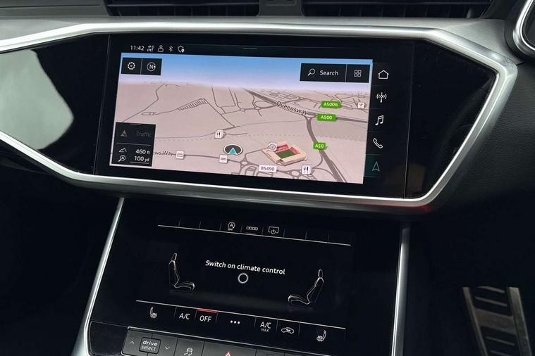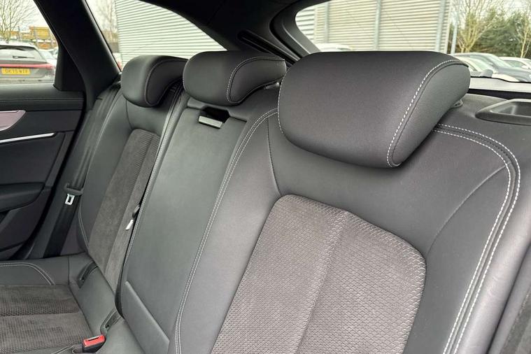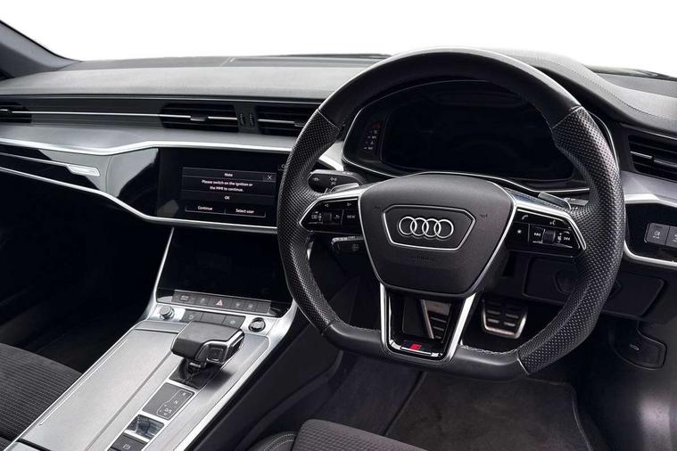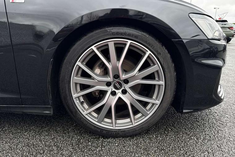 7" high resolution colour driver information display system, Audi connect safety and service (e-call), Audi drive select, Audi parking system plus - acoustic and visual park assist system for front and rear, Audi smartphone interface, Automatic start/stop system with coasting functionality, Bluetooth interface, Lane departure warning system, MMI navigation with MMI touch + twin touch screens 8.8" and 8.6" with haptic and acoustic feedback, Power operated tailgate, Progressive steering, Rear view camera, Service interval indicator, Voice control system, 12V Mild hybrid, 24 litre AdBlue tank, Diesel particulate filter, Sports suspension, Audi music interface, Audi sound system, Auxiliary input socket, DAB Digital radio, USB connection, Black roof rails, Electric front/rear windows, Frameless auto dimming interior rear view mirror, Gloss black exterior mirror housings, Gloss black highlights on the exterior area of the Audi Single frame, Gloss black highlights on the front and rear bumpers, Gloss black highlights on the radiator grille, Gloss black highlights on the side windows trim strips, Headlight washers, Heat insulating darkened glass in side and rear windows, Heat insulating glass in windshield, LED rear lights, LED signature front daytime running light, Matrix LED headlights with dynamic rear indicators, Matt black rear diffuser with diffuser strip and tailpipes in chrome, Matt black side air intake grille with inlay in matt aluminium, Privacy glass, Rain and light sensors, Rear roof spoiler, Signature rear LED light design, 2 zone deluxe electronic climate control, 4 way electric lumbar support for driver and front passenger, 40/20/40 split folding 3 rear seat bench in 3 parts with rear centre armrest, Black cloth headlining, Electrically adjustable front seats with driver memory, Front centre armrest, Front head restraints, Front/rear floor mats, Heated front seats, Height/reach adjust steering wheel, Illuminated door sill trims with S logo, Illuminated sun visors with vanity mirrors, ISOFIX child seat mounting and Top Tether with front passenger airbag deactivation, Leather gear knob, Luggage compartment system, Rear headrests, Stainless steel pedals and foot rest, Tool kit and car jack, LED Interior Ambient Lighting Pack - A6, Non smoking pack - A6, 3 point seatbelts on all seats, Airbags - Front side, front and rear including head, Audi pre-sense front, Black seatbelts, EBD - Electronic brakeforce distribution, Electromechanical parking brake, Electronic Stability Control (ESC) including ABS, ASR and EDL, Extended pedestrian protection measures, Seatbelt monitoring, Tyre pressure warning light, Warning triangle and first aid kit, Anti theft alarm with tow away protection, Anti-theft wheel bolts and wheel loosening detection, Immobiliser, Keyless Go, Remote central locking, Matt brushed aluminium dark inlays, 20" 5 V spoke star design Audi sport cast aluminium alloy wheels in matt titanium look,