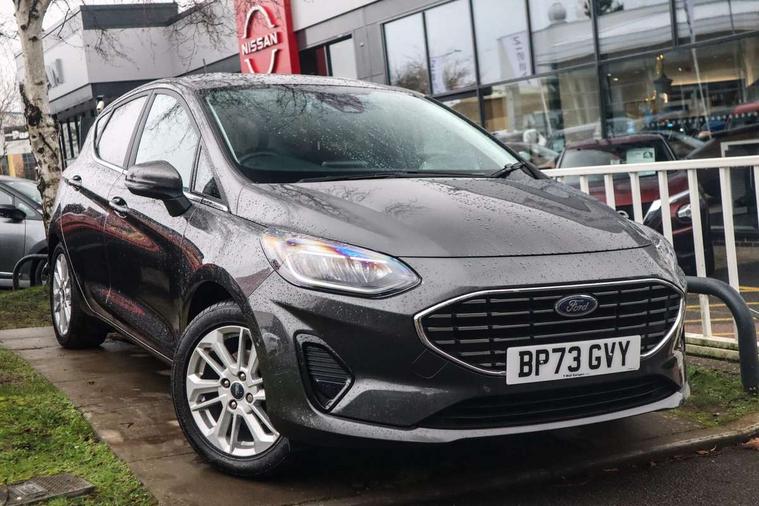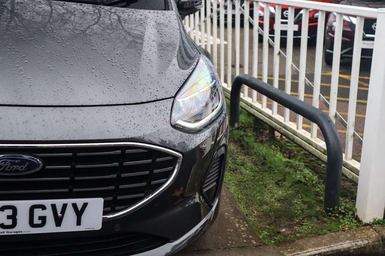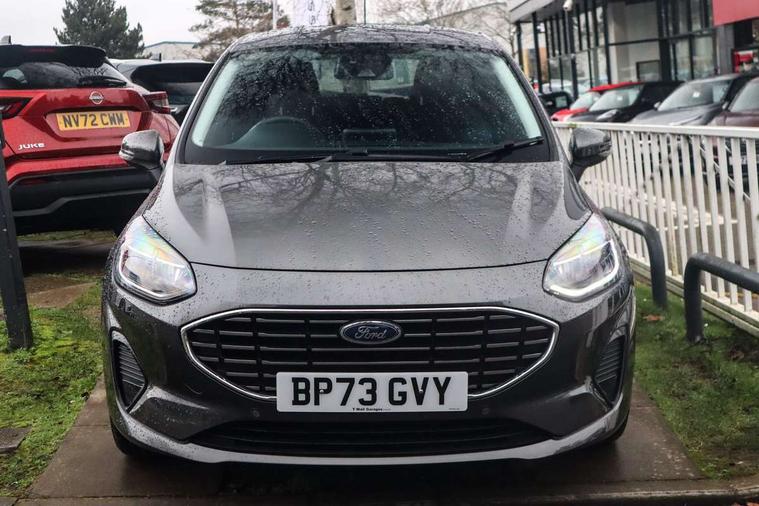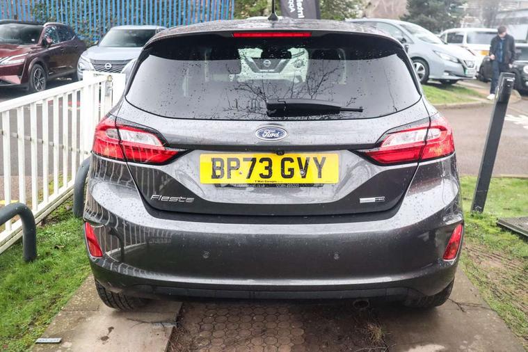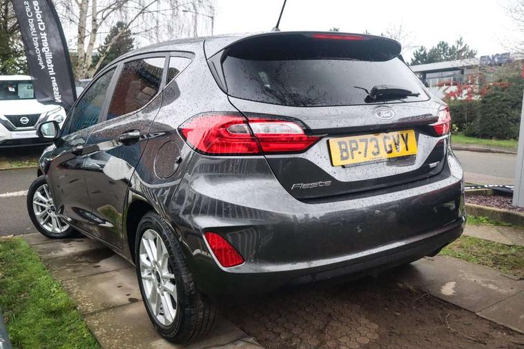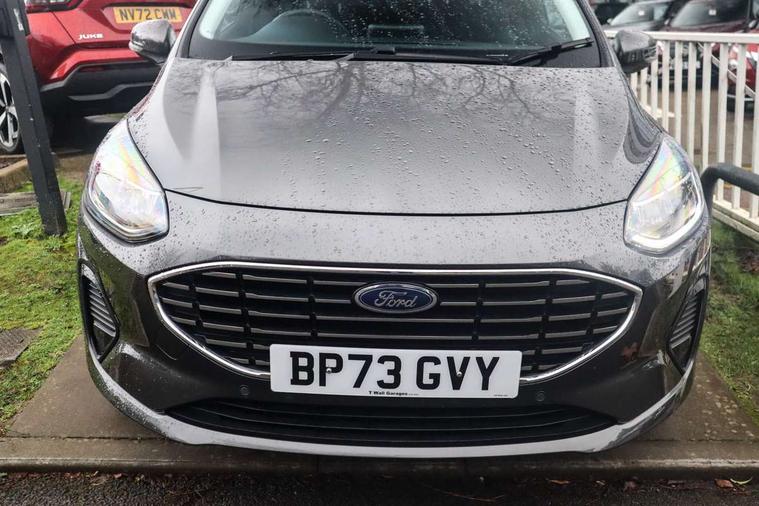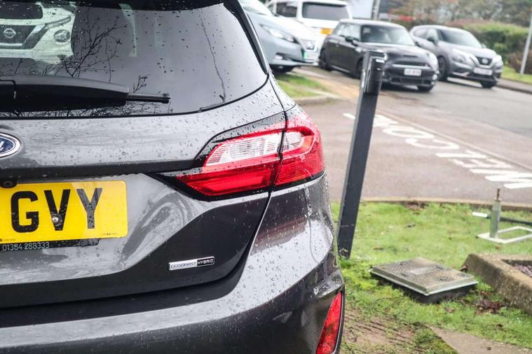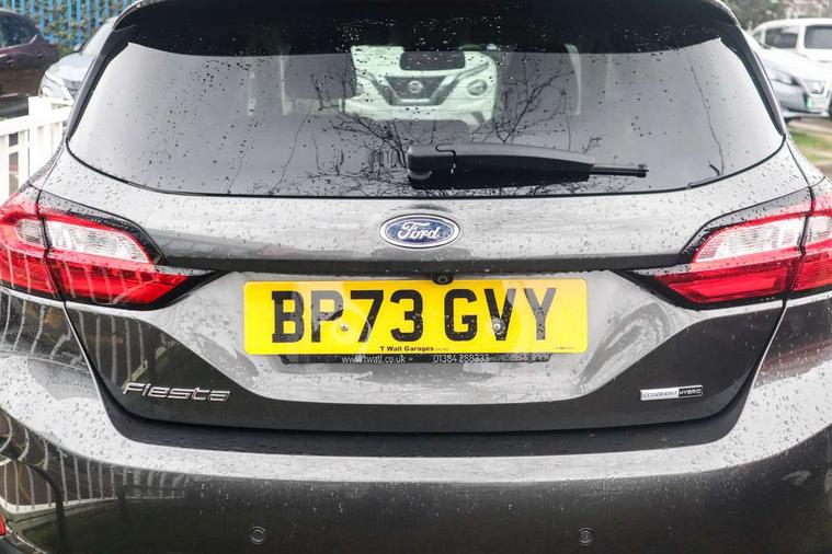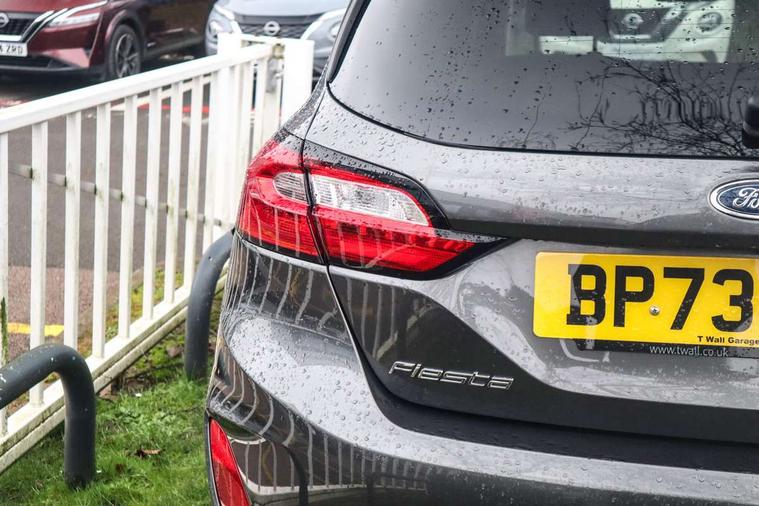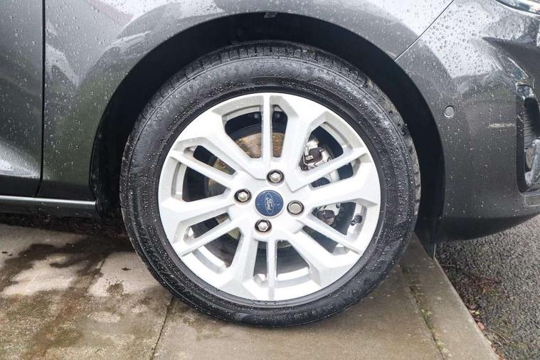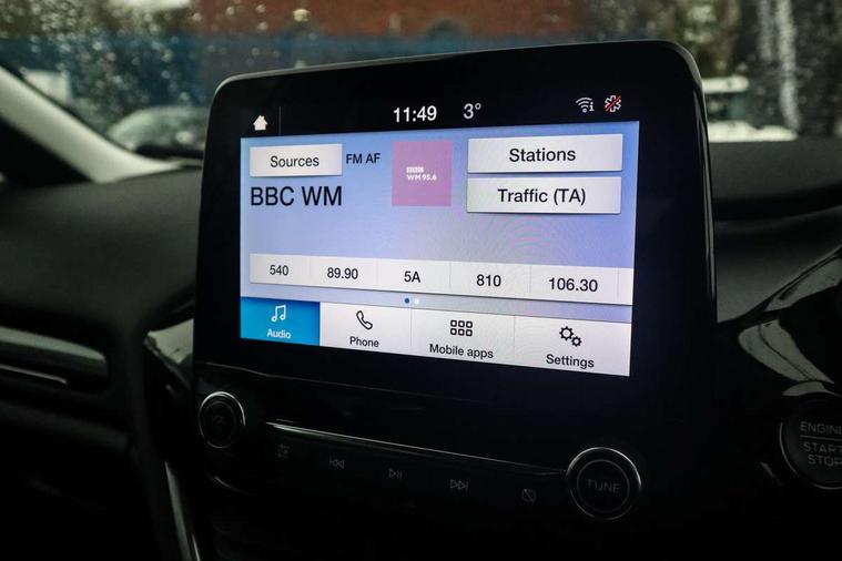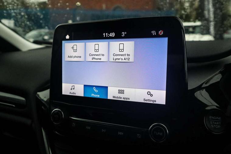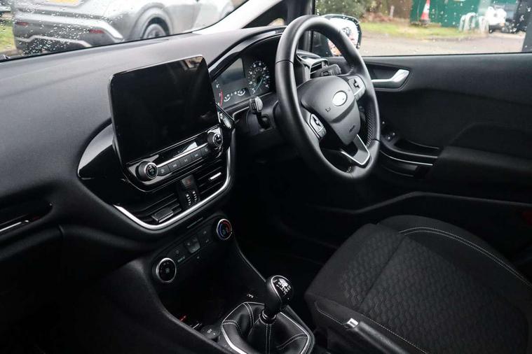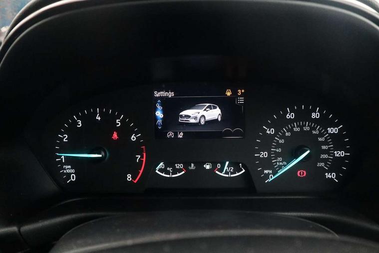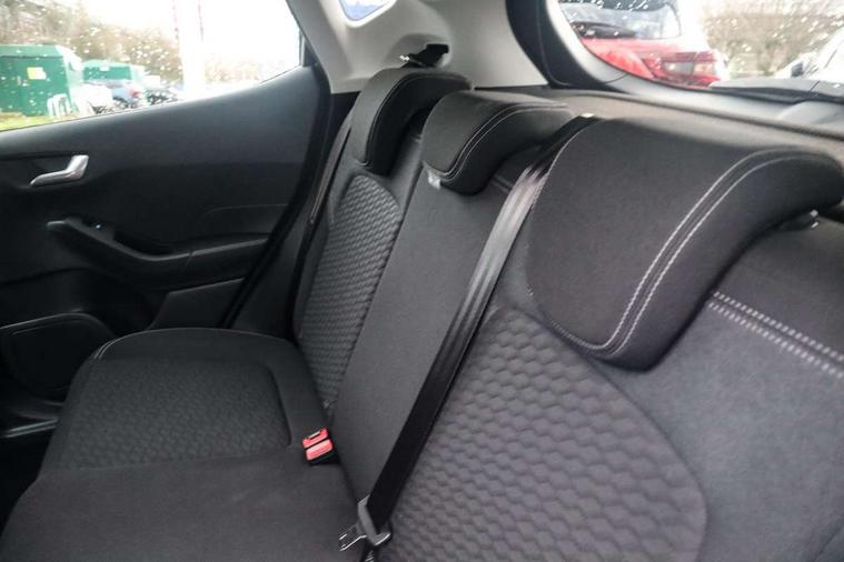 Bluetooth system, Electric power steering, Ford easy fuel, Ford SYNC 3 Navigation system incl 8" touchscreen, 7 speakers, FordPass connect, Apple carplay, android auto, voice control and emergency assistance, Rear parking distance sensors, Selectable drive modes (Normal, Sport, Track), Trip computer, 2 USB ports, Auxiliary input socket, DAB Digital radio, Steering wheel mounted controls, Body colour bumpers, Body colour door handles, Body colour rear spoiler, Body coloured electrically operated and heated door mirrors with side indicators, Chrome beltline trim, Chrome front grille, Chrome lower window surround, Cornering front fog lights, Electric front windows/one touch facility, Electric rear windows, Quickclear heated windscreen, Rain sensing wipers and auto dimming rear view mirror, Rear privacy glass, Rear wiper, 3 spoke leather trimmed steering wheel with audio control, 60/40 split folding rear seat, Adjustable head restraints, Boot carpet, Centre console with opening armrest, 2x cupholders, 12v and USB, Chrome inner door handles, Cloth upholstery, Footwell illumination, Front floor mats in velour, Front map reading lights, Front seat and rear pockets, Illuminated glovebox, Leather gaiter, Load area light, Luxury woven headliner, Manual 2 way passenger seat adjust, Manual 4-way driver seat adjust, Manual air conditioning, Overhead console with sunglasses holder, Pollen filter, Rake/reach adjustable steering wheel, Sensico wrapped steering wheel, NCAP Pack - Fiesta, 3 point seatbelts on all rear seats, ABS+EBA, Curtain airbags, Driver and passenger airbags, Drivers knee airbag, Electronic stability control with hill start assist, Front passenger airbag deactivation, Front side airbags, Seatbelt warning, Two tone horn, Tyre pressure monitoring system, Keyless start with 'Ford Power' starter button, MyKey system, Remote central locking & engine immobiliser, Thatcham Cat.1 alarm, 16" 10 spoke alloy wheels,