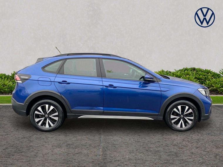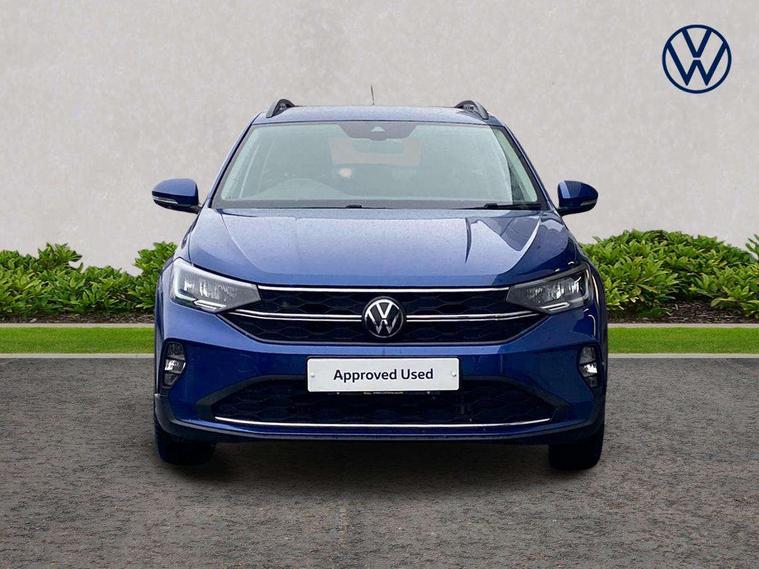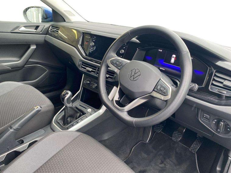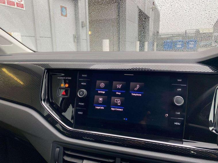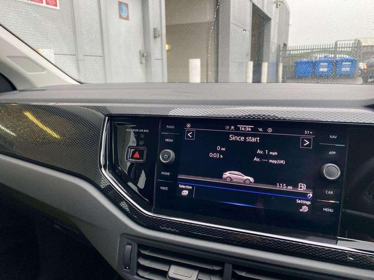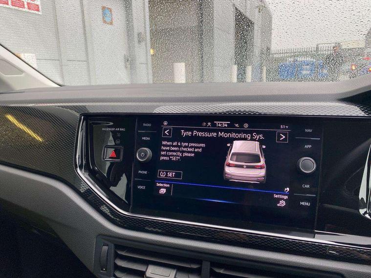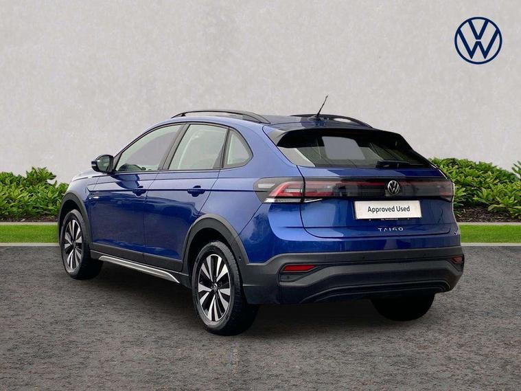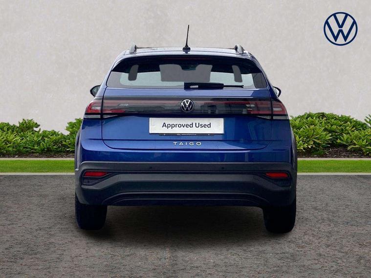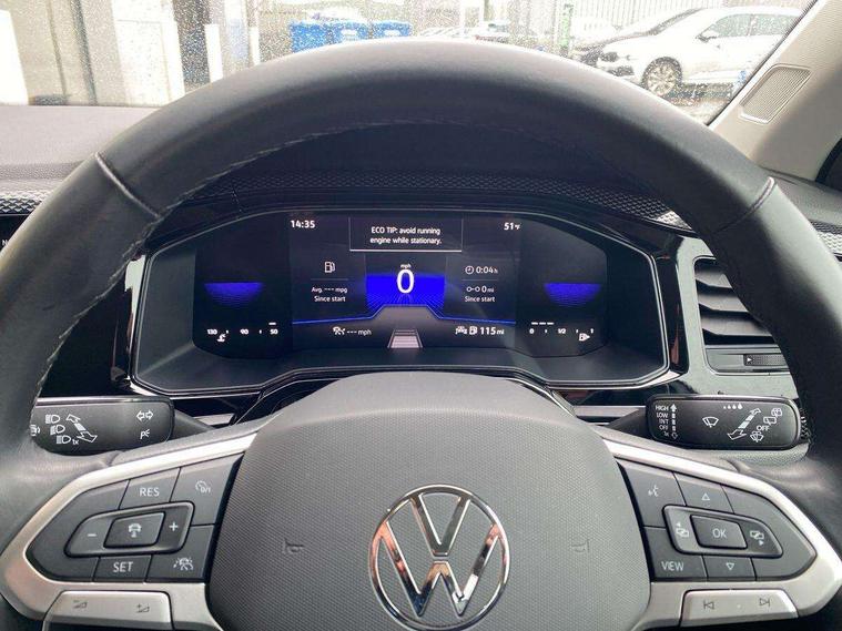 Driver alert system, e-Call (emergency call), Power Steering, Travel assist including emergency assist, Washer fluid level indicator, Wireless Charging including Bluetooth, Start-stop system with battery regeneration (recuperation - energy recovery during braking), WeConnect plus, Ambient lighting with logo projection, Aspherical driver's exterior mirror, Auto headlights, Body coloured bumpers, Body coloured exterior mirror housings and door handles, Electric windows, External USB type C socket and charging sockets, Front fog lamps with cornering function, Headlight range control, Heat insulating glass windscreen, LED headlamps, LED rear combination lamp, LED third brake light, Left convex exterior mirror, Power folding adjustable/heated exterior mirrors and front passenger exterior mirror lowering function, Rear fog light on one side, reversing light on both sides, Rear side wing doors, Rear wash/wipe with intermittent wipe setting, 'Slash/ Austin' Cloth upholstery, 12V socket in centre console, 2 front reading lights, 3 rear head restraints, 3 seat bench in 2nd row, Black carpets, Child seat anchor for child seat system i-Size, 2x top tether and child seat anchor in front on front passenger side, Door and side trim panels in titan black, Driver and front passenger seat height adjustment, Front centre armrest, Handbrake lever handle in leather, Height and reach adjustable steering wheel, Leather trimmed gear knob, Leather wrapped multifunction steering wheel, Luggage compartment floor, Luggage compartment light, Lumbar support for driver's and front passengers seat, Seat covers in titanium black, Single front passenger seat, Split folding backrest with centre armrest and unsplit rear seat bench, Storage compartment under front seats, Sun visors with illuminated vanity mirrors, Chrome Package - Taigo, Drivers assistance pack - Taigo, Light and Sight pack including High beam assist - Taigo, 2 x 3-point seatbelts/outer rear seats with ECE label, 3-point seat belts in front with pretensioner and height adjustment, 3-point seatbelt for centre rear seat, Driver and front passenger airbags with front passenger airbag de-activation, front side and curtain airbags, Driver and front passenger safety-optimised head restraints, Electronic stability control, Extended and predictive pedestrian/ cyclist protection, Front and rear disc brakes, Front curtain and side airbags with center airbag, Hill start assist, Manual rear child locks, Single tone horn, Tyre pressure loss indicator, Anti-theft alarm system with interior monitoring, backup horn, and towing protection, Anti-theft wheel bolts, Lava stone black gloss/matt decorative inserts in dash and front door panels, Low rolling resistance tyres,