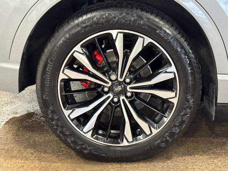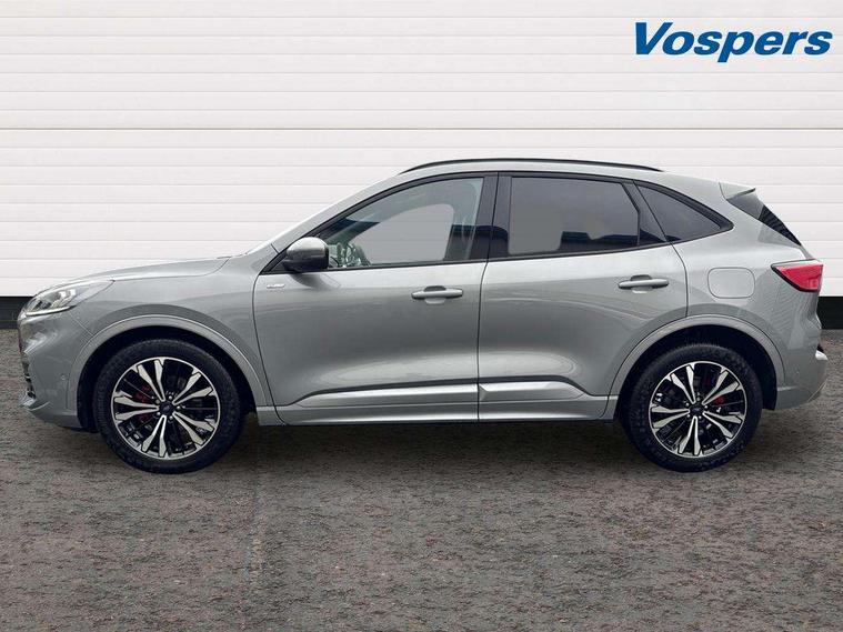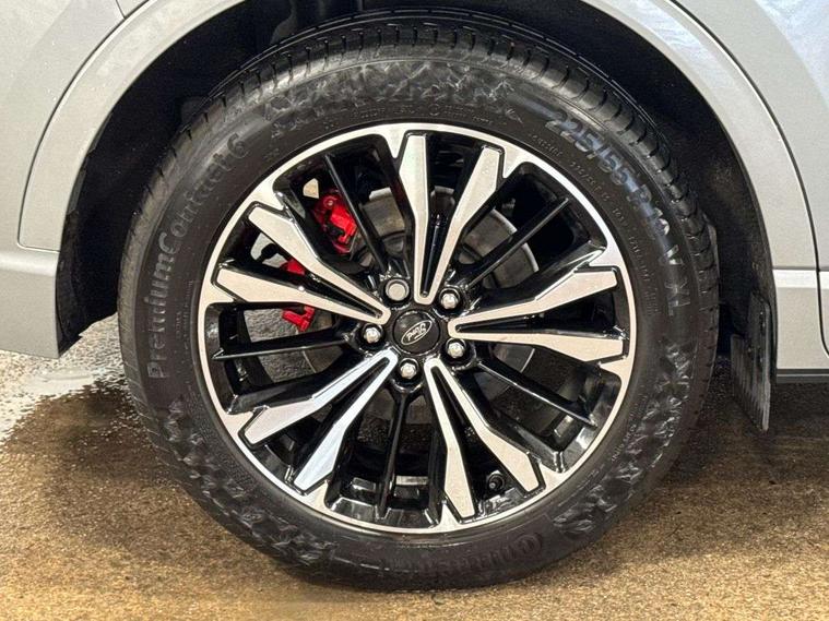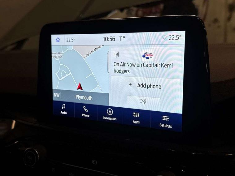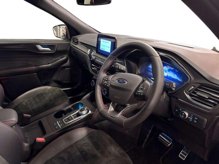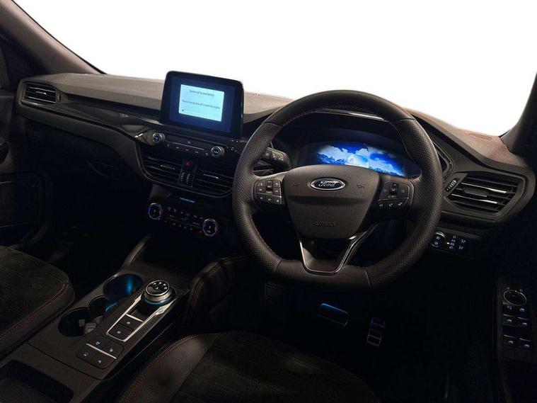 12.3" digital colour instrument cluster, Ford easy fuel, Ford SYNC 3 with 8" TFT LCD touchscreen, App Link, andriod auto/apple carPlay, emergency assistance and navigation with Ford pass connect, Front and rear parking sensors, Hands free power tailgate, Lane keeping aid with lane departure warning, Power assist steering, Rear view camera, Selectable drive modes, Service interval indicator, Sports suspension, Twist beam rear suspension, B&O premium audio system with 10 speakers and subwoofer, 2 USB ports, DAB radio/CD, Auto headlamps with high and low beam, Black roof rails, Day/night rear view mirror, Front LED fog lamps, Large rear spoiler, LED daytime running lights, LED rear lights, Power folding heated door mirrors with puddle lights, Power front/rear windows with global close, Power opening panoramic roof, Privacy glass, Quickclear heated windscreen, Rear side wing doors, Rear wiper, ST Line body styling kit with unique front and rear fascia and bumper, rear painted diffuser, front painted skid plates, dark mesh upper grille, ST Line front scuff plates, Third brake light, Twin exhausts, 10 way power adjustable drivers seat, 2nd row sliding seats with 60:40 split, 8 way manual passenger seat including lumbar support and height adjust, Alloy pedals, Centre console with electronic parking brake, Dark headlining and pillars, Electronic automatic temperature control (EATC), Flat bottomed leather steering wheel in sensico with red stitching, Front and rear head restraints, Heated passenger and driver seats, Heated rear seats, Heated steering wheel, Partial premium touch sensico leather upholstery with black cloth inserts and red stitching, Rear charging point, Single front passenger seat, Sports seats, ST Line front and rear floor mats, 3x3 point rear seatbelts, Airbags - front driver/passenger, front and rear curtain, Drivers knee airbag, Electronic stability control (ESC) and ABS, Ford MyKey Gen 2 safety system, Manual child proof rear door locks, Post collision braking, Pre collision assist with autonomous emergency braking, Rear seat Occupancy alert, Red brake calipers, Tyre pressure monitoring system, Engine immobiliser, Keyless entry and Ford power start button (Keyless start), Locking wheel nuts, Remote powered central double locking doors, Thatcham category 1 alarm,