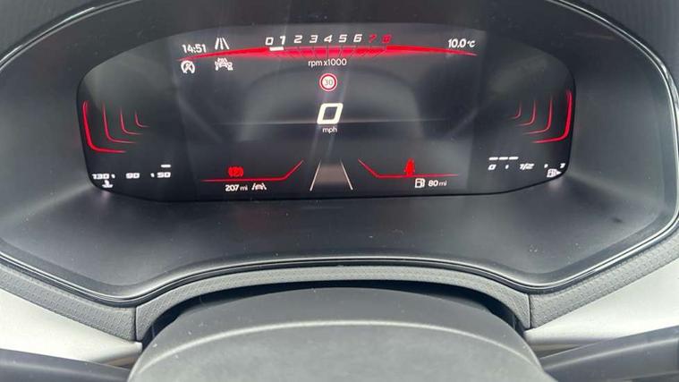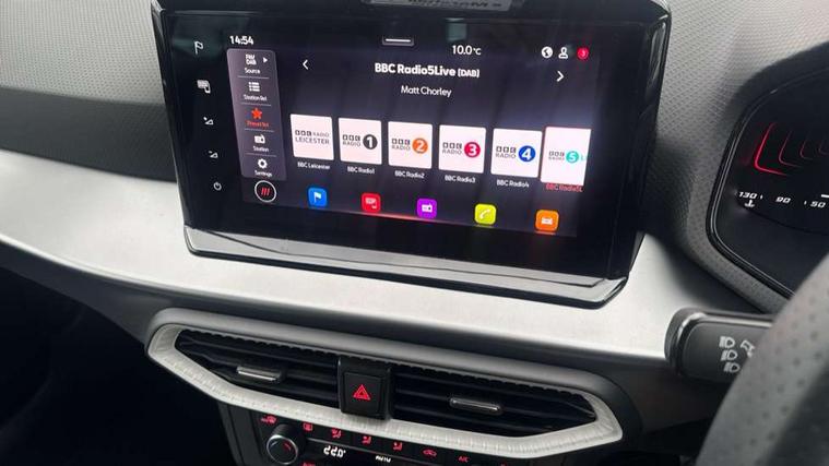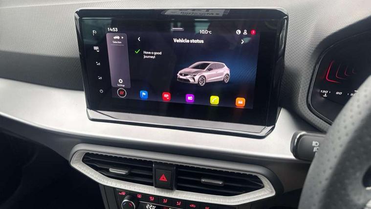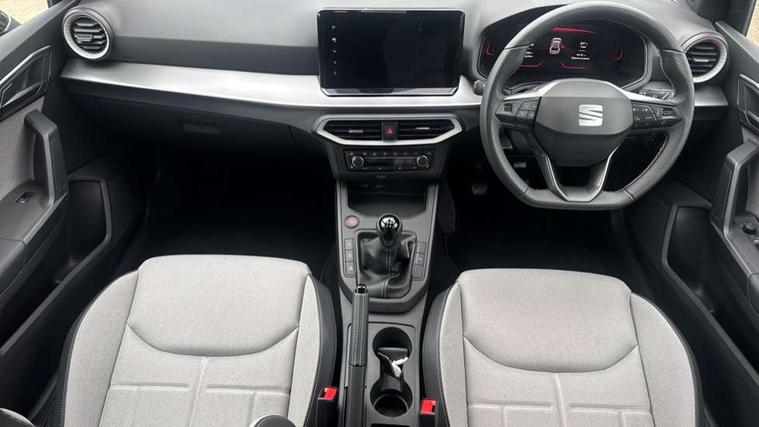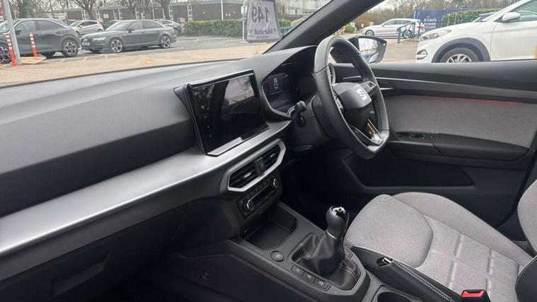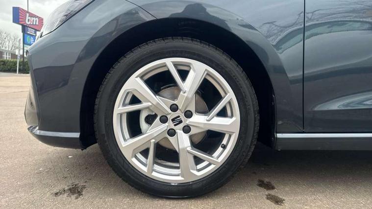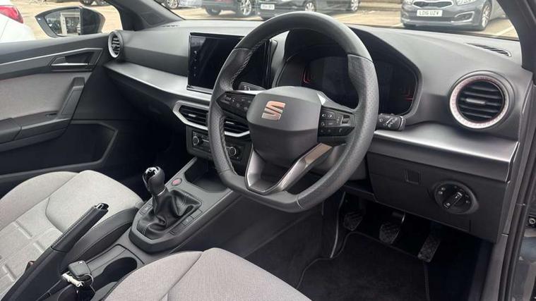 8" Digital cockpit, 9.2" touchscreen navigation system with type C USB socket, Voice control and DAB/AM/FM radio, Bluetooth audio streaming with handsfree system, Cruise control and speed limiter, E-call, Front parking sensors, Full Link Smartphone integration with Mirror Link, Apple Car Play, Google Android Auto with USB Type C cable for Apple and Android devices, PAS, Rear view camera, SEAT Drive profile - Four different models normal-sport-eco-individual, steering response, throttle response, Start/stop system, Sport suspension, Body colour mirror caps, Body coloured bumpers, Body coloured door handles, Dark tinted rear windows, Electric front and rear windows, Electrically adjustable, heated, folding exterior mirrors, FR styled rear diffuser, Front foglights with cornering functionality, Interior auto dimming rear view mirror, LED 3rd brake light, LED daytime running lights, LED license plate light, LED taillights, Rear fog lights, Rear side wing doors, Rear wash/wipe, SEAT Design Full LED automatic headlamps with signature dynamic headlight range control and coming and leaving home feature, 3 seat bench in 2nd row, 60/40 split and folding rear seats, Black headlining and chrome detailing, Cloth upholstery, Dual zone climate control with combination filter, Front integrated headrests, Front reading lights, Heated front seats, Height adjustable front seats, Height adjustable rear headrests, Interior ambient lighting in footwell, Isofix, Nappa leather multifunction flat bottomed sports steering wheel, Red coloured interior air vents with ambient lighting, Single front passenger seat, Sports bucket seats, Storage pockets on back of front seats, Sunvisors with mirrors and card holder on drivers side, Safe and Driving pack (S) - Ibiza, ABS, Child locks on rear doors, Driver and passenger airbags, Front driver and passenger side airbags with curtain airbag and front passenger airbag deactivation, Hill hold control, Three point seat belts on all rear seats, Tyre pressure monitoring system, Anti-theft alarm with interior monitoring, backup horn, and towing protection, KESSY Keyless entry and go with Safelock, Locking wheel bolts, 17" Dynamic alloy wheels in Nuclear grey,