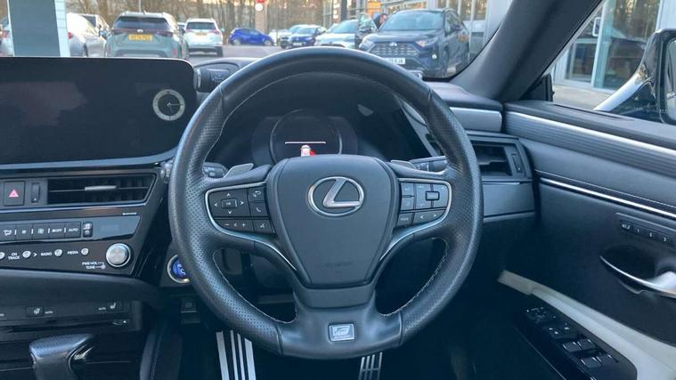 5 Driving modes EV/Normal/Eco/Sport/Sport+, 8" TFT information screen with sliding speedometer, Analogue clock with LED illumination, Apple car play/Android Auto, Auto glide control Lexus first - AGC, Blind spot monitoring (BSM) with Rear cross traffic alert and auto brake (RCTAB), Drive mode select controller, Dynamic radar cruise control, E-call, EPS with speed sensitive steering, Intelligent parking sensors, Lane change flasher function, Lane tracking assist - LTA, Lexus link connected services, Lexus navigation with 8" multi-information screen, Pre-collision system (PCS), Push button start, Reversing camera, Road sign assist - RSA, Vehicle Stability Control - VSC and drive mode controls on Instrument brinicle, F SPORT - Adaptive variable suspension - AVS, Lateral damping system, Performance dampers, VDIM, 10 speaker pioneer audio with single CD, DAB, aux, shark fin antenna + Bluetooth system, Multimedia system with remote touch pad, 2 eye LED headlights with auto high beam, Acoustic front windscreen, Aluminium front scuff plates with Lexus logo, Aluminium rear scuff plates, Auto dimming interior rear view mirror, Auto fold, reverse tilt, auto dimming with memory wide angle door mirrors, Auto headlight levelling, Auto headlights, Cornering light, F Sport badging, F SPORT exterior styling, F Sport front and rear bumper, F SPORT logo on the front wing, Follow me home headlights, Front and rear one-touch automatic power windows equipped with a jam protection, Front grille, Front windscreen de-icer, Green UV glass with water repellent coating on front side windows, Headlight cleaners, LED daytime running lights, LED rear lights, Pop up hood, Privacy glass, Rain sensing windscreen wipers, Rear spoiler, Sunroof, Water repellent glass on front door windows, 12V socket in front and rear, 2 cup holders in the front and rear centre console, 2 USB ports for charging in rear of centre console, 2 USB ports in front centre console, 2 x fixed shopping bag hooks in boot, 2 zone climate control with climate concierge and nanoe ion generator, 3 spoke leather steering wheel with power adjust, 4 x tie down hooks in the boot, 8 way Electrically adjustable front seats including headrest with heater, Active sound control, Aluminium sport accelerator pedal, brake and foot rest, Card holder installed in driver and passengers sun visors, Driver seat memory function, Easy access system with seat slide + tilt + telescopic, F SPORT seats, F Sport steering wheel with F Sport perforated leather, Fixed rear seat with trunk through, Front and rear door pockets, Front and rear head restraints, Front centre armrest with storage, Heated, power adjust driver and passengers seats with 2 way lumbar support, Luggage storage tray under deck board to right side, Map pockets on front seats, Paddle shift controls, Perforated leather shift knob, Rear armrest with 2 cup holders and storage, Self charging hybrid, Tahara leather upholstery, Textile carpet mats, Through load facility, 10 airbags - front, side, knee, front and rear curtain airbag, 2 x Isofix child rear seat restraints, 3 point front seat belts, Active Traction Control (TRC), Adjustable seat belt anchor points, Anti-lock braking system (ABS), Electronic parking brake, ELR (Emergency locking retractor), Front and rear outer seat belt pre-tensioners, Front passenger's airbag cut off device, HAC (Hill start assist control) with brake hold, Seat belt force limiter, Sway warning system, Three 3 point rear seatbelts, Tyre pressure monitoring system, Alarm, Immobiliser, Locking wheel nuts, Smart entry + Smart start, Speed sensitive auto door locking, Two motion door lock with double lock, VIN Window etching, Alloy instrument panel and door inserts, Handori aluminium inlay, 18" Alloy wheels with F SPORT Design, Tyre repair kit,
