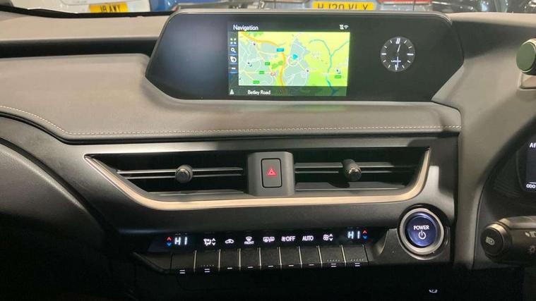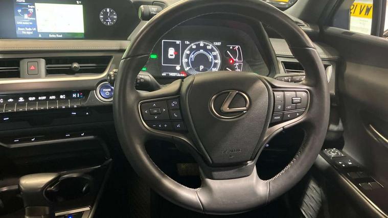 4 driving modes EV/Eco/Normal/Sport, 7" Lexus media display, 7" TFT instrument cluster, Analogue clock with GPS function, Apple car play/Android Auto, Compatible mobile phone bluetooth with audio streaming, E-call, Electric power steering (EPS) with speed sensitive features, Lane change flasher function, Lexus link connected services, Lexus safety systems + includes dynamic radar cruise control, pre collision system day and night, lane tracing assist, road sign assist, Push button start, Remote touch interface, Trip computer, Vehicle Dynamics Integrated Management (VDIM), Vehicle Stability Control (VSC), 2 front USB and 2 rear USB charging points, 6 speakers, AM/FM and DAB radio, AUX socket with VTR compatibility, CD player, Acoustic windscreen, Aero stabilising arch mouldings, Aero stabilising rear lights, Aero ventilated wheels, Bi-LED (low and high beam) headlights with Auto High Beam (AHB), Black roof drip mouldings, Black wheel arches, Body adhesive, laser screw welding and laser brazed roof structure, Body coloured bumpers, Electric adjustable/heated door mirrors, Front and rear one touch power windows, with anti-jam protection, Headlight cleaners, LED daytime running lights, LED tail lights, LED third brake light, Light green UV glass, Rain sensor windscreen wipers, Rear side wing doors, Rear wiper, Shark fin roof aerial, Single hidden exhaust pipe, Towing preparation, Variable front intermittent wipers, 12V accessory port centre console and luggage compartment, 2 cup holders in the front and rear centre console, 2 x folding shopping bag hooks in boot, 2 x sun visors with vanity mirror and lamp, 3 seat bench in 2nd row, 4 x tie down hooks in the boot, 5 headrests, 6 way driver and passenger manually adjustable front seats, 60/40 split folding rear seat, Card holder installed in driver and passengers sun visors, Centre armrest with storage, Driver and passenger door pocket, Dual zone electronic climate control + Nano-E humidity sensor, Glovebox, Illuminated entry system, Leather gear lever, Leather steering wheel, LED interior illumination, Map pockets in the rear of passenger's front seat, Premium fabric upholstery, Rear air vents with 2 USB chargers, Rear armrest with 2 cupholders, Single passenger seat, Storage tray under audio panel, Textile carpet mats, Tilt/reach adjustable steering column, Under deck storage, Under desk side storage, 2 x Isofix child rear seat restraints, 3x3 point rear seatbelts, Anti-lock braking system (ABS), BAS (Brake Assist System), Driver and front passenger 2 stage airbag, Driver and front passenger knee airbag, Driver/front passenger side airbags, EBD - Electronic brakeforce distribution, ECB (Electronically Controlled Brake System), Electric child locks, Electric parking brake, Front adjustable seatbelt anchor points, Front and rear curtain shield airbags, Front outer seatbelt+pre-tensioners, force limiter+tension reduction: 3-point with active safety link to PCS, Hill start assist control (HAC), Passenger airbag cut-off device, Rear outer seatbelt+pre-tensioners, force limiter+tension reduction: 3-point with active safety link to PCS, Centre belt w/o pre tensioner+force limiter, Secondary Collision Brake (SCB), TRC (Traction Control), Tyre pressure warning, 2 x remote key fobs, Anti theft system : Alarm instruction sensor, glass breakage sensor and engine immobiliser, Locking wheel nuts, Remote central door locking, Speed sensitive auto door locking, Two motion door lock with double lock, VIN Window etching, 17" Alloy wheels, Tyre repair kit,