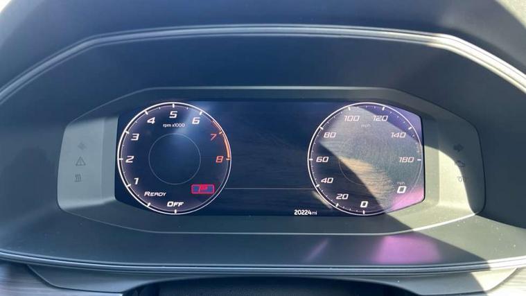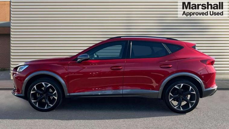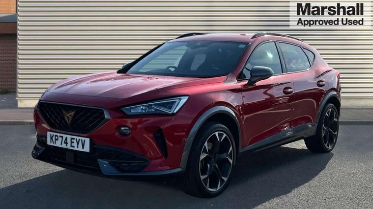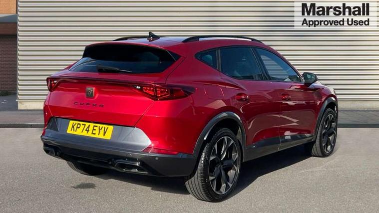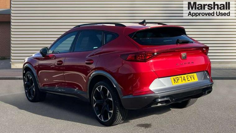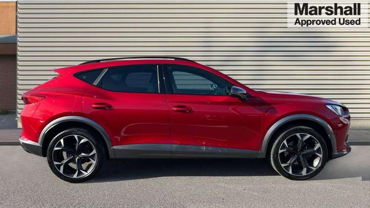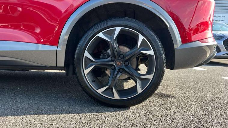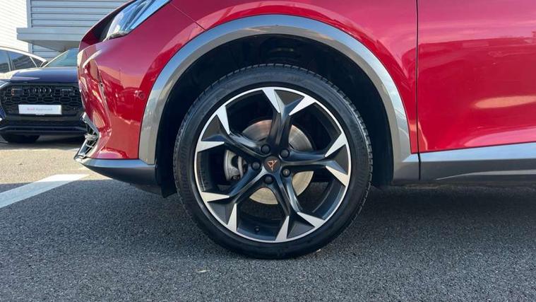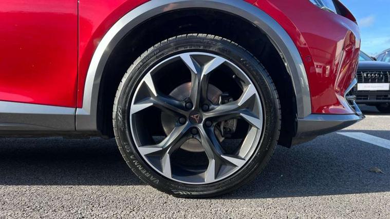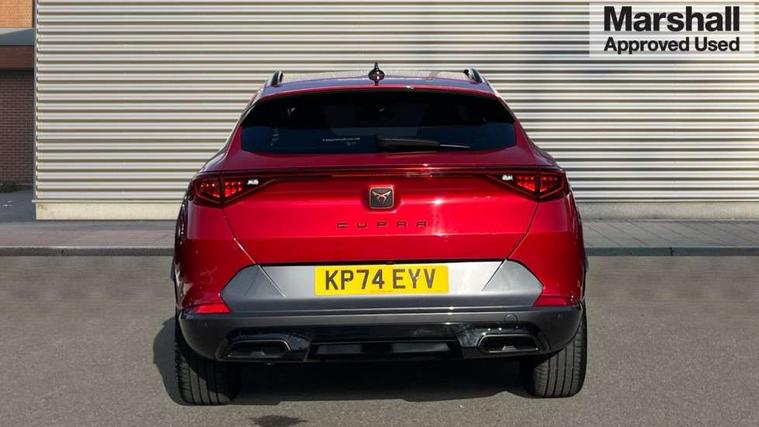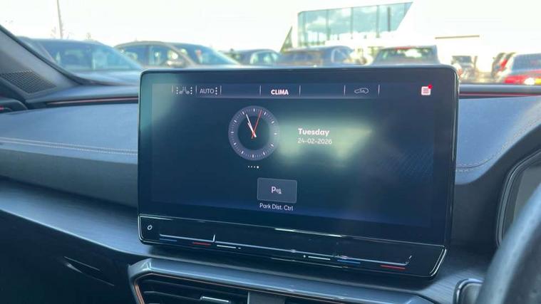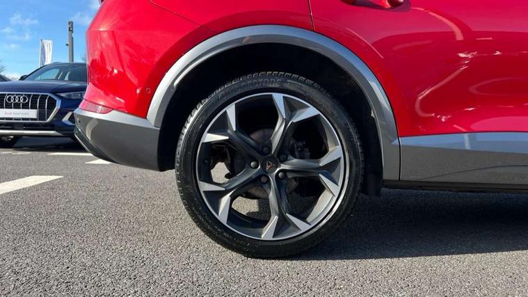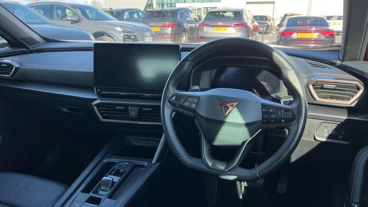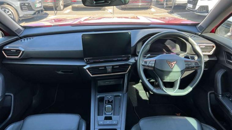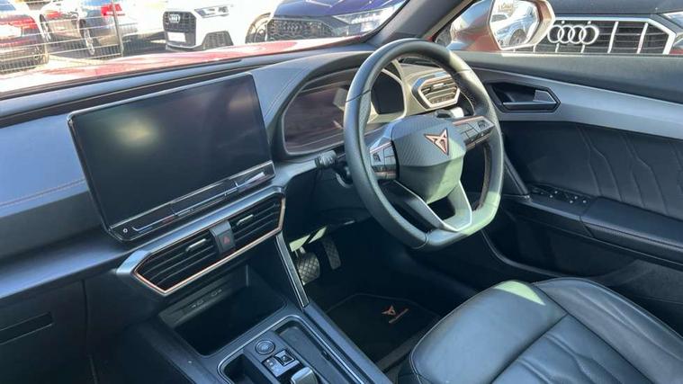 Digital cockpit and configurable dashboard, Driver alert system, Driving profile selection, Forward collision warning with automatic braking, Lane assist, Navigation system with 12'' Touchscreen Display, Park assist (inc front/rear parking sensors), PAS, Predictive adaptive cruise control with speed limiter, Rear view camera, RPM, trip computer, outside temp gauge, instrument light brightness, low fuel warning light, lights on reminder, gearshift indicator, Service interval indicator, Start/stop system with regenerative braking, Voice control system, Wired Android Auto, Wireless apple carplay, Wireless phone charger, Electronic locking differential and dynamic traction support, Standard suspension, 2 front and 2 rear USB type C sockets, Auxiliary input socket, DAB radio, Auto dimming rear view mirror, Body colour door handles, Body coloured bumpers, Dark grey wing mirror, Daytime running light with automatic headlight control and coming home feature, Dynamic headlight range control, Electric front/rear windows, Electrically adjustable heated and folding door mirrors with memory function, Front fog lamps with cornering function, Gloss black roof rails and window surrounds, LED Headlights, LED Taillights with dynamic indicator, Rain sensing wipers, Rear diffuser with black simulated exhaust pipes, Rear side wing doors, Rear wash/wipe, Third brake light, Tinted rear windows, Welcome lights, 12v power supply in centre console, 12V socket, 12v socket in loadspace, 2 front and 2 rear reading lights, 230V socket, 3 seat bench in 2nd row, 60/40 split rear bench seat with armrest and mechanical seat release, Black headlining, Dust/pollen filter, Front and rear head restraints, Front centre armrest, Height/reach adjust steering wheel, Illuminated interior front door sills, Illuminated sunvisor with mirror, Isofix, Leather multi function heated steering wheel with gear shift paddles, Luggage tie-down hooks, Single front passenger seat, Three zone climate control with control panel in rear, Variable luggage/load compartment floor, Wraparound lighting, Genuine Nappa leather Pack - Cupra, 3 point seatbelts on all rear seats, ABS, Brake control system - ESC and brake booster, Child proof door locks, Driver and front passenger airbags with front passenger airbag de-activation, Electronic parking brake, Front and rear disc brakes, Front side curtain airbags, Hill hold control, Public e-call, Seat belt reminder for front and rear seats, Tyre pressure monitoring system, Anti theft alarm system, Keyless entry and start system (KESSY), Locking wheel bolts, Copper and aluminium interior detailing, 19" 'Exclusive' machined sport matte black and silver alloy wheels,