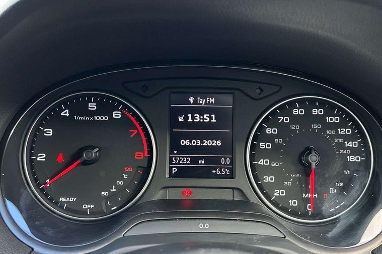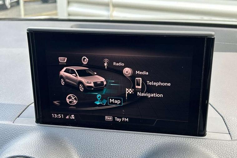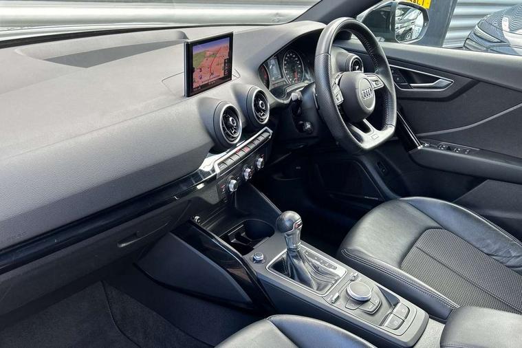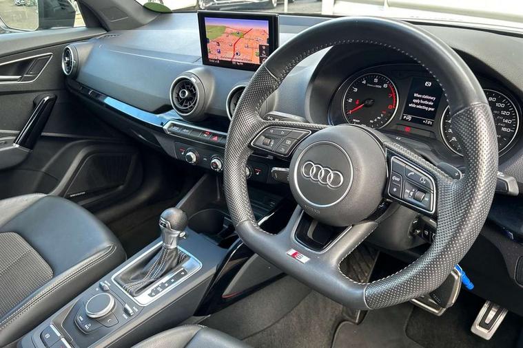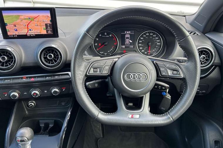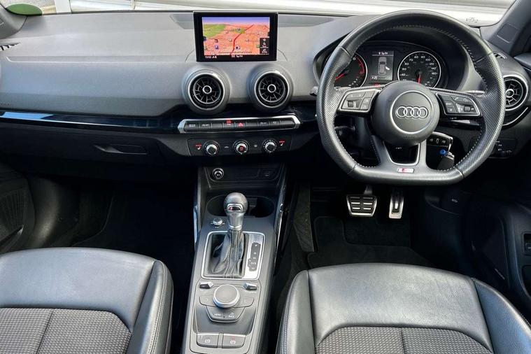Audi drive select, Audi smartphone interface, Automatic start/stop system with recuperation, Bluetooth interface includes bluetooth audio streaming, MMI - Multi Media Interface control system, MMI SD card Navigation, Power operated tailgate, Progressive steering, Service interval indicator, Voice control system, Audi music interface - apple iPod, apple iPhone, USB storage media, compatible MP3 players, 2 x USB charging points and 1 x Aux-in, CD Drive, DAB digital radio reception, MMI radio plus with 7" colour MMI screen and MMI controller, Black window trims, Chrome exhaust tailpipe, Electrically adjustable and heated door mirrors with integrated LED side indicators, Front and rear electric windows, Front underbody guard and rear diffuser trim in selenite silver, Front windscreen with grey tinted sunband, Headlight washers, Interior mirror, LED headlights with LED rear lights + dynamic rear indicators, LED indicator lights, Rain and light sensors, Rear wiper, S Line body styling - front and rear bumpers, side skirts, radiator grille, rear diffuser insert and front air intakes, 3 spoke flat bottomed high multi-function leather sport steering wheel with gearshift paddles, Black cloth headlining, Black interior styling - decorative trims in black for the centre console and front and rear door pull handles, Floor mats with contrast stitching, Front centre armrest, Front headrests, Front sports seats, Height/reach adjust steering wheel, Illuminated door sill trims with S logo, ISOFIX child seat mounting with top tether and electrically operated child lock, Manual seat adjustment including seat height adjustment for front seats, Stainless steel pedals, Storage compartments - Glovebox, cupholder compartment in centre console, storage compartment in rear centre console, front and rear door pockets, Three rear headrests, Black styling pack - Q2, Connectivity pack - Q2, LED interior lighting pack - Q2, Non smoking pack - Q2, 3x3 point rear seatbelts, 6 airbags - Front, curtain and front side airbags, Electromechanical parking brake, Electronic stabilisation control including ABS, ASR and EDL, Extended and proactive pedestrian protection, Multi collision brake assist, Pre-sense front with pedestrian recognition, Seatbelt monitoring, Tyre pressure warning light, Warning triangle and first aid kit, Anti theft alarm, Anti theft wheel bolts, Central locking system with remote control key, Aluminium interior element, Black Inlay,