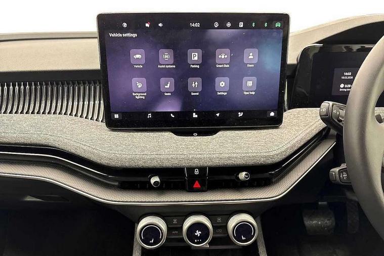 13" touchscreen display with satellite navigation, 4x USB-C ports (2x in front centre console and 2x in rear) (45W), Adaptive cruise control with speed assist, lane assist plus and traffic tram assist, Blind spot detection with door exit warning, Bluetooth system, CareConnect and Emergency Call, ChatGPT functionality, Driver fatigue sensor, Front assist with extended predictive pedestrian protection, Front cross traffic assist, PAS, Quick start all heating software functionality, Rear view camera with washer, Stop/start engine system, Traffic sign recognition, Turn assist with evasive assistance, Virtual Cockpit - 10.25" digital display, Voice control system, Wireless charging for one smartphone (15W) with cooling function, Wireless smartlink apple carplay, SmartLink+ android auto, 8 Speakers, DAB Digital radio, Display cleaner, FM radio connection, Web radio connection, Acoustic side windows and interior noise suppression, Backdrop lighting, Body colour door handles, Body coloured door mirrors, Chrome window surround, Electrically adjustable, heated, folding and driver side auto-dimming door mirrors with integrated indicators and logo projection, Frameless auto-dimming rear view mirror with USB-C, Front windscreen with heat-insulating glass, Ice scraper in fuel tank cap, LED 3rd brake light, Light assist with High beam control, Light assistant (coming/leaving home/tunnel light), Privacy glass, Rear fog light (x1), Rear side wing doors, Tow bar preparation, Unique dark chrome design logo on alloy wheels, Unique dark chrome grille surround with dark chrome rib elements, Windscreen wipers with rain sensor, 12V socket 1x centre console 1x boot, 12V socket and 2x cargo elements in boot, 2 spoke multifunction steering wheel with DSG paddles, 3 seat bench in 2nd row, 60:40 Split folding rear seats, Bottle holders in the front doors 1.5 litre bottle and rear 1.5 litre bottle, Cup holder in front with easy open mat, Front and rear footwell illumination, Front armrest with storage box, Front comfort seats, Heated front seats, Height adjustable driver and front passenger seats with 2-way electric tilt, 4-way pneumatic lumbar support, and extendable thigh support, Height adjustable front and rear head restraints, Height adjustable front passenger seat, Illuminated glovebox, Interior lights with control switches, Isofix child seat fittings in outer rear and front passenger seats, LED front and rear reading lights, Massage function for front seats, Single front passenger seat, Skoda lettering on steering wheel, Storage pockets on back of front seats, Sun visors with illuminated vanity mirrors, Ticket holder on A Pillar, Tri zone climate control, Umbrella in driver's door, 3 rear seatbelts, 8 Airbags - Front driver and passenger, front side driver and passenger, centre, curtain front and rear, drivers knee, Crew protect assist, Driver and passenger seatbelts with warning light, Electronic parking brake, ESC including ABS, EBV, MSR, ASR, EDS, HBA, DSR, RBS, CBC, multi-collision brake (MKB) and Auto hold, Hill hold assist, Power operated child lock in rear doors, Alarm with interior monitoring tilt sensor and back up horn, Backrest remote release from trunk, Electronic engine immobiliser, Keyless start/stop, Remote central locking with SAFE system, Third key, Decorative front door sills,