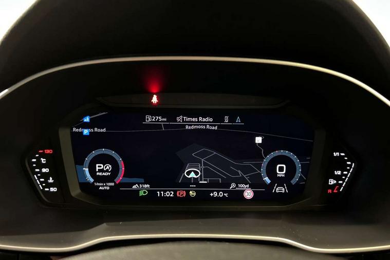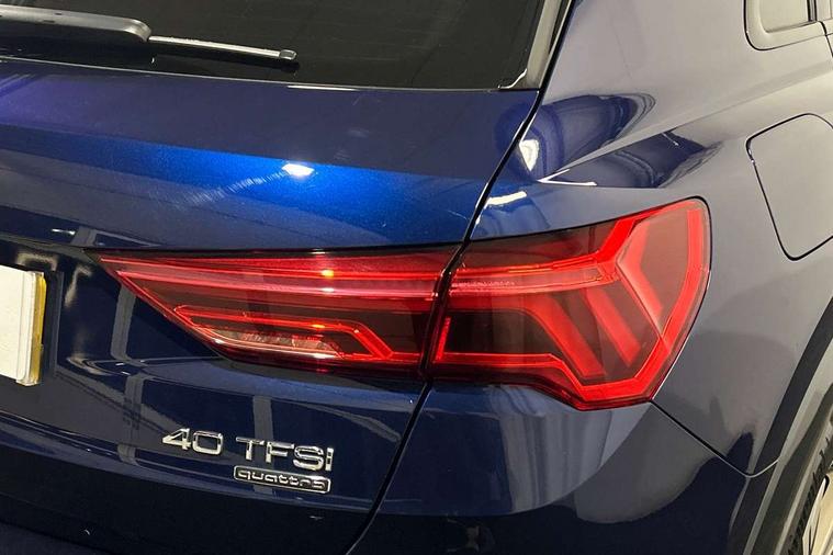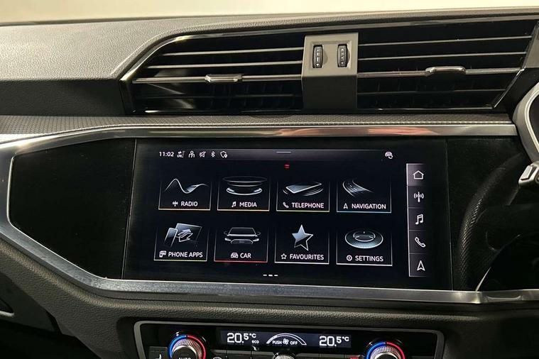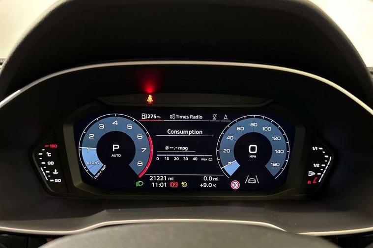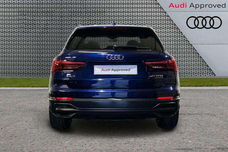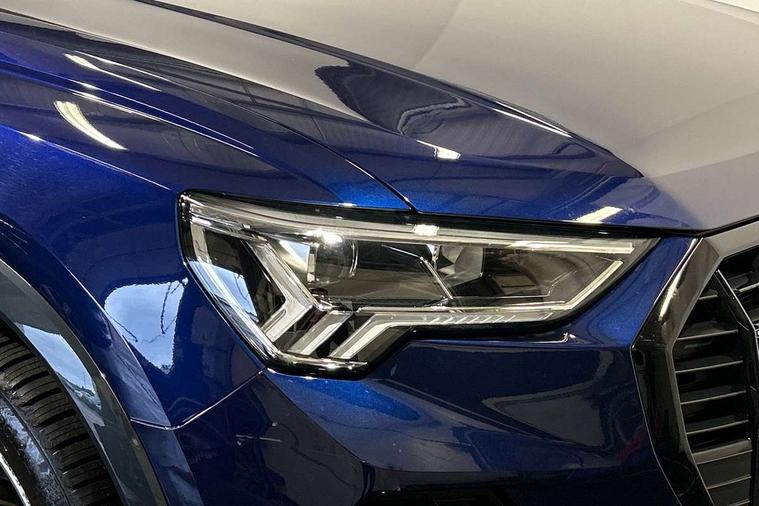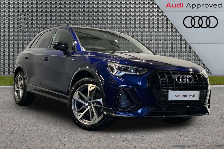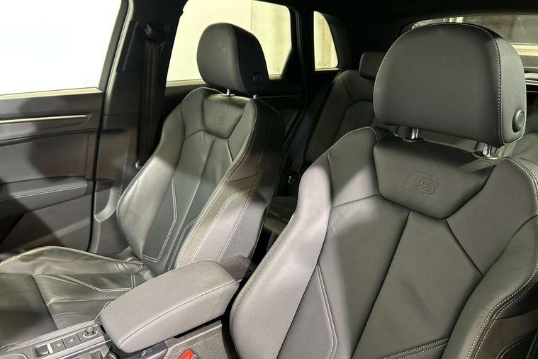 Amazon alexa Integration, Audi connect safety and service (e-call), Audi drive select, Audi lane departure warning, Audi Virtual Cockpit - 10.25" display, Bluetooth interface, Camera based traffic sign recognition, MMI Navigation Plus with high resolution 10.1 inch touchscreen colour display, Power operated tailgate, Progressive steering, Service interval indicator, Smartphone interface includes wireless Apple carplay/Android Auto, Start stop system with recuperation, Voice control system with natural language interaction, Sports suspension, 2 USB-C ports with charge and data functions, 6 passive loudspeakers, DAB digital radio module, Acoustic windscreen, Auto dimming frameless rear view mirror, Black roof rails, Electrically folding, adjustable and heated door mirrors with integrated LED side indicators and kerb view function for passenger side, Front and rear electric windows, Front fog lights, Grille vertical bars in aluminium silver/Matt, High gloss black finish B and C pillars, LED headlights with LED daytime running lights, LED rear lights, LED third brake light, Privacy glass dark tinted rear and rear-side windows (from B-pillar backwards), Rain and light sensors, Rear diffuser strip in matt titanium black, Rear side wing doors, Rear wiper, S line bumpers in contrasting Manhattan grey, Tinted rear windows, Variable front intermittent wipers, 12V socket in rear centre console, 3 seat bench in 2nd row, 40:20:40 folding with manual adjustment for 60:40 forwards/backwards position and backrest angle, Adjustable rear seat bench/backrest with centre armrest and cupholder, Black cloth headlining, Dual zone electronic climate control, Front and rear black floor mats with contrast stitching in rock grey, Front and rear headrests, Front and rear roof module including reading lights, Front centre armrest, Glove compartment lighting, Height and reach adjustable steering wheel, Illuminated door sill trims with S logo, ISOFIX child seat mounting for front passenger with airbag deactivation and outer rear seat including top tether attachment point for outer rear seats, Luggage compartment light, Manual front seats with height adjustment, Perforated leather gearknob, Single front passenger seat, Stainless steel luggage compartment sill finisher, Stainless steel pedals, Black styling pack - Q3, Non smoking pack - Q3, 3x3 point rear seatbelts, 6 airbags - Driver, front passenger, curtain and side windows, Audi pre-sense front with pedestrain and cyclist recognition, Electrically operated child locks on rear doors, Electromechanical parking brake, Electronic stabilisation control including ABS, ASR and EDL, Front seatbelt reminder, Hill descent control, Hill hold assist, Pre sense basic, Seatbelt monitoring, Tyre pressure warning, Warning triangle and first aid kit, Anti theft alarm, Anti theft wheel bolts, Immobiliser, Remote central locking, Detail dashboard around MMI touch colour display in glass look, black with surround in aluminium look, Leatherette door armrest, Piano black inlay,