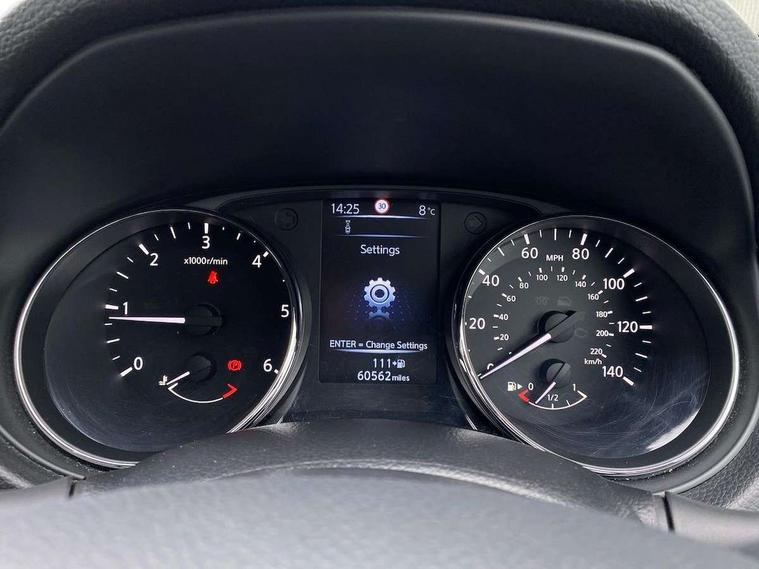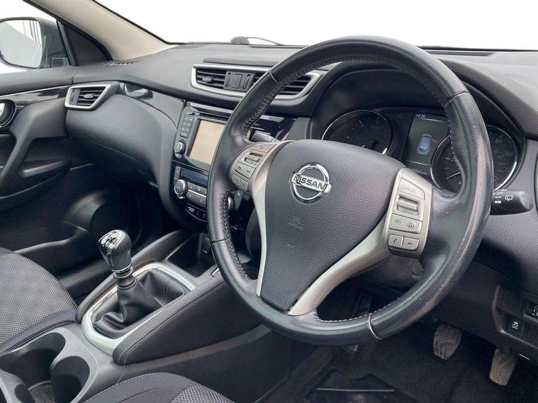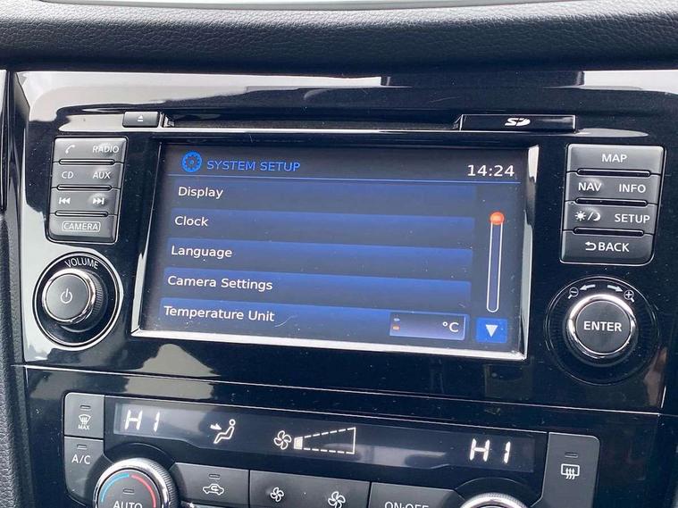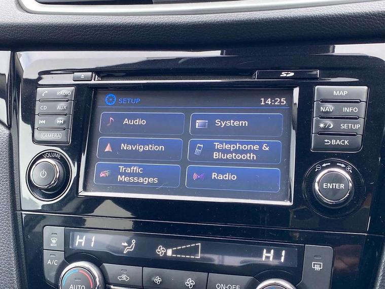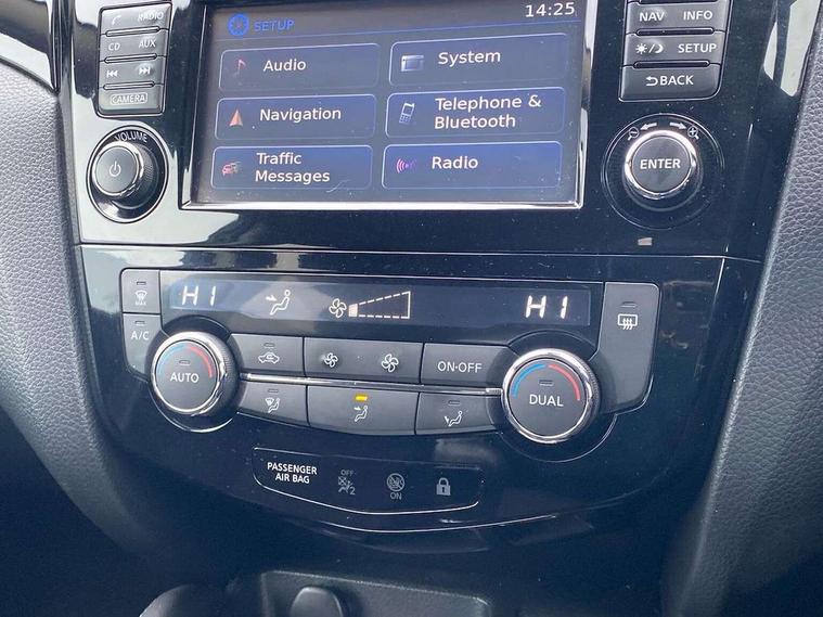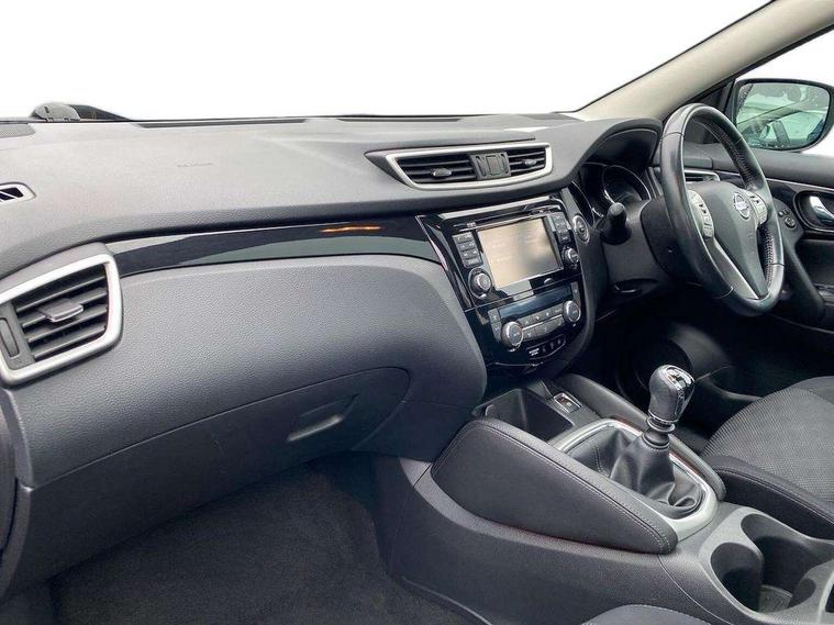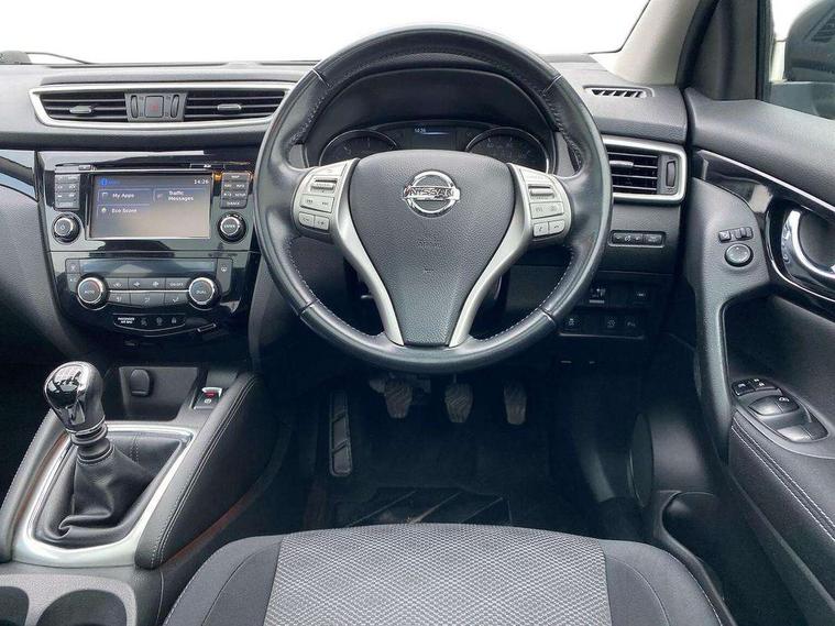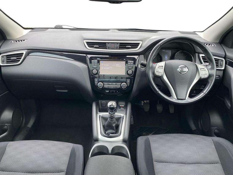 5" TFT driver information centre, 7" touch screen, Around View Monitor, Bluetooth phone integration system, Cruise control, Front and rear parking sensors, Lane departure warning system, Nissan connect sat nav system, Push button starter, Service interval indicator, Speed limiter, Speed sensitive power steering, Traffic sign recognition, Trip computer, Diesel particulate filter, 6 speakers, DAB radio/CD player, Steering wheel mounted audio controls, USB/aux input socket, 2 speed wipers+variable intermittent wipe, Automatic headlamp activation, Black honeycomb front grille, Body colour bumpers, Body colour door mirrors and handles, Chrome window surround, Electric folding and heated door mirrors, Electric front/rear windows, Front fog lights with chrome surrounds, High beam assist, Interior mirror with auto anti dazzle, LED daytime running lights, Rain sensor windscreen wipers, Rear privacy glass, Rear wiper, 12V socket, 60/40 split folding rear seat, Ambient interior lighting, Cloth upholstery, Driver's lumbar support, Driver/passenger front seatback pockets, Dual zone climate control, Footwell ambient lighting, Front armrest, Front cupholders x 2, Front headrests, Front seat belt pre-tensioners with load limiters, Height adjustable driver's seat, Height adjustable passenger seat with lumbar support, Illuminated glovebox, Isofix child seat preparation, Leather gearknob, Leather steering wheel, Luggage area divider, Map reading lamp, Pollen filter, Rake/reach adjustable steering wheel, Rear armrest with 2 cupholders, Rear headrests, ABS, brake assist and EBD, Active Trace Control, Child locks on rear doors, Curtain airbags, Driver/front passenger airbag, Electronic parking brake, ESP + traction control, Forward emergency braking, Height adjustable front seatbelts, Hill start assist, Side airbags, Three 3 point rear seatbelts, Tyre pressure monitoring system, Warning triangle and first aid kit, Alarm, Immobiliser, Intelligent Key, Remote central locking, Tyre puncture repair kit,