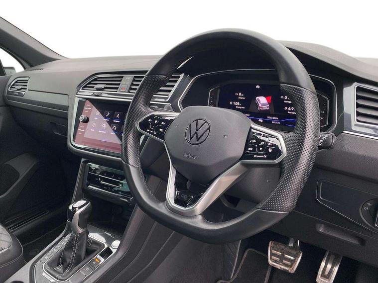 Adaptive cruise control ACC stop and go including speed limiter, App-Connect incl. App-Connect Wireless for Apple CarPlay and Android Auto, Bluetooth phone integration system, Distance control assist, Driver alert system, Driver profile selection, Dynamic road sign display, eCall emergency call system, Electromechanical speed sensitive power steering, Engine start/stop button, Lane keeping system Lane Assist, Lights on warning, Multifunction front facing camera, Outside temperature display, Premium multifunction display with multi colour display, Remote control boot opening, Rev counter, Revision / skills operating concept travel assistant, Service interval indicator, Speed limit display, Start/stop system with regenerative braking, Trip computer, Warning sound and light for doors and tailgate open, All wheel drive - 4Motion, Battery regeneration during braking, XDS electronic differential lock for improved traction and handling, 4 X 20 watt output, 8 Speakers, Diversity antenna for FM reception, Radio, SD card slot, Simultaneous pairing of 2 compatible mobile devices, SMS functionality - read, compose and send SMS messages using touch-screen display, Title and cover art display, USB C ports, Auto dimming interior rear view mirror, Automatic headlight control system, Body colour door handles, Chrome moldings on the side windows, Coming/leaving home lighting function, Dynamic headlight range control, Front and rear electric windows, Heated rear window, High level 3rd brake light, Laminated safety glass windshield, heat and sound insulating, LED headlamps with LED separate daytime running light and dynamic cornering light, LED rear combination lamps, LED rear number plate lights, License plate carrier in front and rear, Poor weather light and cornering light, R Line body kit, R Line side sills, Rain sensor windscreen wipers, Rear exhaust tailpipe, Rear fog lamp, Rear side wing doors, Rear spoiler in R style, Rear windscreen washer and wiper with interval delay, Side and rear windows in heat insulating glass, Trailer Stability Programme, Unique R Line badging, Windscreen wipers/ intermittent wipe + 4 position delay, 12V outlet in center console rear and in luggage compartment, 12V outlet in front and tray, 2 cup holders in front, 2 LED front reading lights, 2 LED rear reading lights, 3 bench rear seats in 2nd row, 3 rear headrests, 4 load lashing points, 40:20:40 split folding rear seats, Air Care Climatronic 3 zone automatic climate control with enhanced air filter and controls in the rear, Backrest release for left front seat, Black headlining, Brushed stainless steel pedals and footrest, Carpet mats in front and rear with decorative stitching in Gray, Climate control unit rear with touch function, Door and side trim panel in foam film, insert in leatherette, Front centre armrest, Front footwell illumination, Front seats head restraints (x-adjustment), Height adjustable front seats, Height/reach adjust steering wheel, Instrument lighting white adjustable panel illumination, Interior light with delay, Isofix Preparation 2 Rear child seats, Leather gear knob, Lockable cooled glovebox, Luggage compartment lighting, Luggage net, Rear bench seat asymetrically split folding, longitudinally movable and folding with load-through hatch and center armrest, Remote unlocking for rear seat backrest, Removable luggage cover, Removable rear headrests, Safety optimised front head restraints, Single front passenger seat, Sliding/reclining rear seats, Standard rear seat release, Storage compartment in driver's door, Storage compartment in passenger's door, Storage compartment in rear doors, Storage compartments in luggage area left and right, Storage tray on dashboard, Sun visors with illuminated vanity mirrors, Top front comfort seats, Variable boot floor, height adjustable and removable, Driver assistance pack plus - Tiguan DSG, 3 point seat belt for centre rear seats, 3 point seat belts with seat belt pretensioners for the outer rear seats, Active bonnet, Curtain airbags for front and rear passengers, Driver/Front Passenger airbags, Drivers knee airbag, Electronic parking brake with auto hold, Electronic Stability Control with driver steering recommendation, ABS, ASR, EDL, EDTC and trailer stabilization, Front assist with autonomous emergency braking (for Adaptive Cruise Control ACC up to 130 mph), Front disc brakes, Front passenger airbag deactivation, Front side airbags, Height adjustable front 3 point seatbelts + pretensioners, Hill hold control, Manual child proof rear door locks, Pedestrian monitoring system, Power assisted brakes, Proactive passenger protection system in combination with front assist, Rear disc brakes, Rigid safety cell with front and rear crumple zones, Two tone horn, Warning sound and light for front seat belts if unfastened, Anti theft alarm system with interior monitoring, backup horn and towing protection, Anti theft wheel bolts, Electronic engine immobiliser, Tool kit,