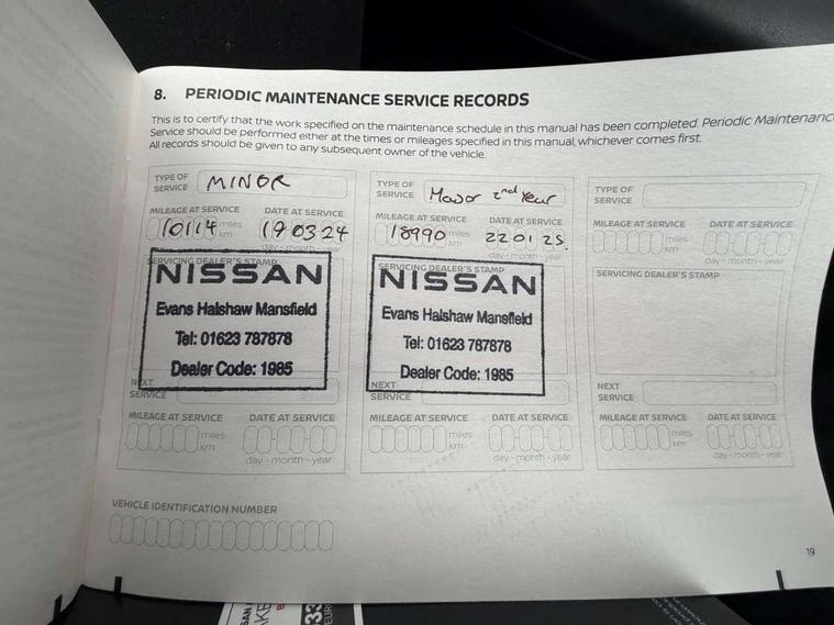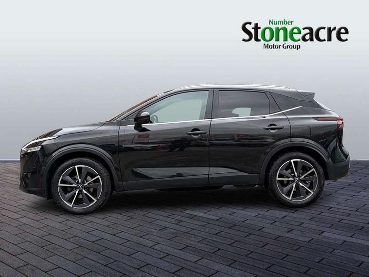 Advanced windscreen head up display, Android auto/Apple CarPlay (Wired), Blind spot warning, Drive modes (sport, normal, eco), Electric speed sensitive power steering, Emergency and breakdown call, Front and rear parking sensors, Full Digital 12.3" TFT Digital Combimeter, Google maps services - search, weather, 3D maps and Google street view, Hands free power tailgate, Idle stop/start system, Intelligent around view monitor, Intelligent Cruise control (ICC), Intelligent driver alert system, Intelligent forward collision warning, Intelligent lane intervention, Lane departure prevention, Lane departure warning system, Lane keep assist, Moving object detection, Nissan connect 12.3 inch touchscreen infotainment system, Nissan connect navigation, ProPilot, Push button starter, Rear cross traffic alert, Rear view camera, Remote control services - door locks, lights, horn and car locator, Telematics - notifications and connectivity services, TomTom live traffic services, Traffic jam pilot, Traffic sign recognition with legal speed adjustment, Trip computer, Virtual personal assistant and firmware over the air capability, Wireless apple carplay, Wireless charging pad, 6 speakers, AM/FM audio system with DAB, Bluetooth audio streaming, Front USB connections (Type-A and Type-C), Rear USB charging only ports (Type-A and Type-C), Auto dimming rear view mirror, Auto rear wiper when reversing, Automatic hazard signal with emergency stop signal, Body colour mirror caps, Body coloured door handles, Bodyside mouldings, Chrome side window finisher, Door handle with button, Electric auto folding door mirrors, Electrically adjustable and heated door mirrors with LED turn indicator, Follow me home headlights, Front and rear LED turning signals, Headlights auto levelling system, Intelligent auto headlights, LED daytime running lights, LED headlights with adaptive driving beam, LED rear lights, One touch front and rear electric windows with remote opening and closing, Partially body coloured bumpers, Privacy glass, Rear bumper with graphite insert, Rear reversing light (bulb lighting), Rear roof spoiler, Rear side wing doors, Rear styling plate, Shark fin antenna, Splash free rain sensing wipers, Super UV and infrared cut glass, Thermaclear heated windscreen, Three blink turn signal, 12v power socket in dashboard and luggage, 2x Rear coat hooks, 3 bench rear seats in 2nd row, 3 rear headrests, 4 folding assist grip, 6 Luggage hooks - 4 on floor, 2 on side, 60/40 split folding rear seat bench, Ambient lighting around centre console, Ambient lighting in front doors, Centre console storage tray, Chrome interior door handles, Cloth/syntech leather monoform upholstery, Dark black/blueish PVC wrapping, Dark headlining, Driver and front passenger sunvisors with illuminated vanity mirrors, Driver seat back pocket, Dual zone automatic climate control with pollen filter, Electrically adjustable driver seat, Electrically adjustable lumbar support for driver, Front and rear door storage, Front centre console and armrest, Front cupholders x 2, Front door with bottle holders, Glovebox with light, Hard trunk cover, Heated front seats, Heated steering wheel, Height adjustable driver's seat, Height adjustable front headrests, Height adjustable passenger seat, Leather steering wheel, Luggage board system, Luggage space lighting, Manual lumbar support on passenger seat, Manually adjustable passenger (slide recline + lifter), Multifunction steering wheel, Passenger seat back pocket, Rear armrest with 2 cupholders, Rear door bottle holders, Single front passenger seat, Soft PVC kneepad, Steering wheel gearshift paddles, Steering wheel switches, Tilt/telescopic adjustable steering wheel, Two rear isofix child seat anchorage points with top tether, Welcome light and doors with console tray ambient lighting, Glass roof pack with roof rails - Qashqai, 3x3 point rear seatbelt pretensioners + load limiters, ABS with EBD and brake assist, Active brake limited slip, Auto hold function, Child locks on rear doors, Curtain and front side, far side airbags, Driver and passenger airbags, Driver, passenger and 2nd row rear seat belt reminder, Electronic parking brake, Front seatbelt pretensioners + load limiters, Height adjustable front seatbelts, Hill start assist, Intelligent blind spot intervention, Intelligent front emergency braking with pedestrian, cyclist recognition and junction assist, Intelligent rear automatic braking, Tyre pressure monitoring system, Vehicle dynamic control, Capless fuel filler, Engine immobiliser, Intelligent Key, Remote central door locking with deadlocking, Thatcham Cat.1 alarm, Interior instrumental panel C finisher, 19" Alloy wheels, Tyre puncture repair kit,