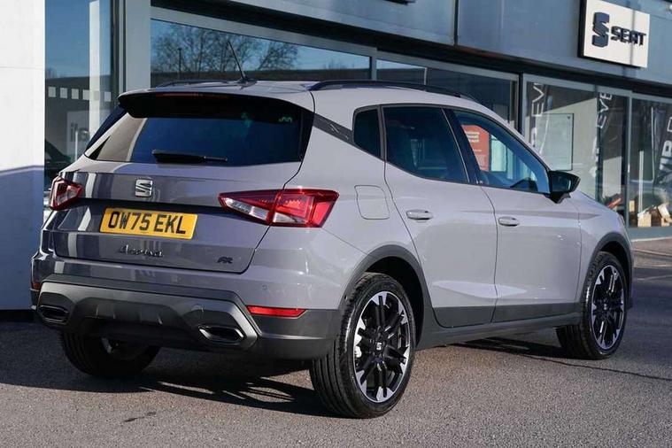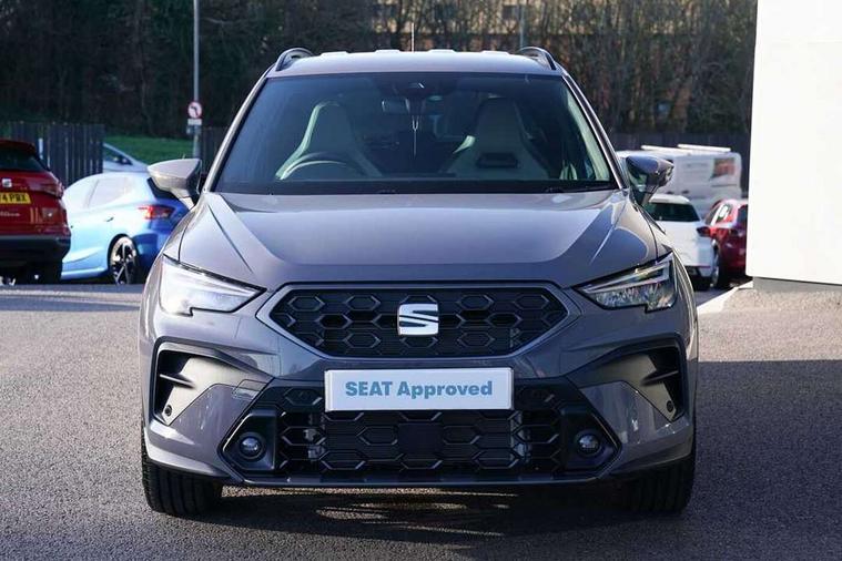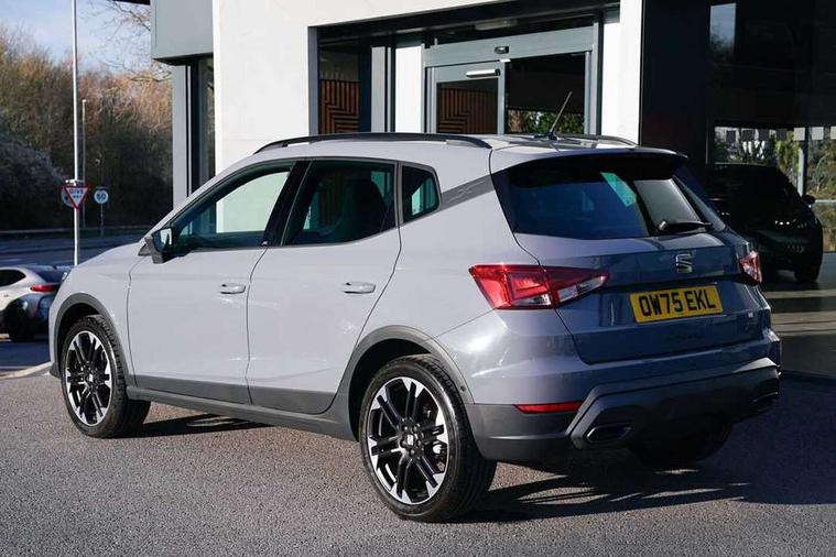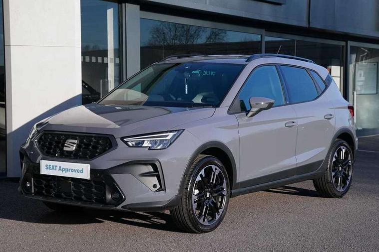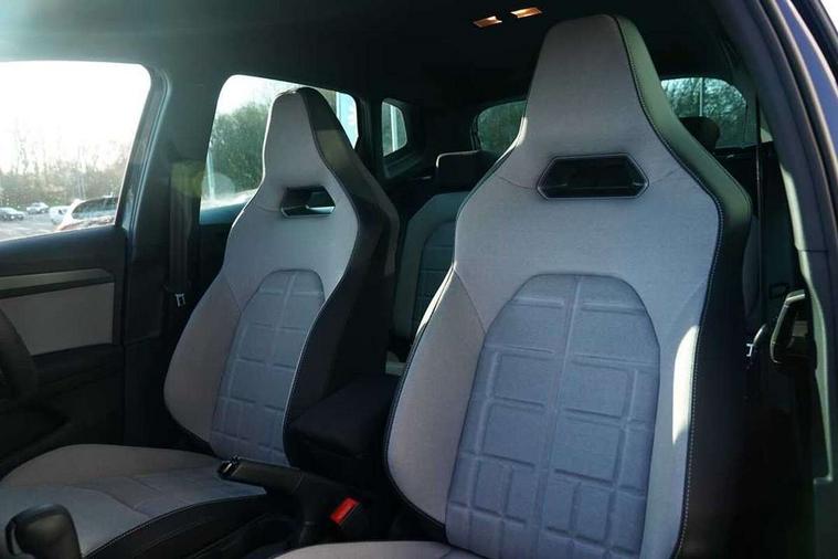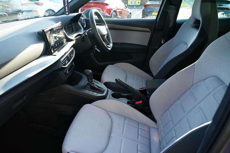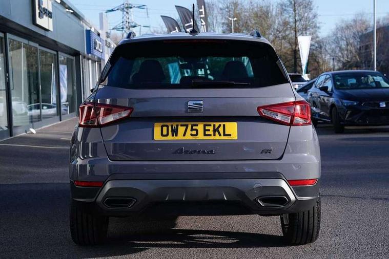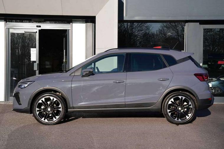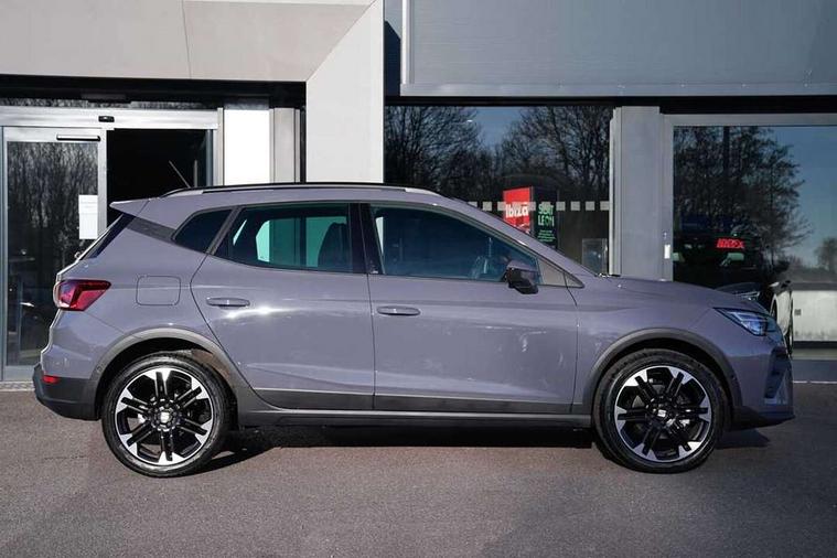 'Lights On' Reminder warning buzzer, 10" Digital cockpit, Digital clock, E-call, Electric speed sensitive power steering, Front parking sensors, Full link smartphone integration with mirror link, wireless apple carplay, Google android auto + USB Type C cable for apple and android devices, Low fuel warning light, Outside temperature display, Rear view camera, RPM counter, SEAT Drive profile - Four different models normal-sport-eco-individual, steering response, throttle response and gear shifts mode, Trip computer, Wireless phone charger, 9.2" colour touchscreen with navigation system, voice control and USB port (type c), Bluetooth interface for hands free and audio streaming, DAB digital radio and AM/FM radio, Steering wheel mounted audio controls, Anti theft roof antenna, Auto dimming interior rear view mirror, Automatic activation of hazard warning lights, Black roof rails and window surrounds, Body coloured bumpers, Body coloured door handle inserts, Dark tinted rear windows, Electric front/rear windows, Electrically adjustable, heated and folding door mirrors, Front fog lights with cornering function and rear fog light, LED 3rd brake light, LED daytime running lights, LED rear tail lights and licence plate lights, Protective side mouldings, Rain sensing wipers, Rear side wing doors, Rear spoiler, Rear window wash/wipe, Roof colour door mirrors, SEAT design Full LED automatic headlamps with dynamic headlight range control, coming and leaving home feature, Twin exhaust pipe styling with double flow exhaust pipe, Visible VIN plate, 2 cupholders, 3 seat bench in 2nd row, 60/40 split folding rear seat, Aircare filter, Black headliner, Cloth upholstery with embossed textile/Sport bucket seats, Double boot floor, Driver sunvisor with covered mirror + card holder, Dual zone climate control, Front courtesy light with front reading lights, Front seat back storage pockets, Heated front seats, Height adjustable front seats, Height/reach adjustable steering column, Illuminated air vent surrounds, Interior ambient lighting, Interior light in footwell, central console and door panel, ISOFIX points in outer rear seats with top tether anchorage points, Passenger sunvisor with vanity mirror, Perforated flat bottomed leather steering wheel/gear knob/handbrake with red stitching and FR logo, Red coloured interior air vents, Single front passenger seat, Steering wheel mounted gearshift paddles, Two front and three rear height adjustable headrests, Interior chrome pack - Arona, Safe and driving pack (S) - Arona, Storage pack - Arona, 3 point seatbelts on all rear seats, ABS, Active front headrests, Child locks on rear doors, Driver and front passenger airbags with front passenger airbag de activation, front side and curtain airbags, Emergency Brake Assist (EBA) and front assist, Front and rear seatbelt reminder, Hill hold control, Multi-Collision braking, Tiredness recognition system, Traction control, Tyre pressure monitoring system, Anti-theft alarm (perimeter and interior monitoring) with backup horn and towing protection, Central locking with radio remote control, interior controls and SAFELOCK, Deadlock, Electronic engine immobiliser, KESSY Keyless entry and go, Locking wheel bolts, 18" Performance machined alloy wheels in black,
