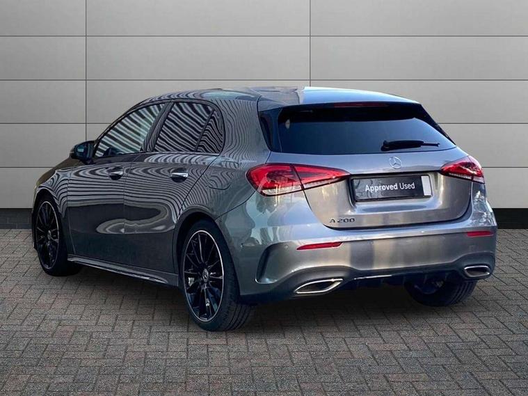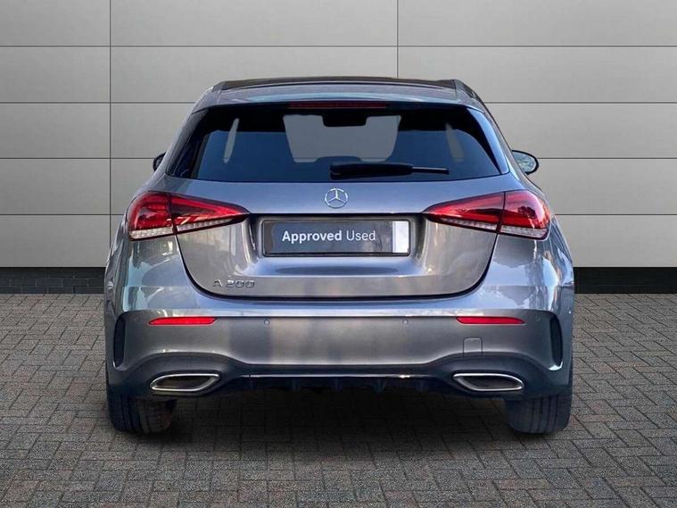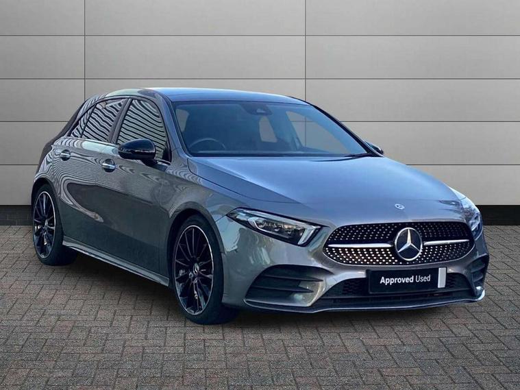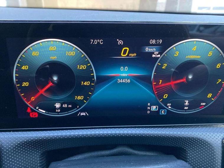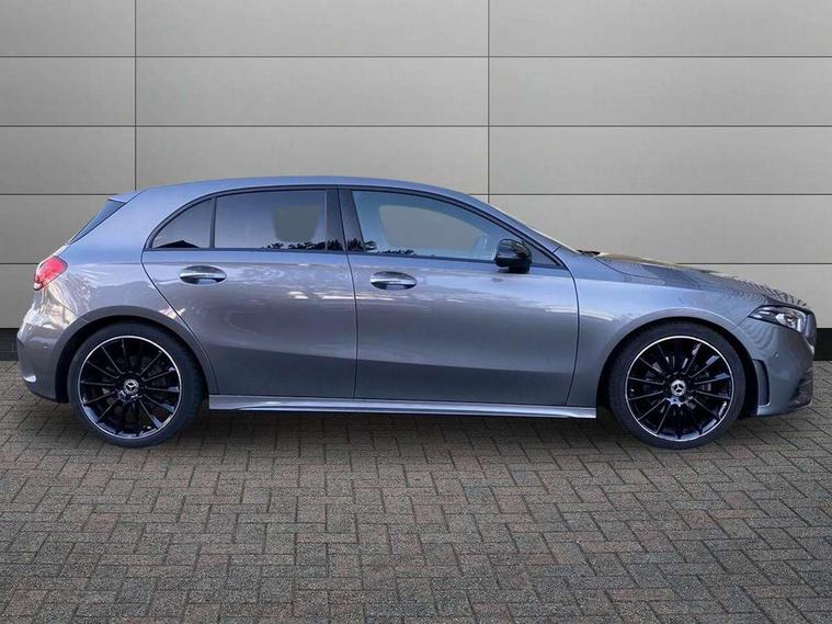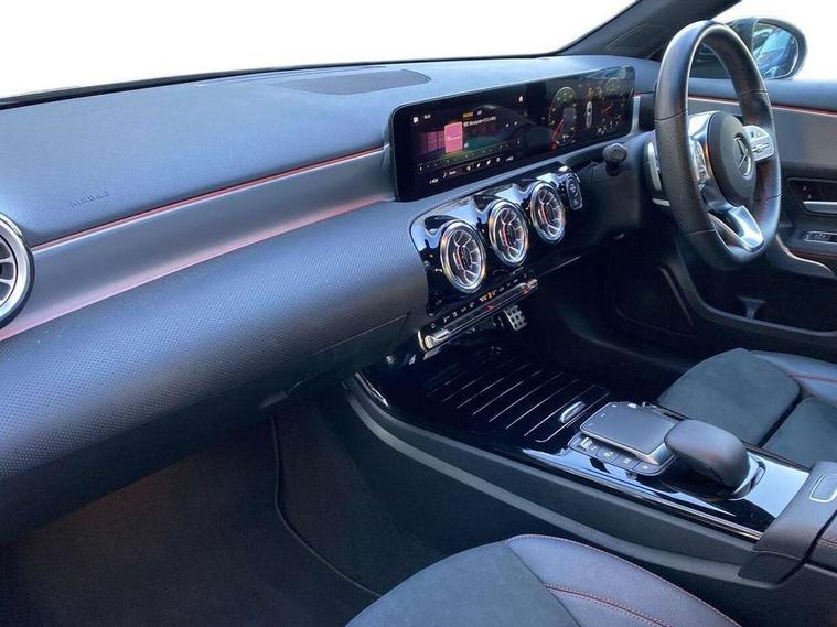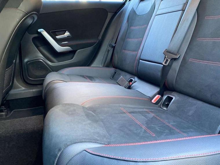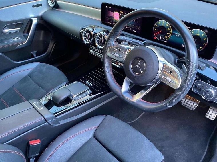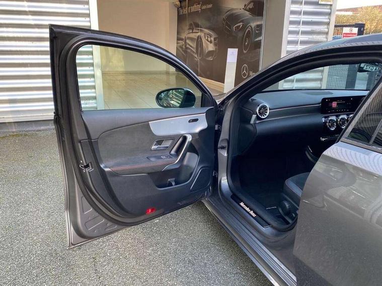 10.25" Digital instrument cluster display screen, 10.25" media display, 180 degree rear view camera with parking guidelines, Active parking assist with visual and audible warning of detected obstacles, Attention assist, Brake pad wear indicator warning light, Car wash mode, Cruise control + speed limiter, Direct steering, Dual bluetooth interfaces, DYNAMIC SELECT with a choice of driving modes (ECO, Comfort, Sport and Individual), ECO start/stop function, Fluid level warning indicator for fuel, oil, coolant and washer fluid, Hard-disk navigation, Hey Mercedes Voice activation, Lamp failure indicator, Lane keeping system, Mercedes me connect including emergency call system, accident recovery, breakdown and maintenance management, Mercedes me remote services, Outside temperature gauge, Owners manual in English, Pre-installation for private car sharing, Preinstallation for Mercedes Benz link, Service indicator (ASSYST), Smartphone integration with Apple CarPlay and Android auto, Speed limit assist, Speed sensitive power steering, Traffic sign assist, Trip computer, Ultrasonic sensors positioned in the front and rear bumpers, Lowered comfort suspension, Rear axle torsion beam, 2 USB ports (type C) in rear stowage compartment and one in front of center console, 6 speakers, DAB Digital radio, MBUX multimedia system with DAB digital radio and touchpad including satellite navigation, Mercedes-Benz sound system - 100W, 4 Electric Front and Rear windows, Adaptive brake lights, AMG bodystyling - Front apron with splitter in chrome, rear apron with chrome trim and chrome visible trim elements in tailpipe, Automatic headlights, Black weather strip, Body colour bumpers, Body colour door handles with chrome inserts, Body colour side skirt, Electric adjustable and heated door mirrors with integrated LED side indicators, Exclusive diamond radiator grille, Exhaust system - Twin visible tailpipes in polished stainless steel, Headlamp assist automatic headlamp activation, Heated glass rear windscreen + timer control, LED daytime running lights, LED High level third brake light, LED tail lamp, Multibeam LED headlights with adaptive highbeam assist plus, Panoramic sliding sunroof, Privacy glass, Radio aerial, Rain sensing windscreen wipers with two sensitivity settings, Rear fog lights, Rear side wing doors, Rear wiper, 3 seat bench in 2nd row, 3 Spoke flat bottom leather multi function steering wheel with perforated leather in grip area, 40:20:40 split folding rear seats, Artico man-made leather/Microfibre Dinamica upholstery with red contrast stitching, Auto Mercedes-Benz child seat recognition sensor, Black air vents with surround in silver chrome, Black roof lining, Brushed stainless steel sports pedals with rubber studs, Controller on centre console with chrome surround, Floor mats with AMG lettering, Front centre armrest with storage compartment, Front seat backs luggage nets, Galvanished gear shift paddles on steering wheel, Heated front seats, Height/reach adjustable steering column, Illuminated Mercedes Benz lettering front door sills with changeable cover, Interior lighting - 64 colour Ambient lighting, Interior mirror with reading lamps in black and frameless, Rear armrest with 2 cupholders, Rear head restraints, Seat occupancy sensor for front passenger seat, Single front passenger seat, Sports seats with integrated headrests, Stowage compartment in centre console with retractable cover, Sunvisors with illuminated vanity mirrors, Touchpad on center console, Twin front cupholders, Two zone thermotronic luxury automatic climate control, Light and sight pack - A Class, Mirror package - A Class, Night pack - A Class Saloon/Hatchback, Seat comfort pack - A Class, 3 rear 3 point seatbelts, ABS with Brake Assist, Active bonnet, Active brake assist includes forward collision warning system with autonomous braking, Adaptive brake assist with hold function and hill start assist, Black seatbelts, Childproof locks manually operated for rear doors and electrically operated for rear power windows, Crash responsive emergency lighting, Driver and passenger head and side airbags, Drivers knee airbag, Dual stage driver/passenger airbags, Electronic parking brake, ESP curve dynamic assist, ESP with ASR, Front and rear seatbelt reminder, Front brake callipers with Mercedes Benz lettering, ISOFIX and top tether child seat fixing points in two outer rear seats, Tyre pressure monitoring system, Warning triangle and first aid kit, Window airbags, Alarm system/interior protection/immobiliser, Keyless entry lock/unlock, Keyless Go, Remote central locking and crash sensor with emergency opening function, Urban guard vehicle protection system with immobiliser and interior protection, Matrix look light longitudinal grain aluminium trim element, 19" multi spoke light alloy wheels painted in black with a high sheen rim flange, Summer tyres, Tirefit sealant kit,
